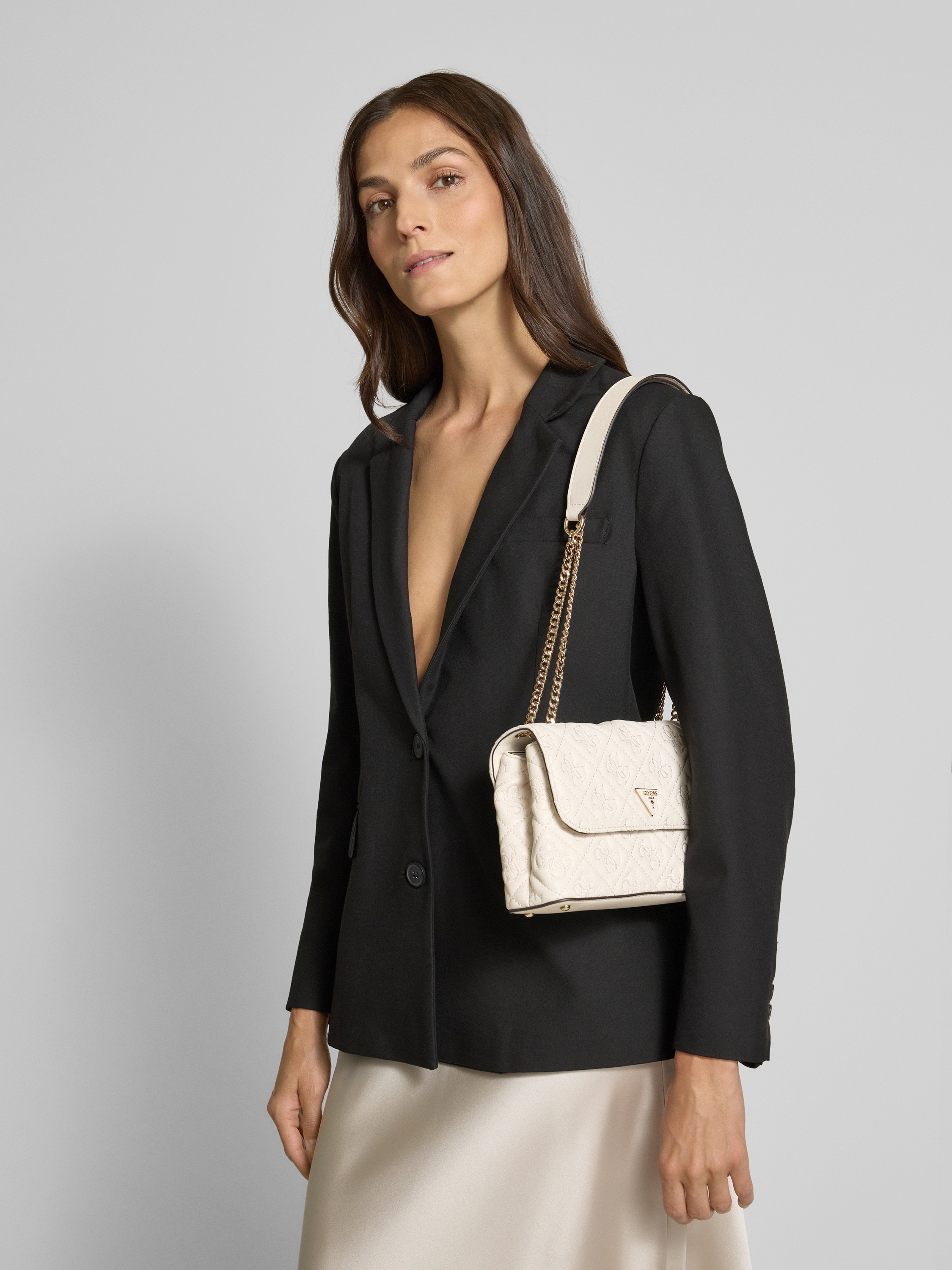 GuessHandtas met labelapplicatie, model 'ADELASIA' in ecru
