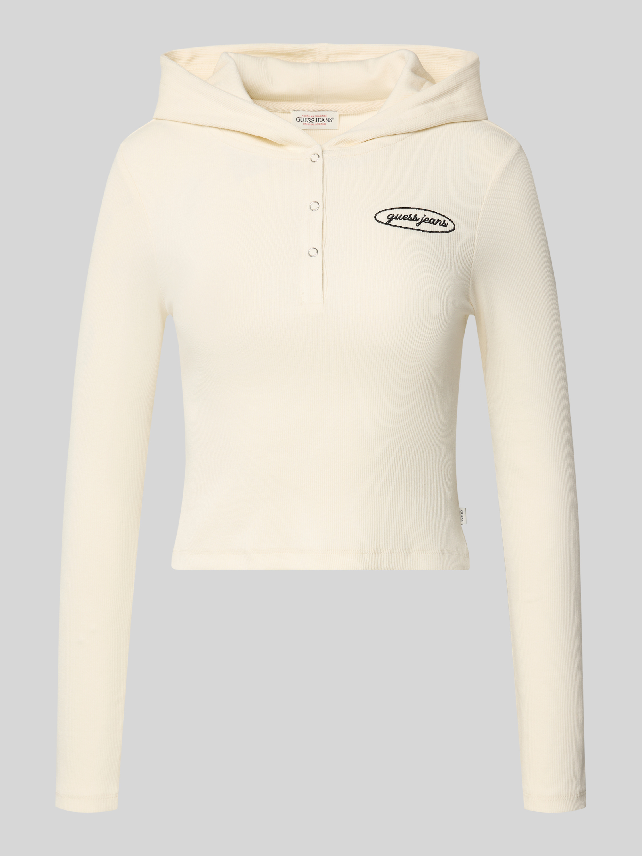 Slim fit shirt met lange mouwen, capuchon en labelstitching in beige