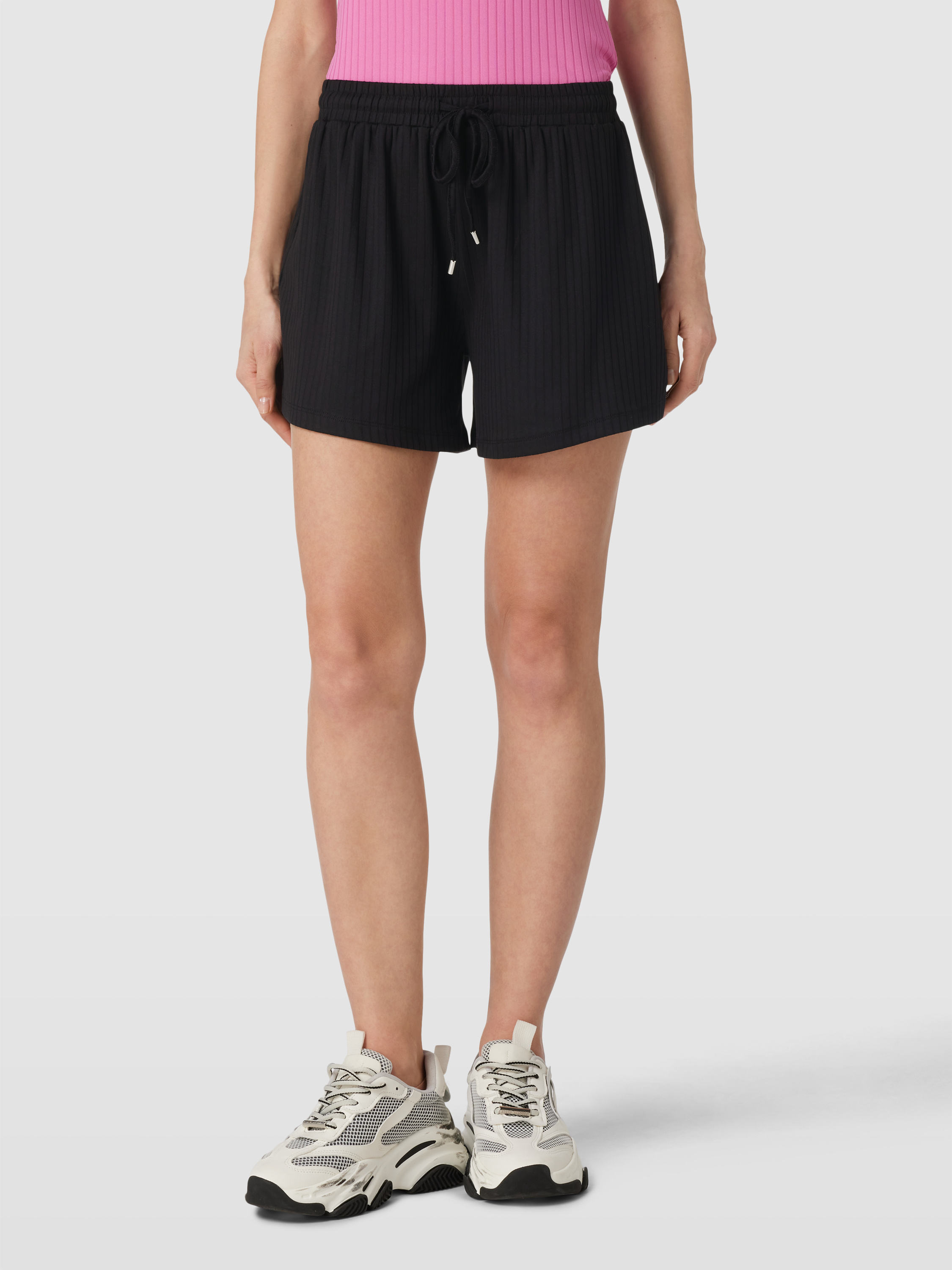 Korte broek met ribstructuur, model 'SAMANTHA' in zwart