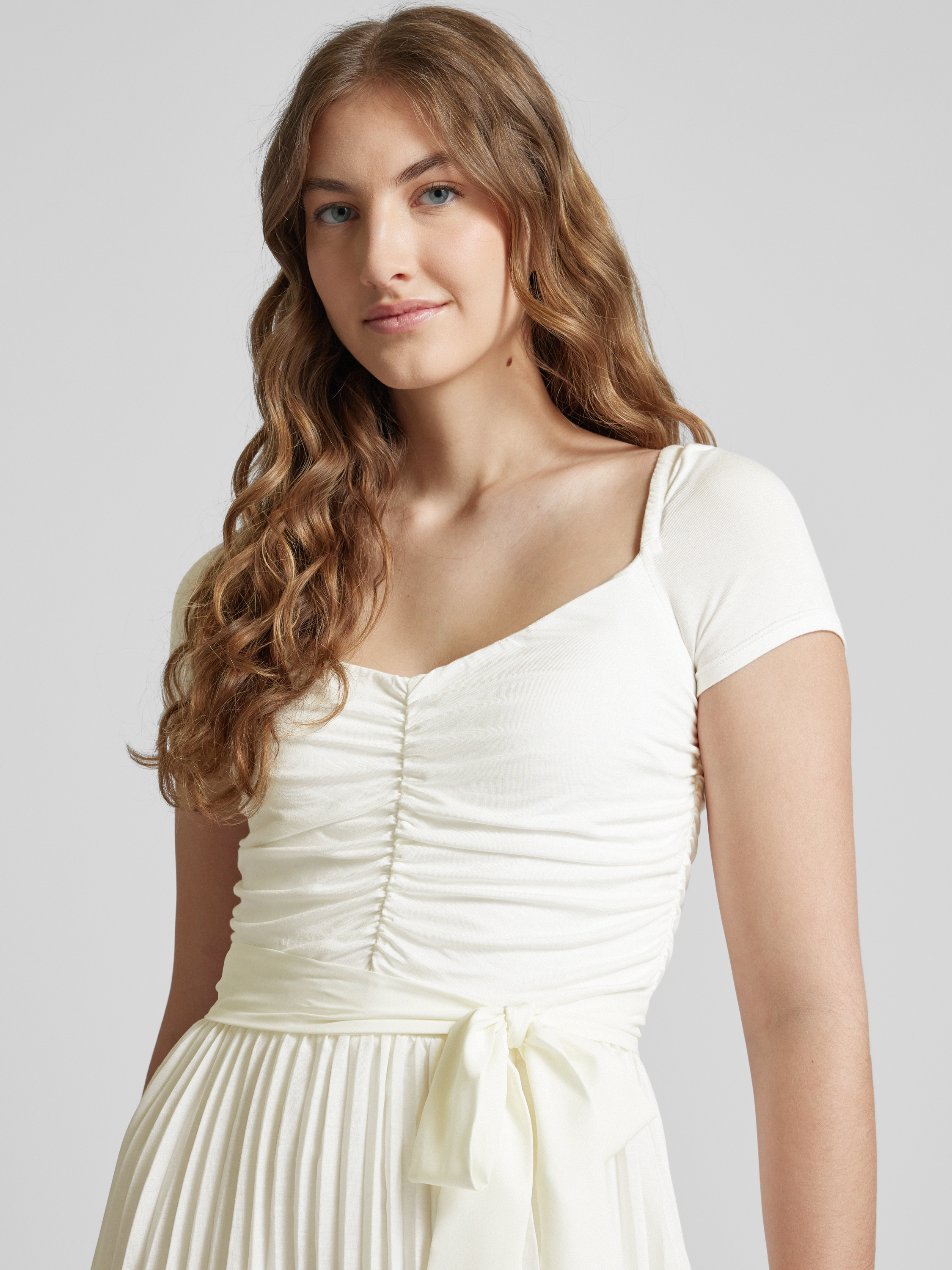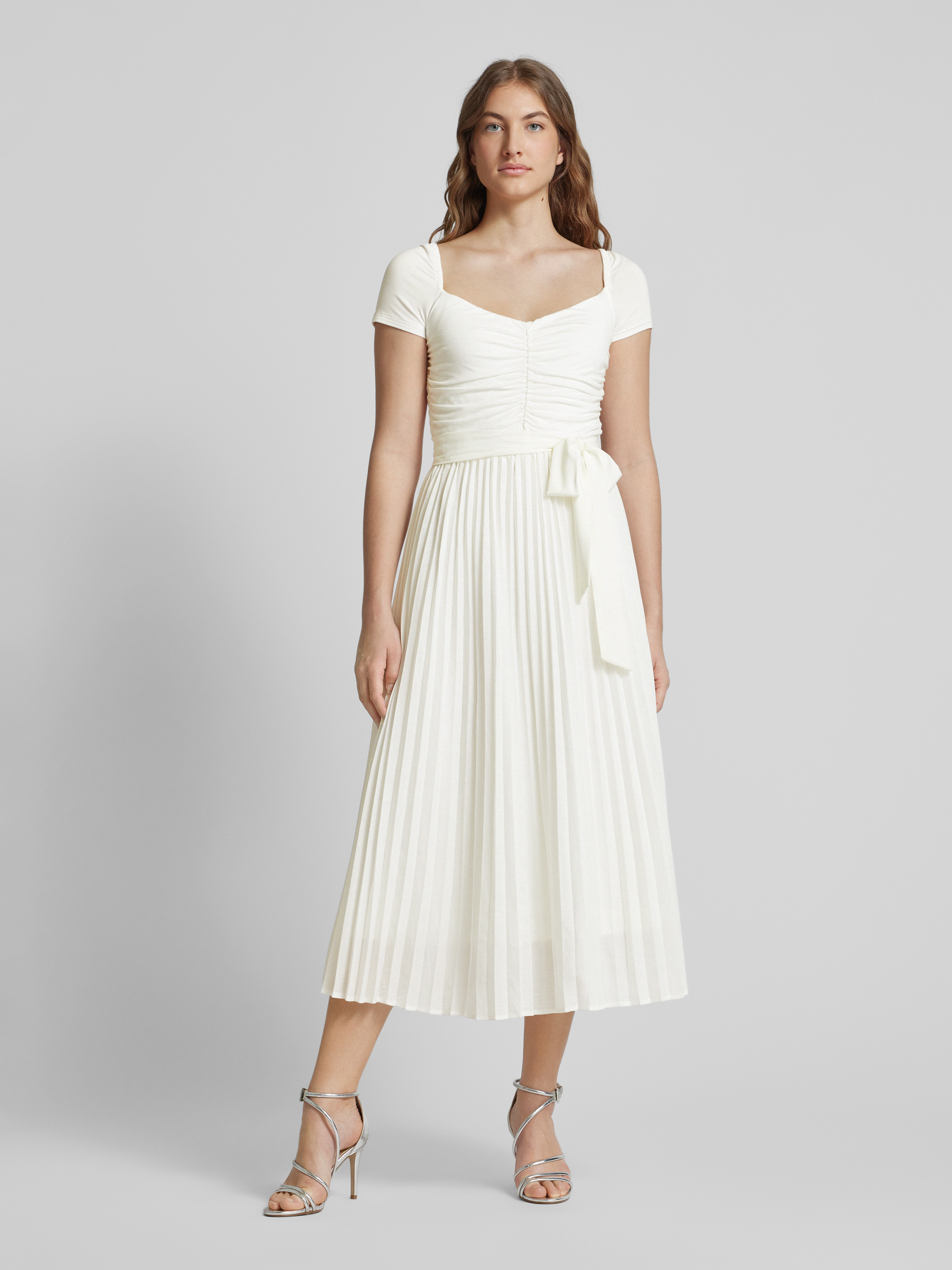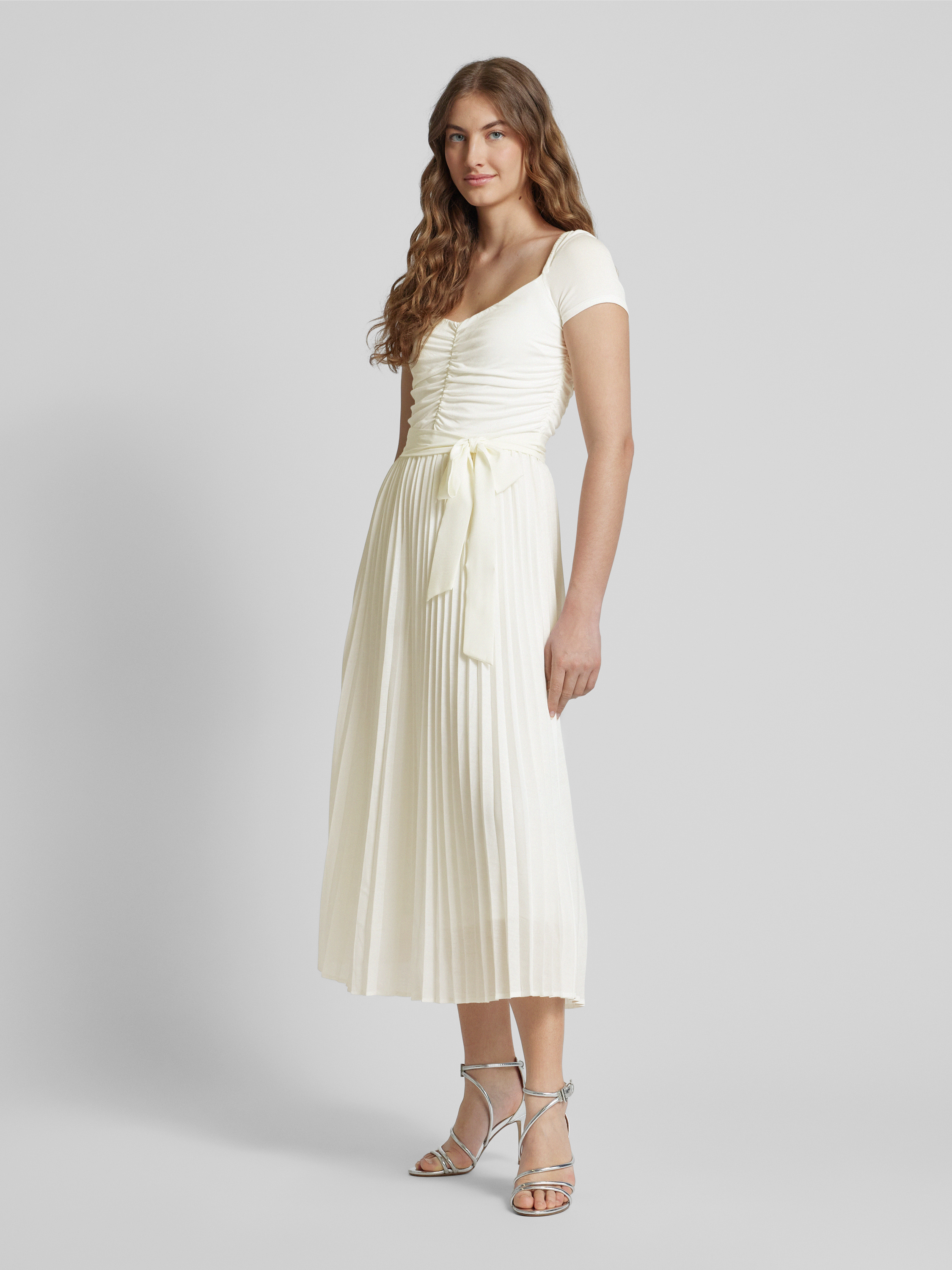 Midi-jurk met plooien, model 'VERONICA' in wit
