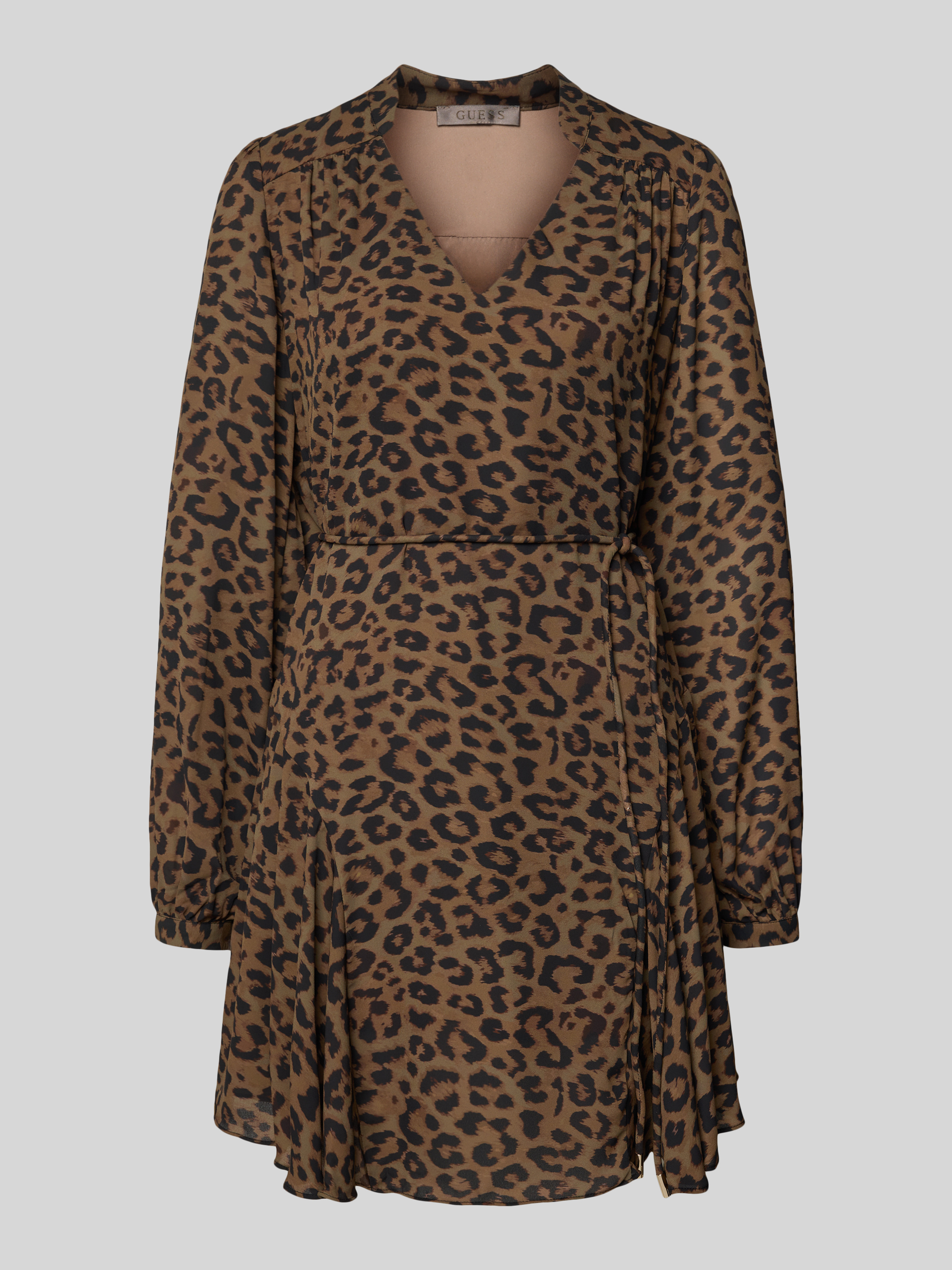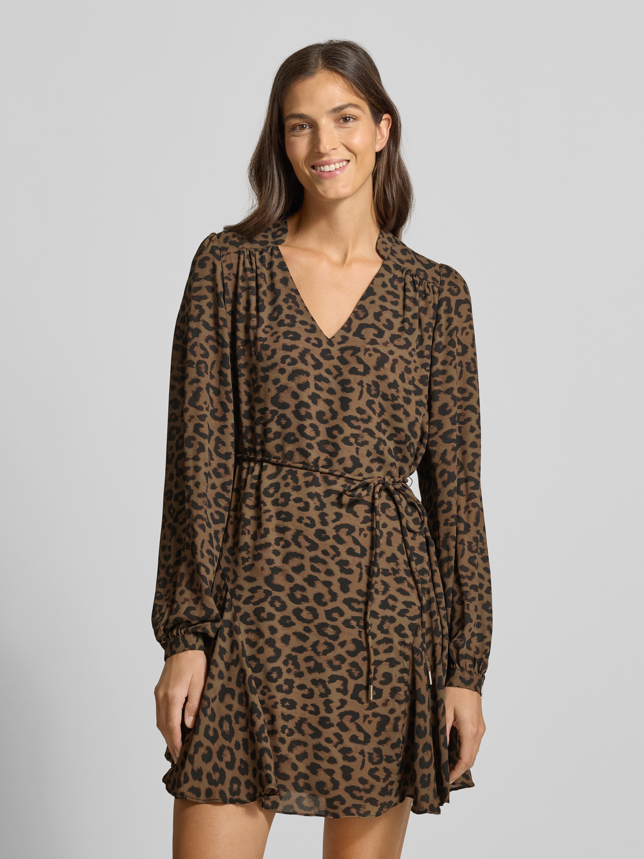 Mini-jurk met strikceintuur, model 'WANDA' in middenbruin