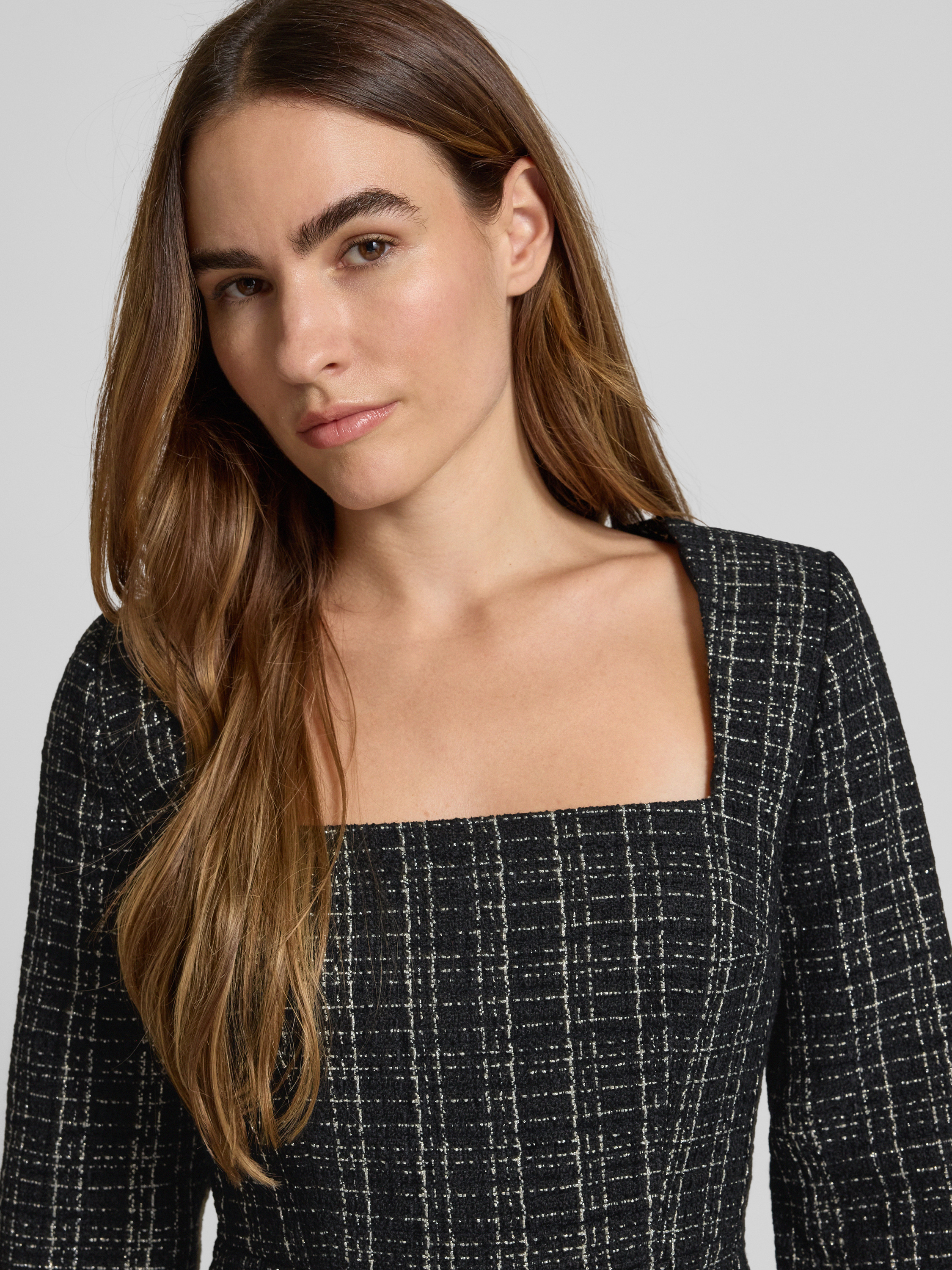 Mini-jurk met vierkante hals, model 'SANDRA' in zwart