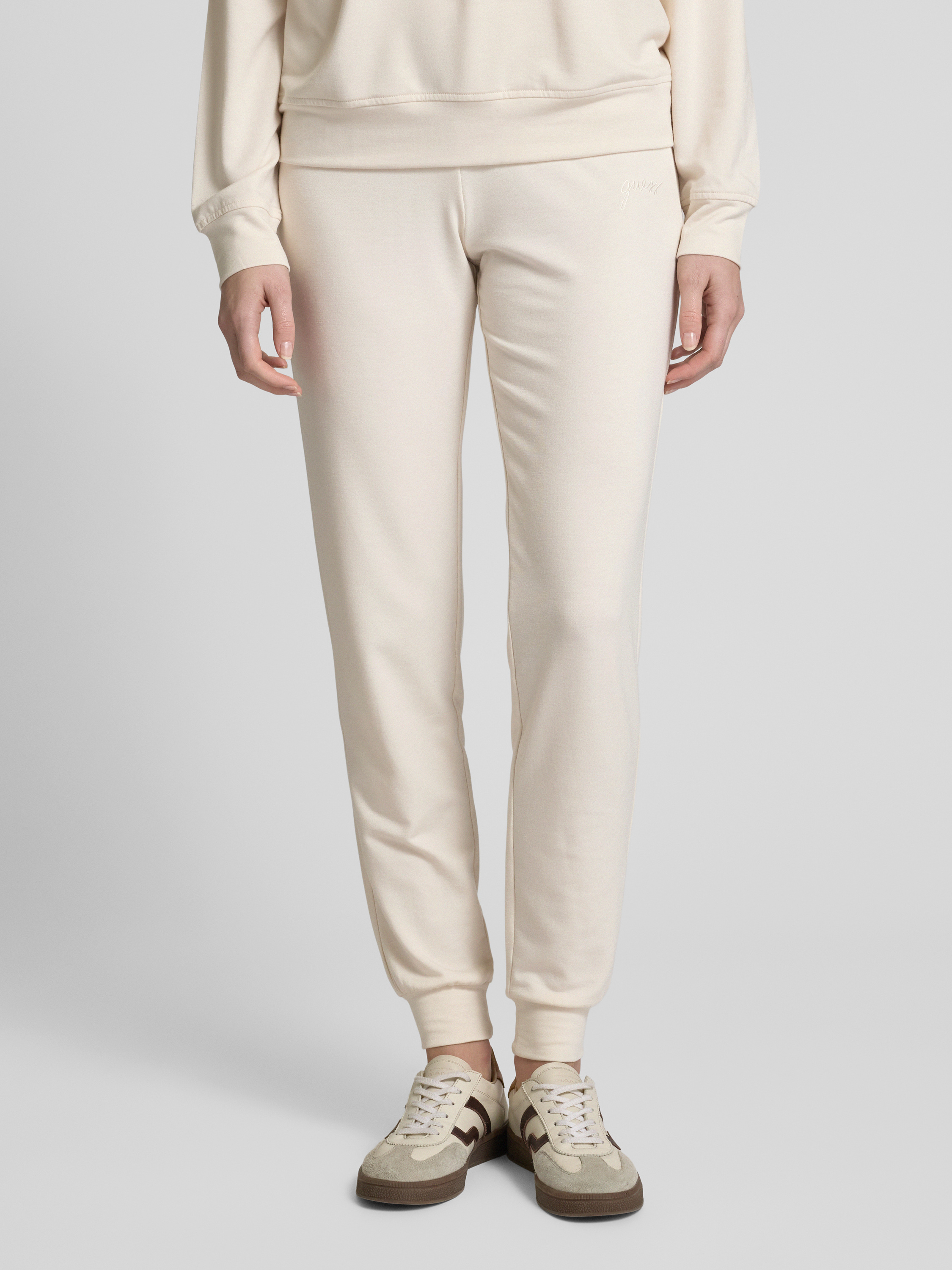 Sweatpants met labelstitching, model 'LUCIA' in beige