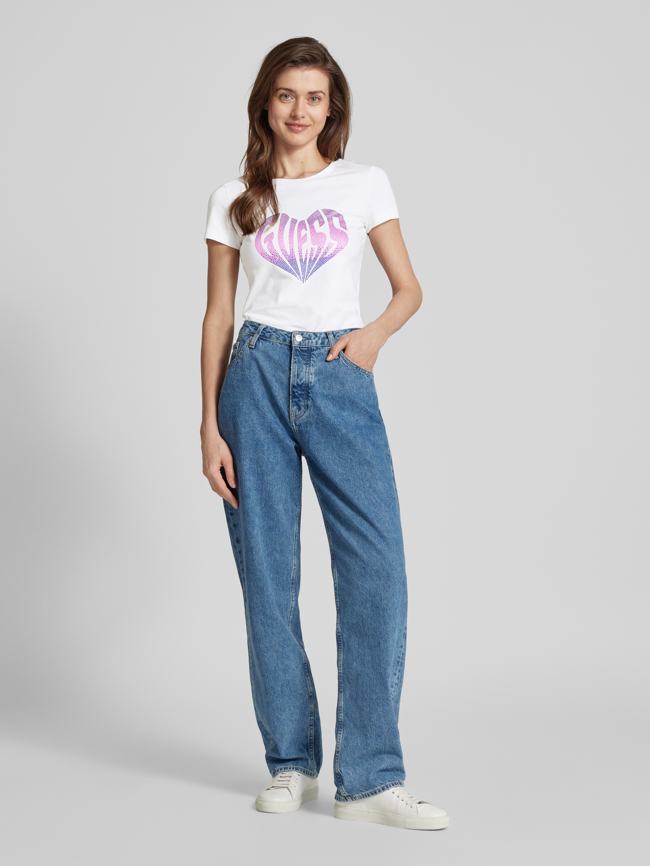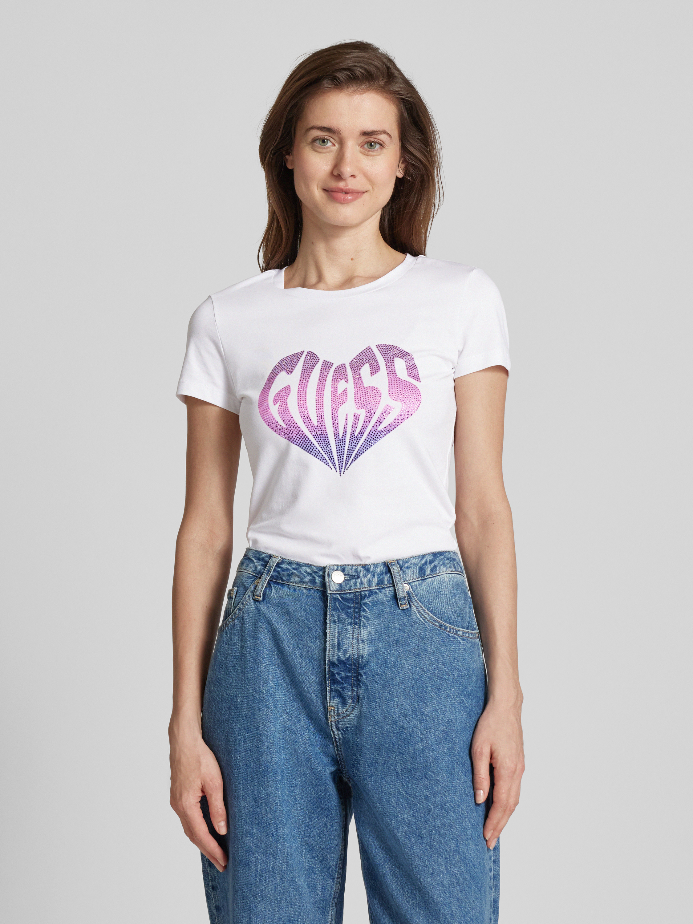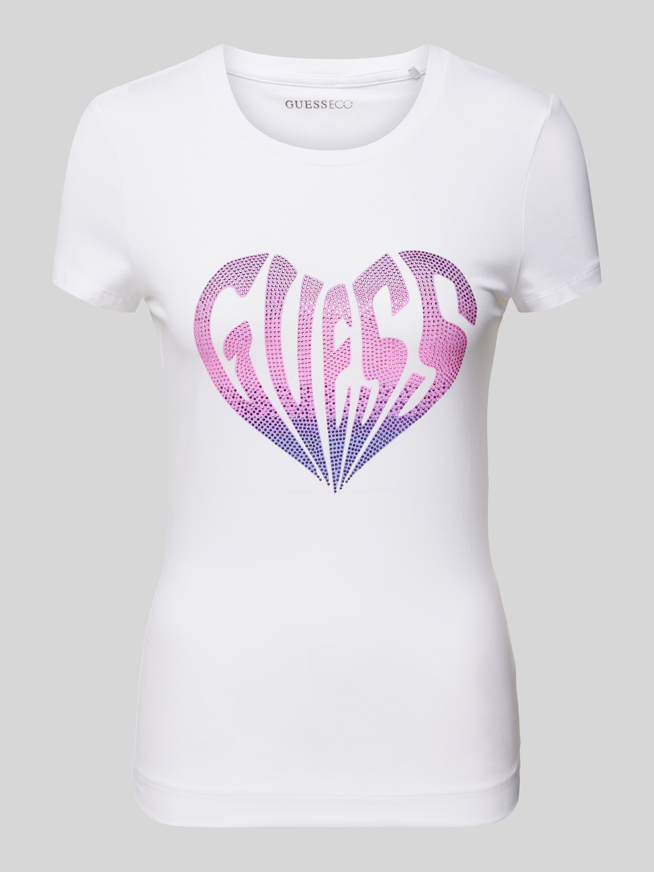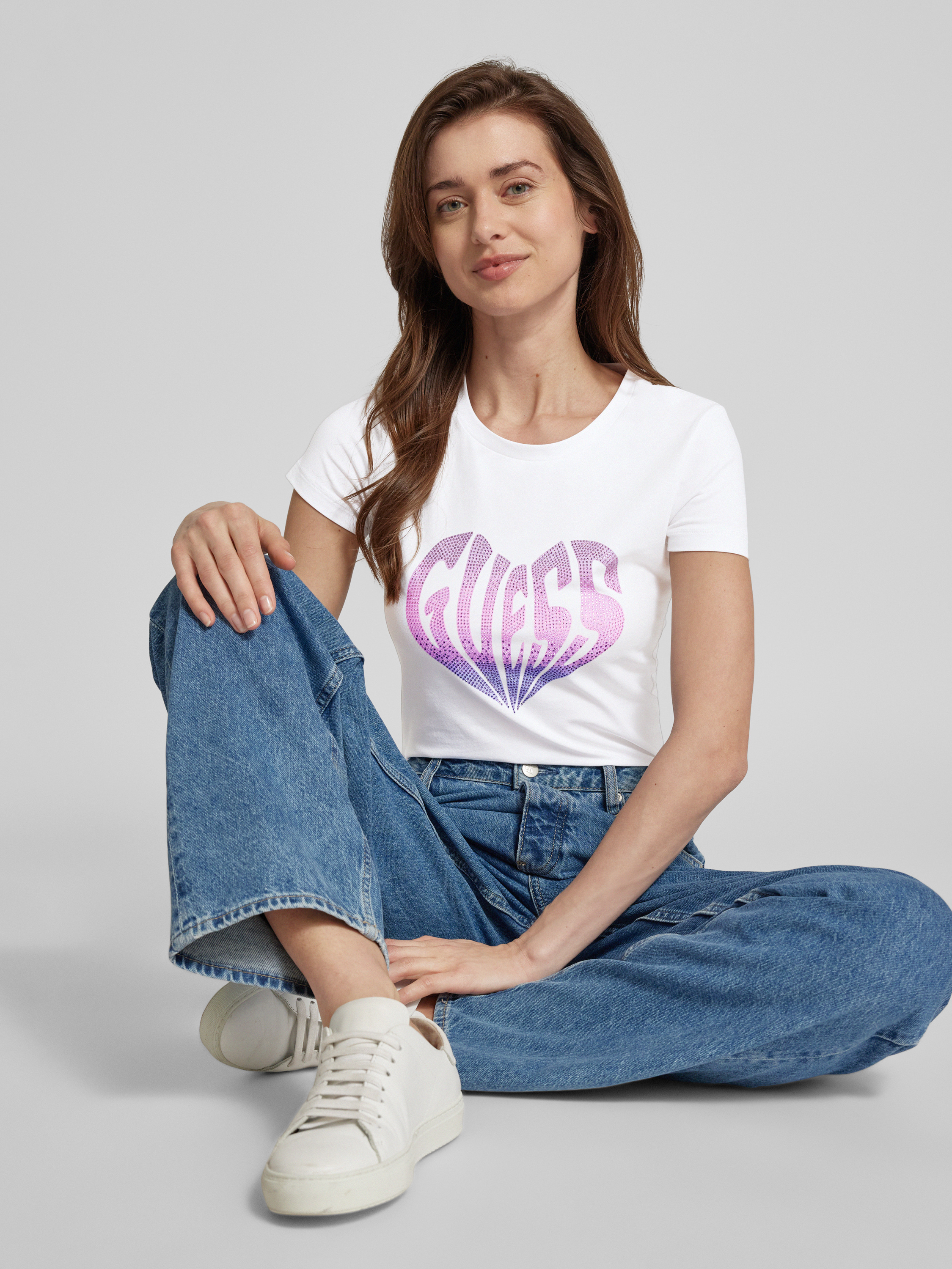T-shirt met strass-steentjes, model 'HEART' in wit