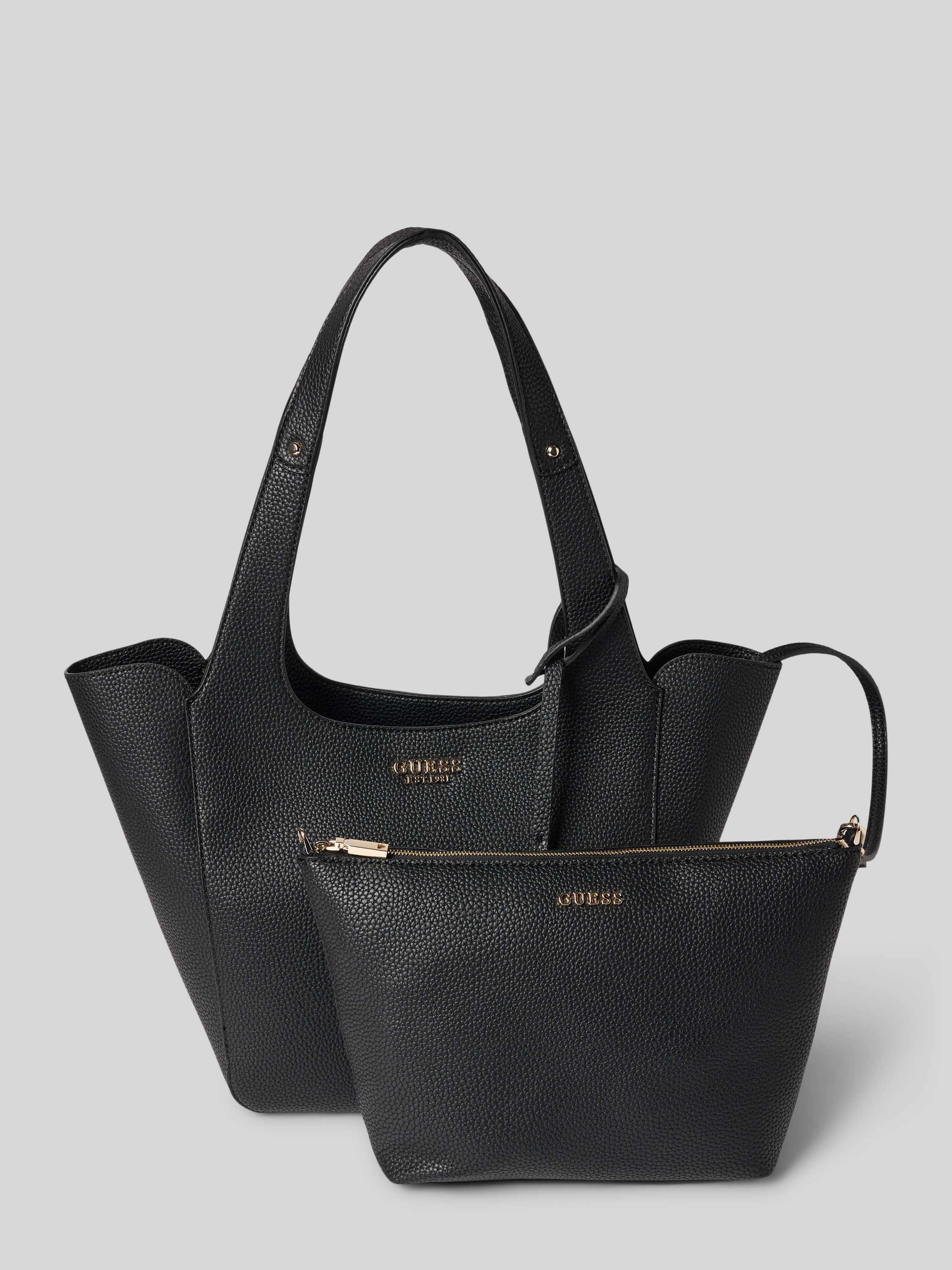 GuessTote bag in leerlook met logo-applicatie, model 'Calista' in zwart