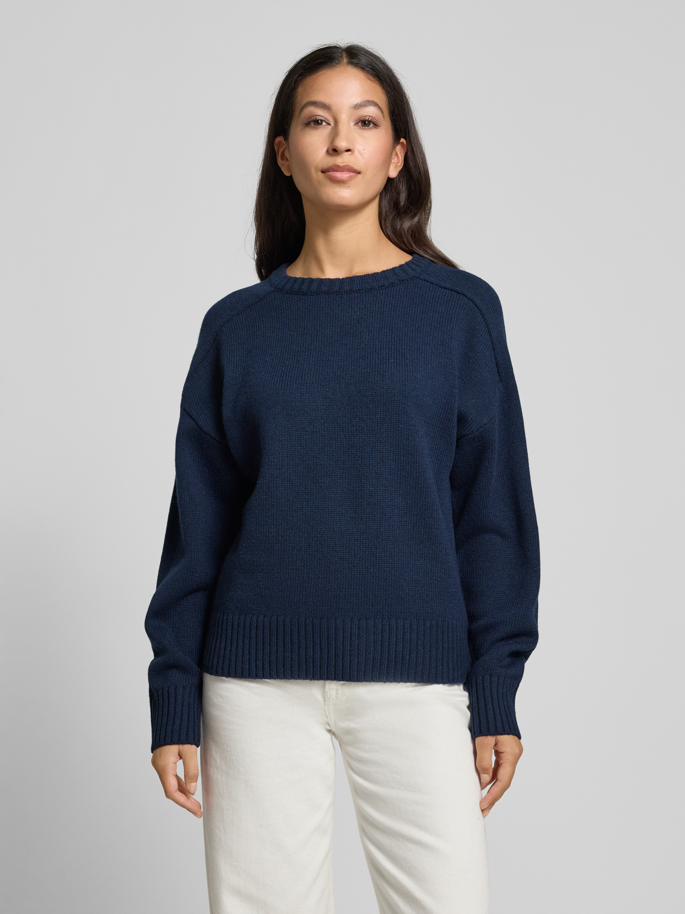 Gebreide pullover met ronde hals, model 'Ester' in marineblauw