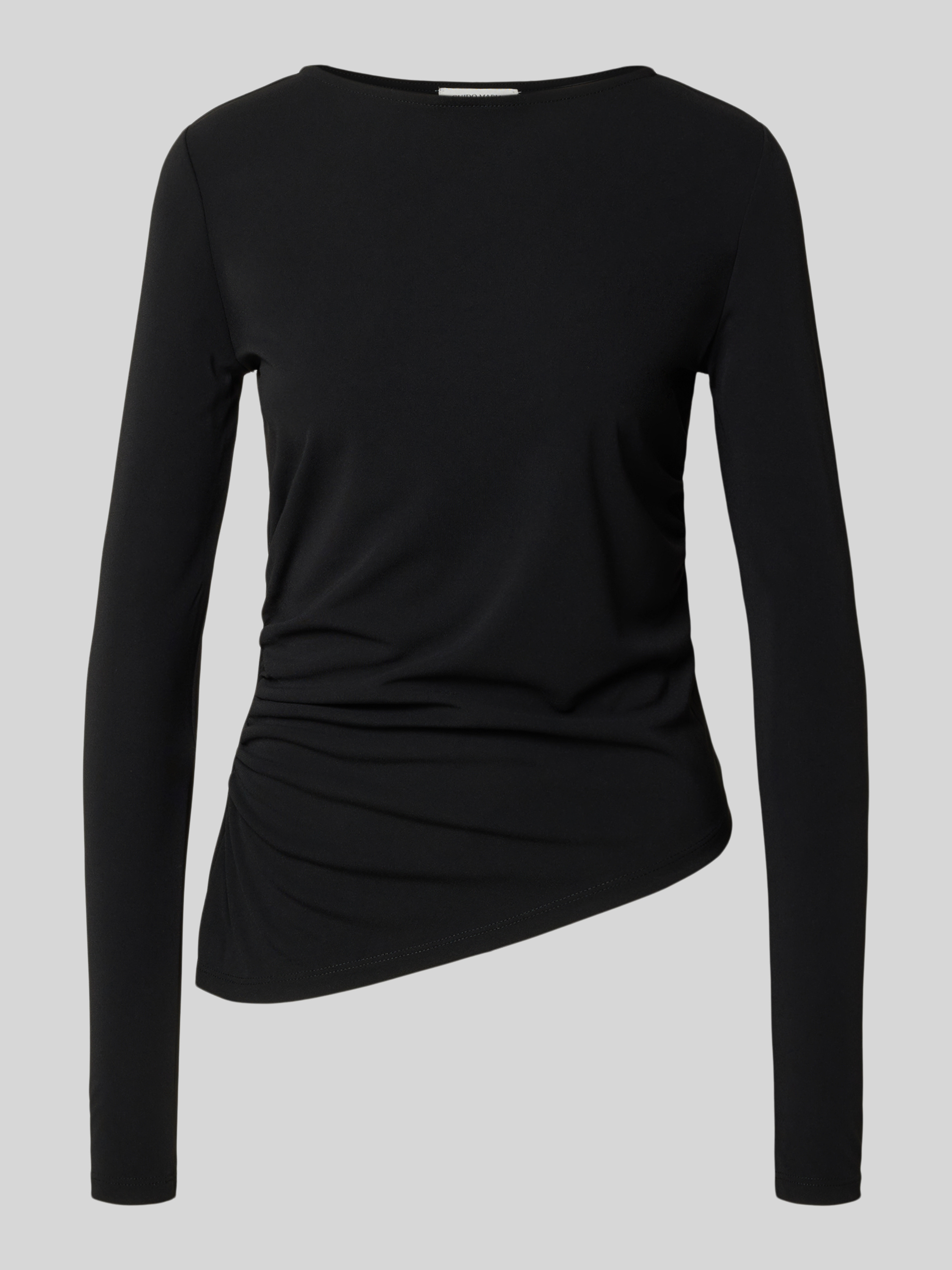 Slim fit shirt met lange mouwen in geplooide look, model 'Hellen' in zwart