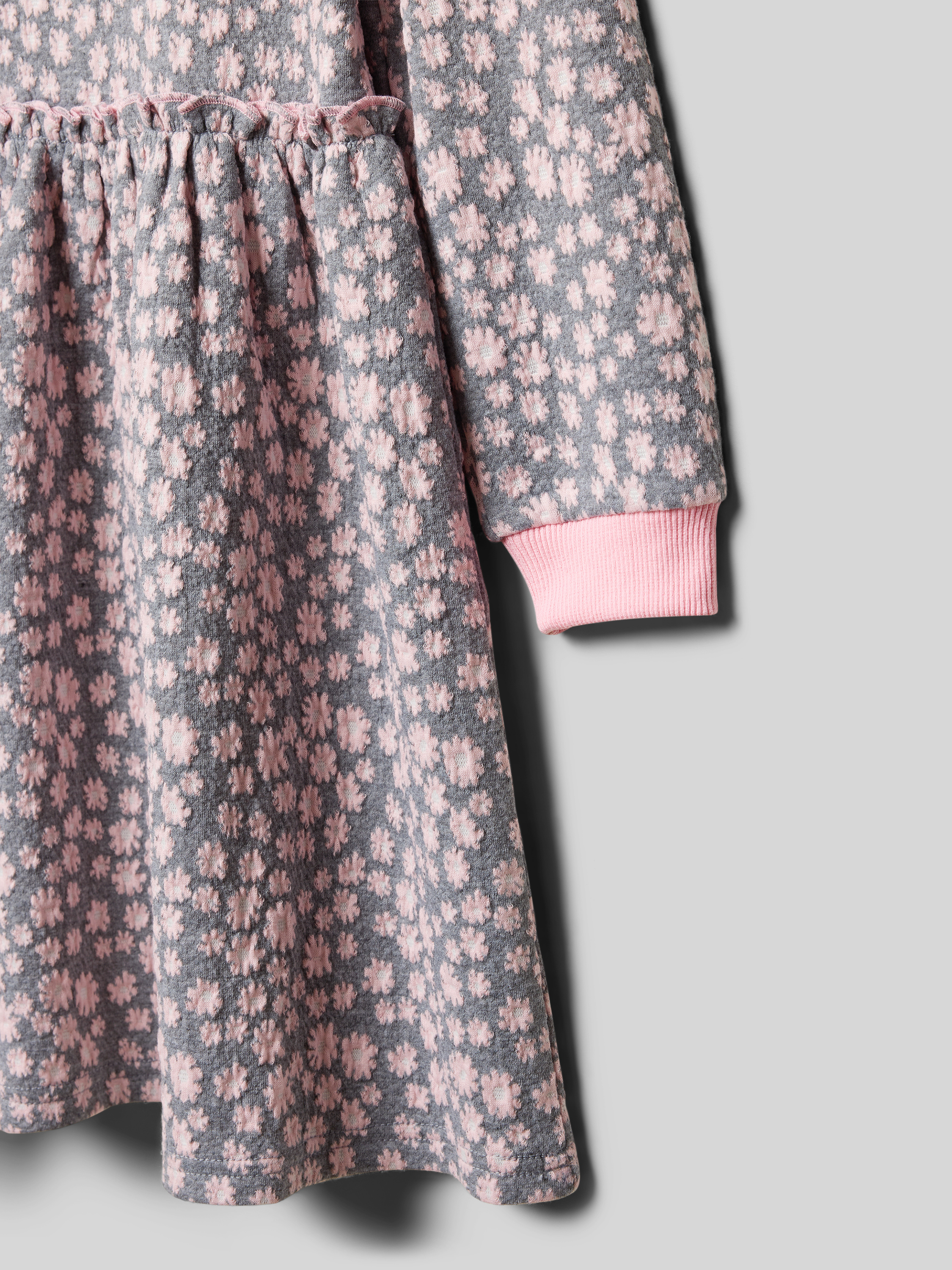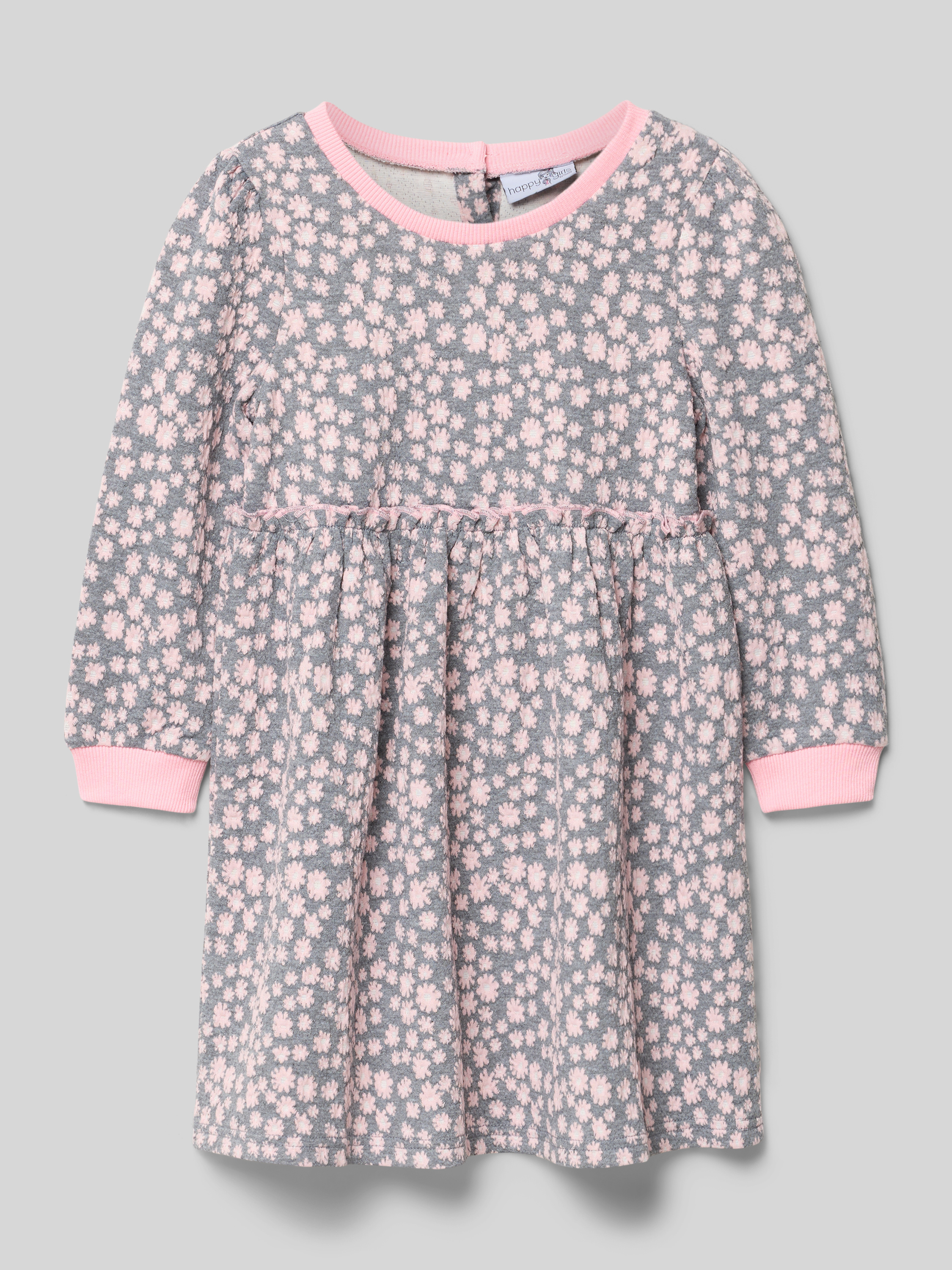 Midi-jurk met ronde hals in middengrijs gemêleerd