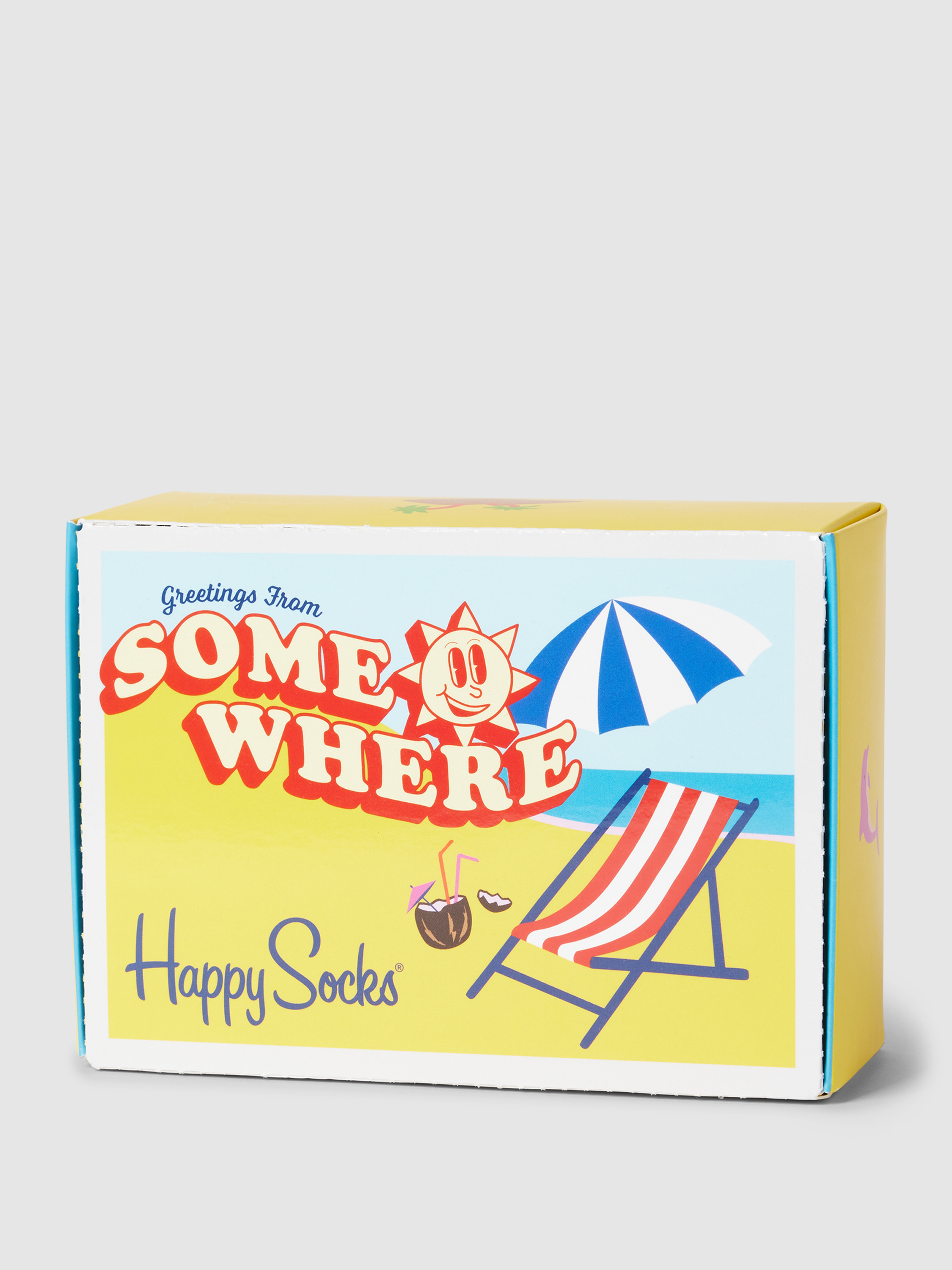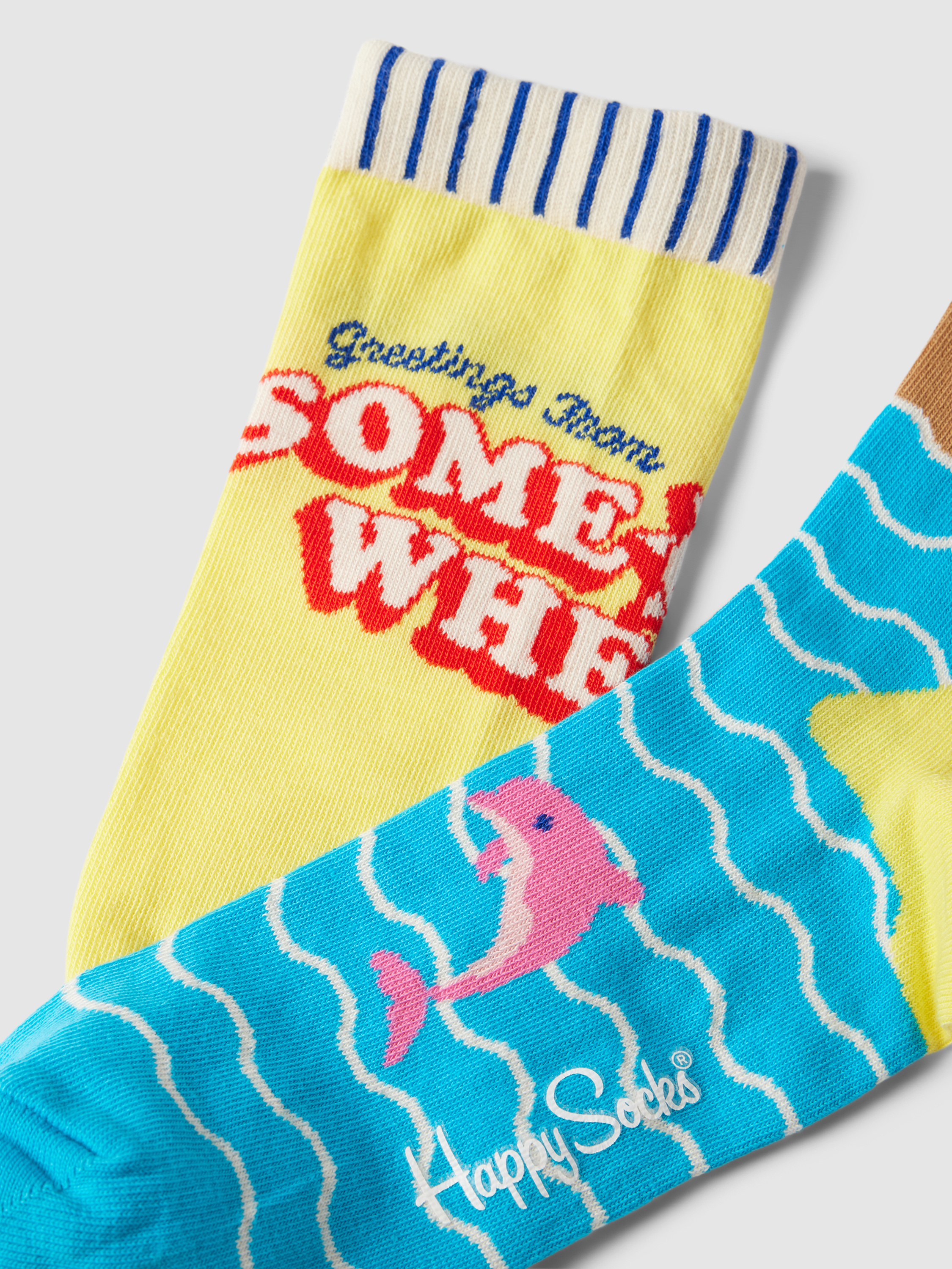 Sokken in een set van 2 paar met all-over print, model 'Wish You Were Here' in geel