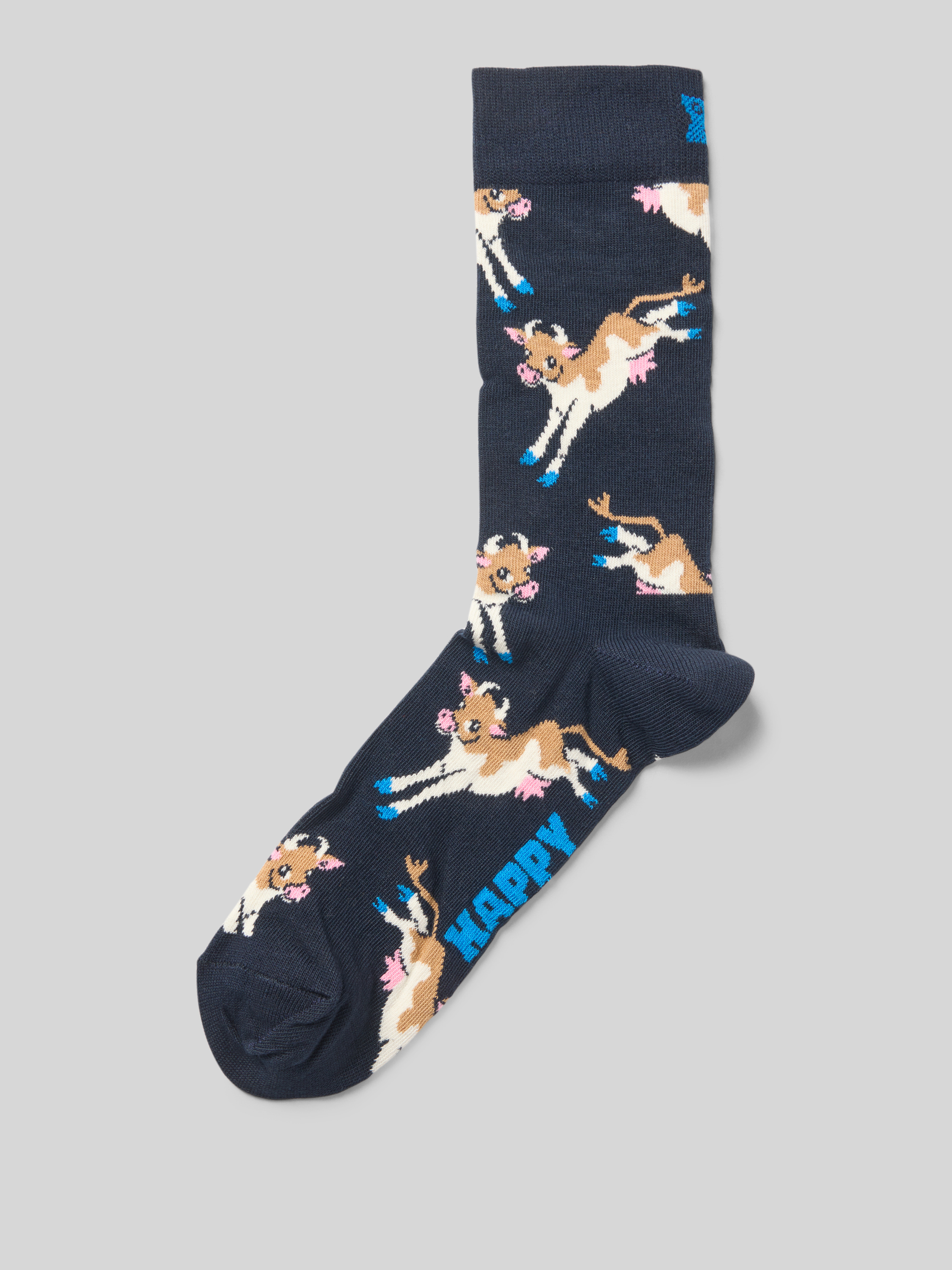 Sokken met motiefstitching, model 'Cow' in donkerblauw
