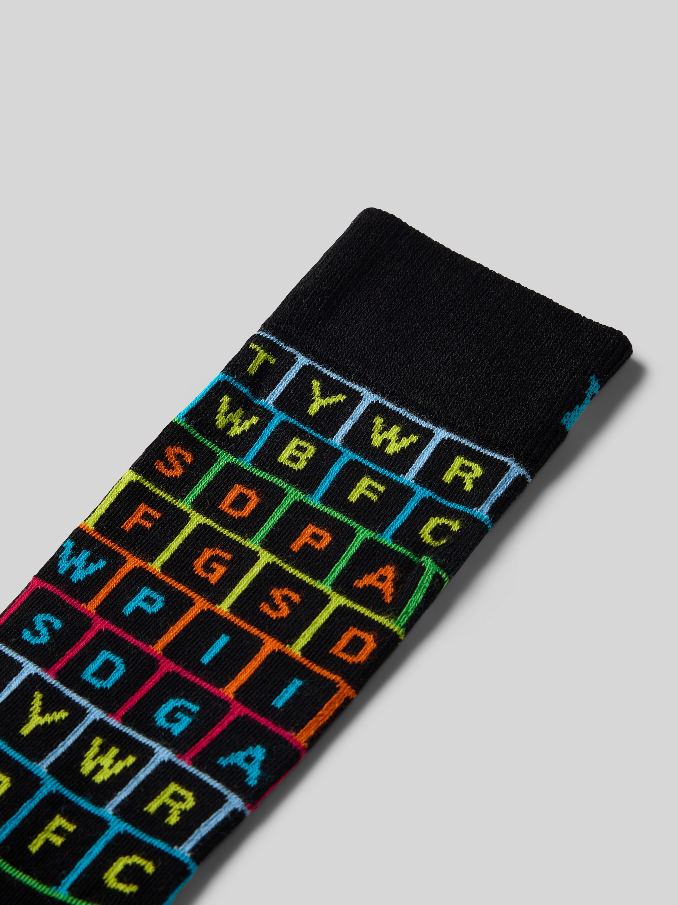 Sokken met motiefstitching, model 'KEYBOARD' in zwart