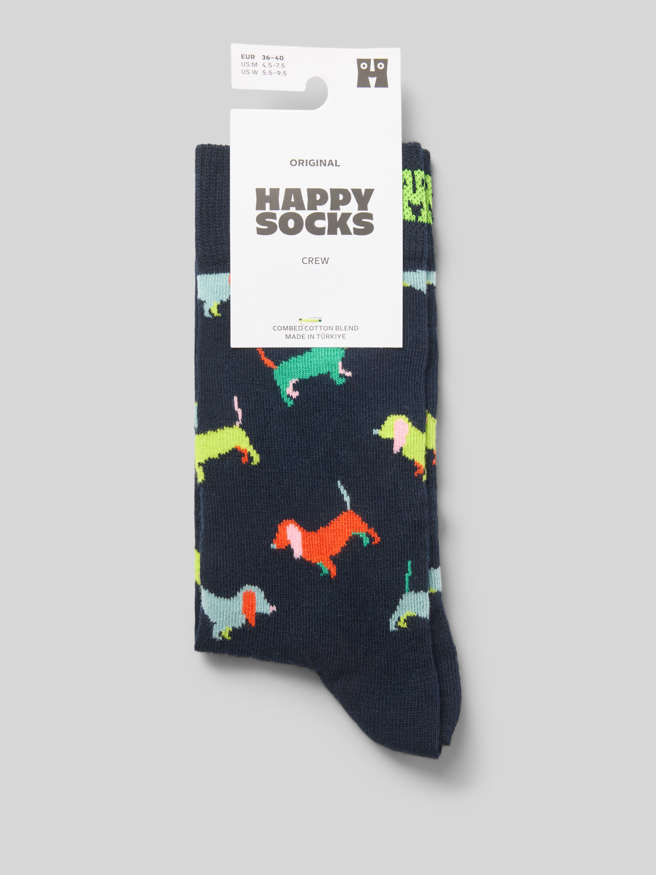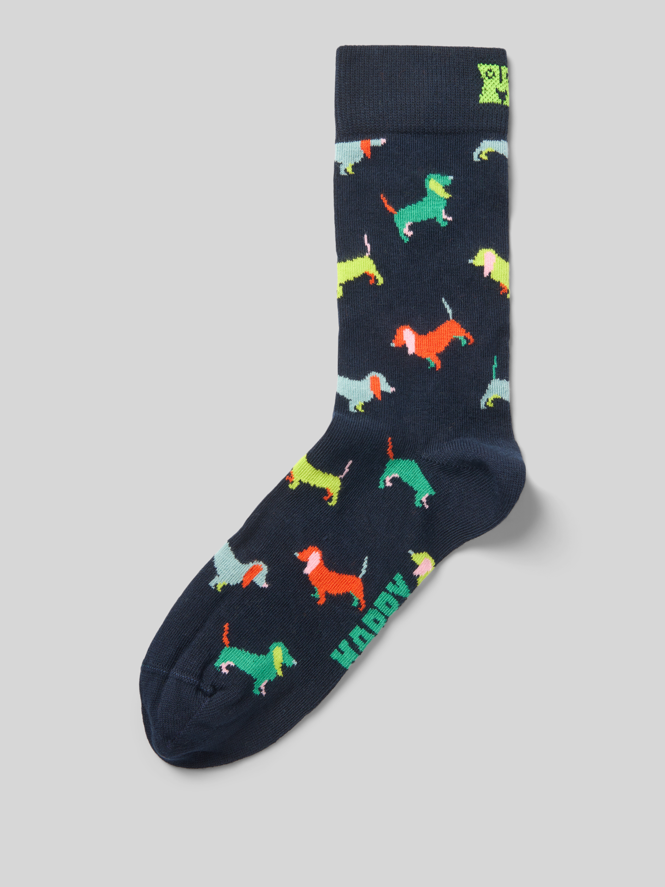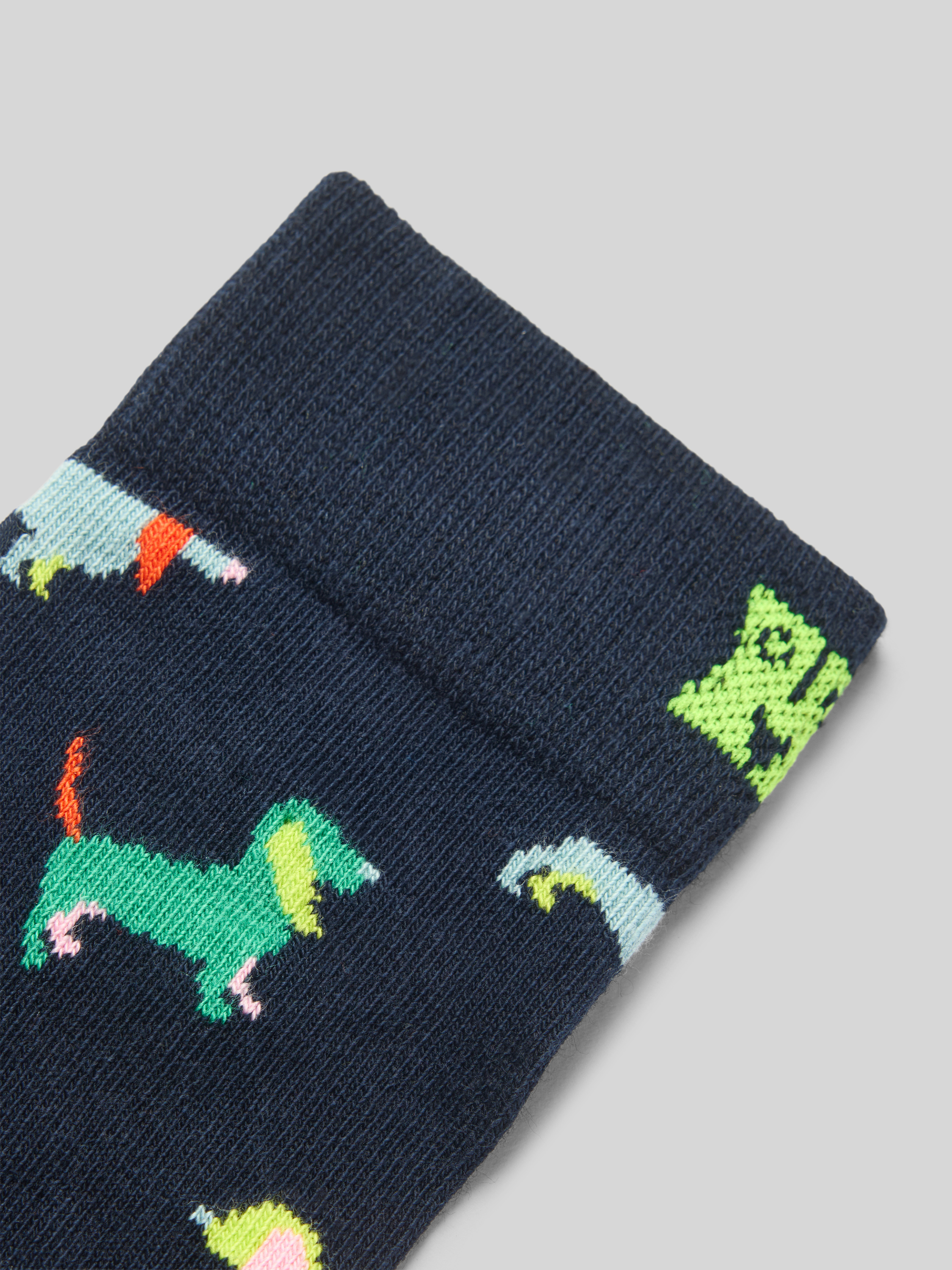Sokken met motiefstitching, model 'Puppy Love' in donkerblauw