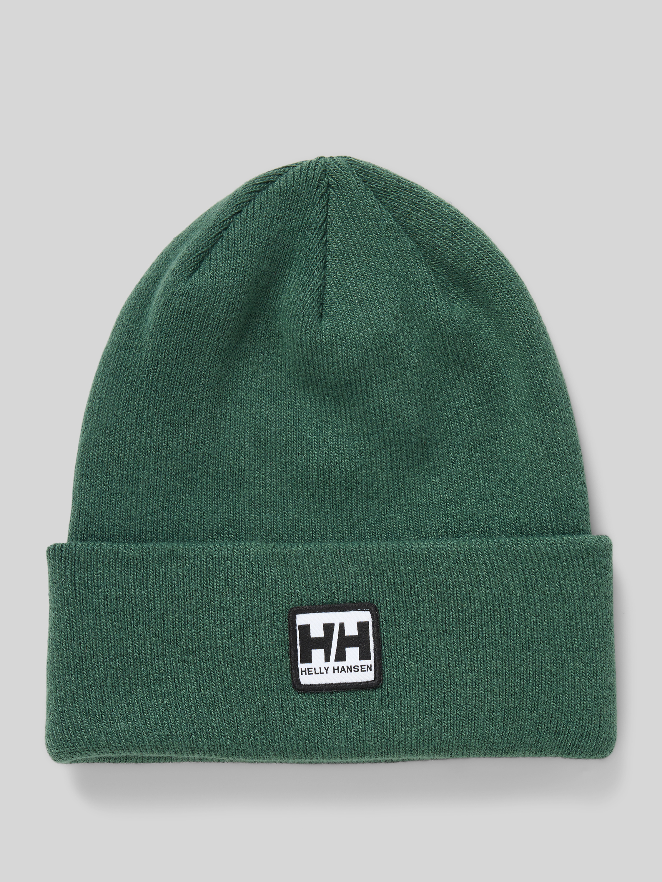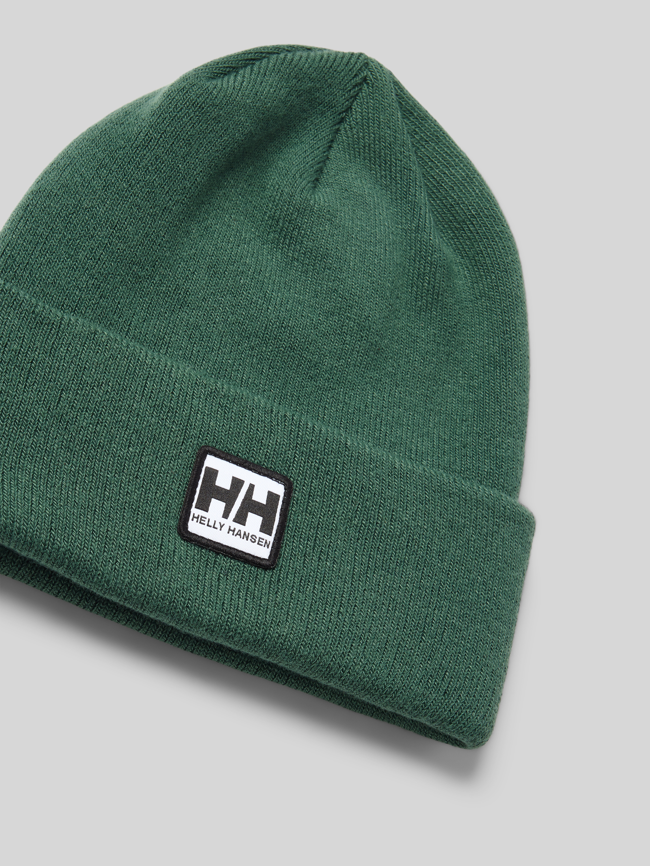 Beanie met labelpatch in donkergroen