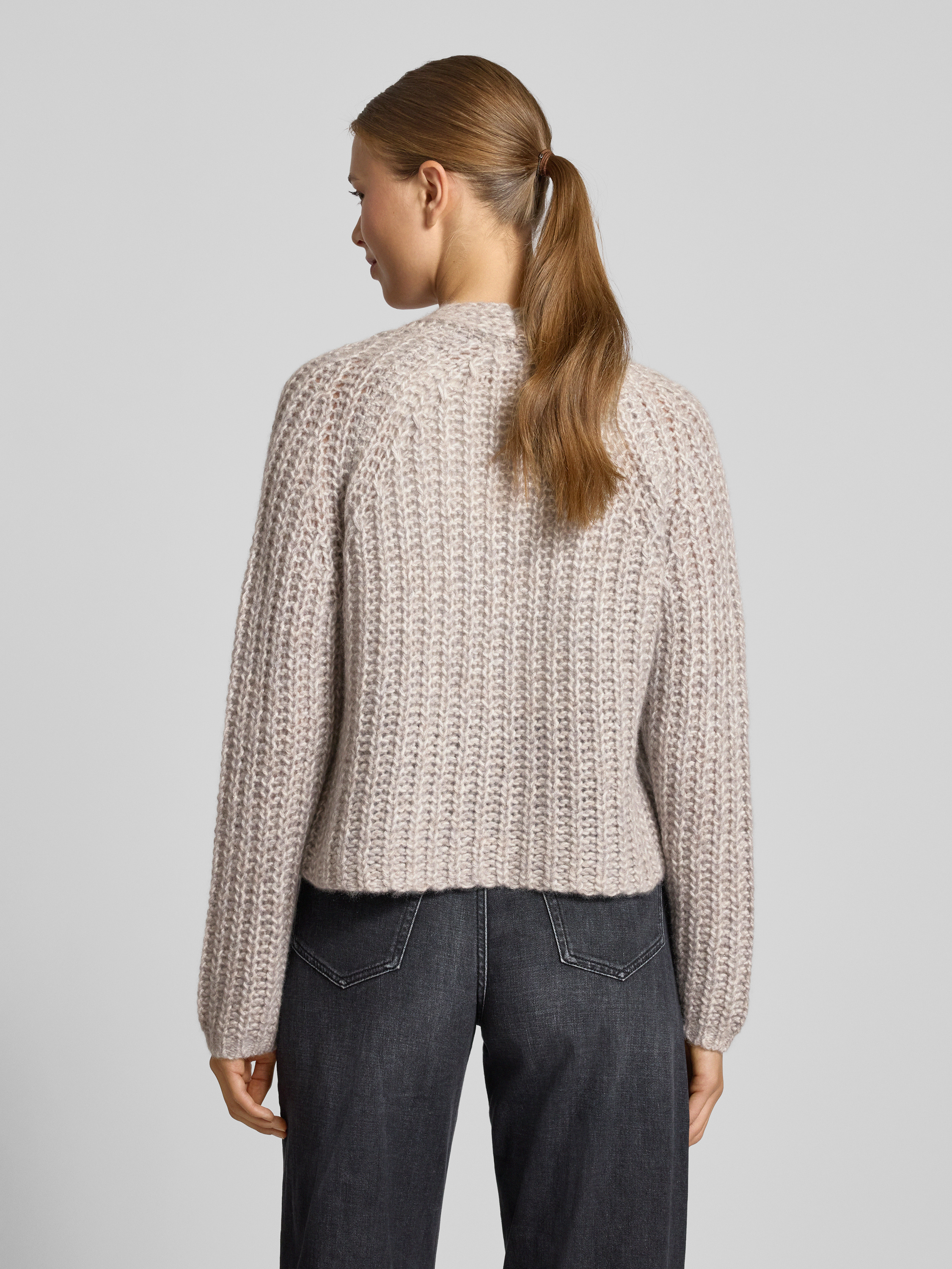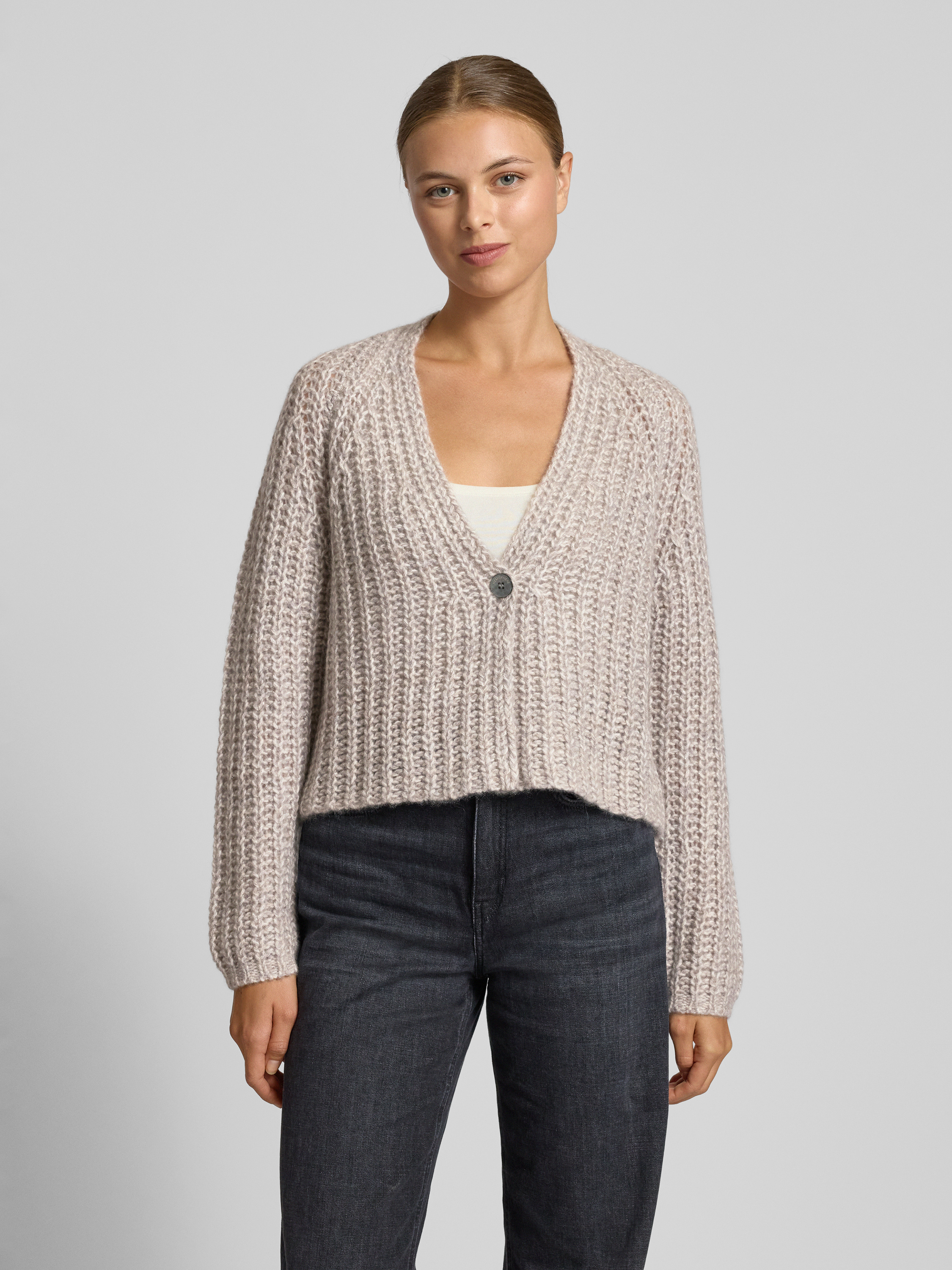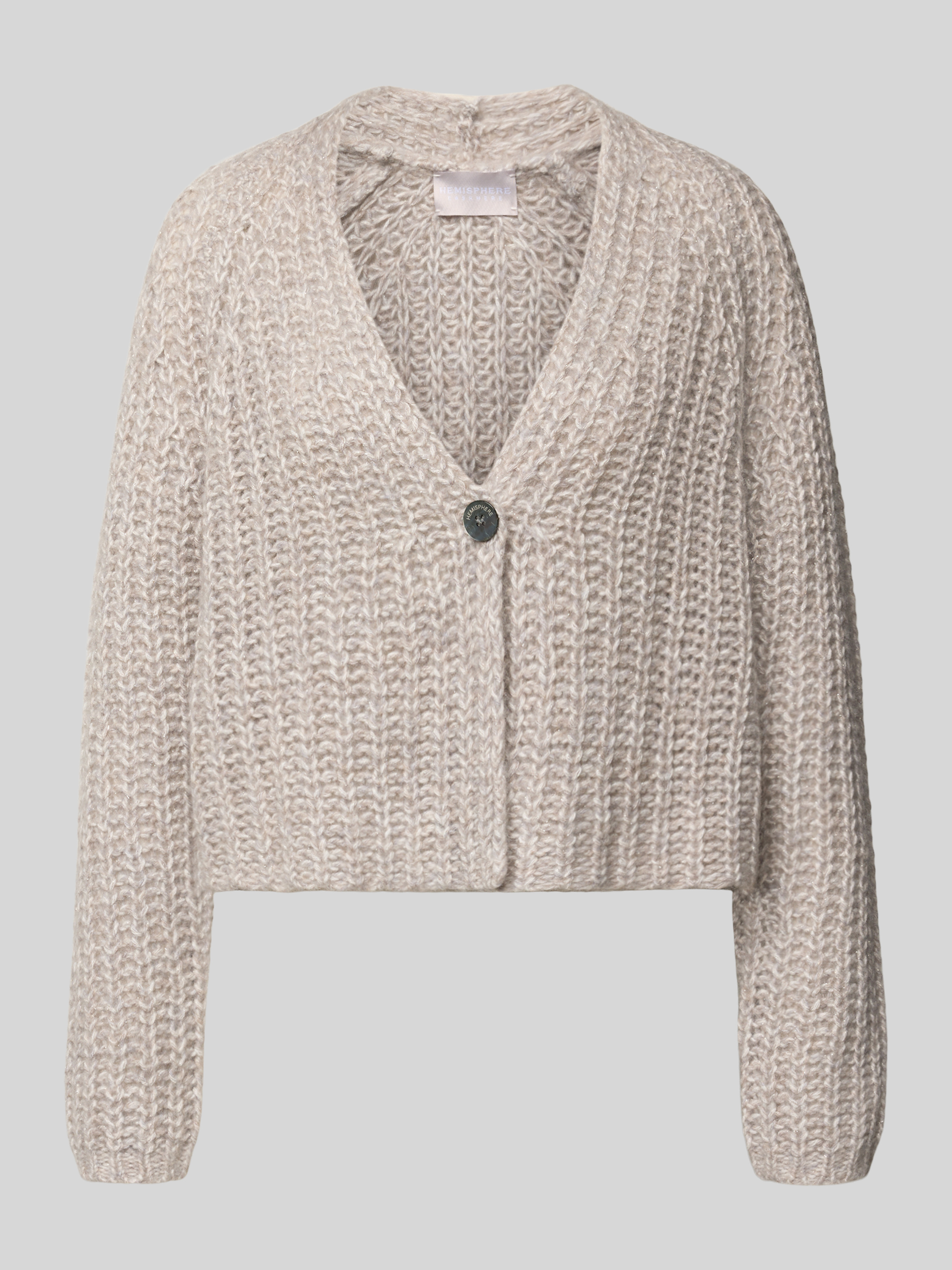 Gebreid jack van kasjmiermix met knoopsluiting in lichtgrijs gemêleerd