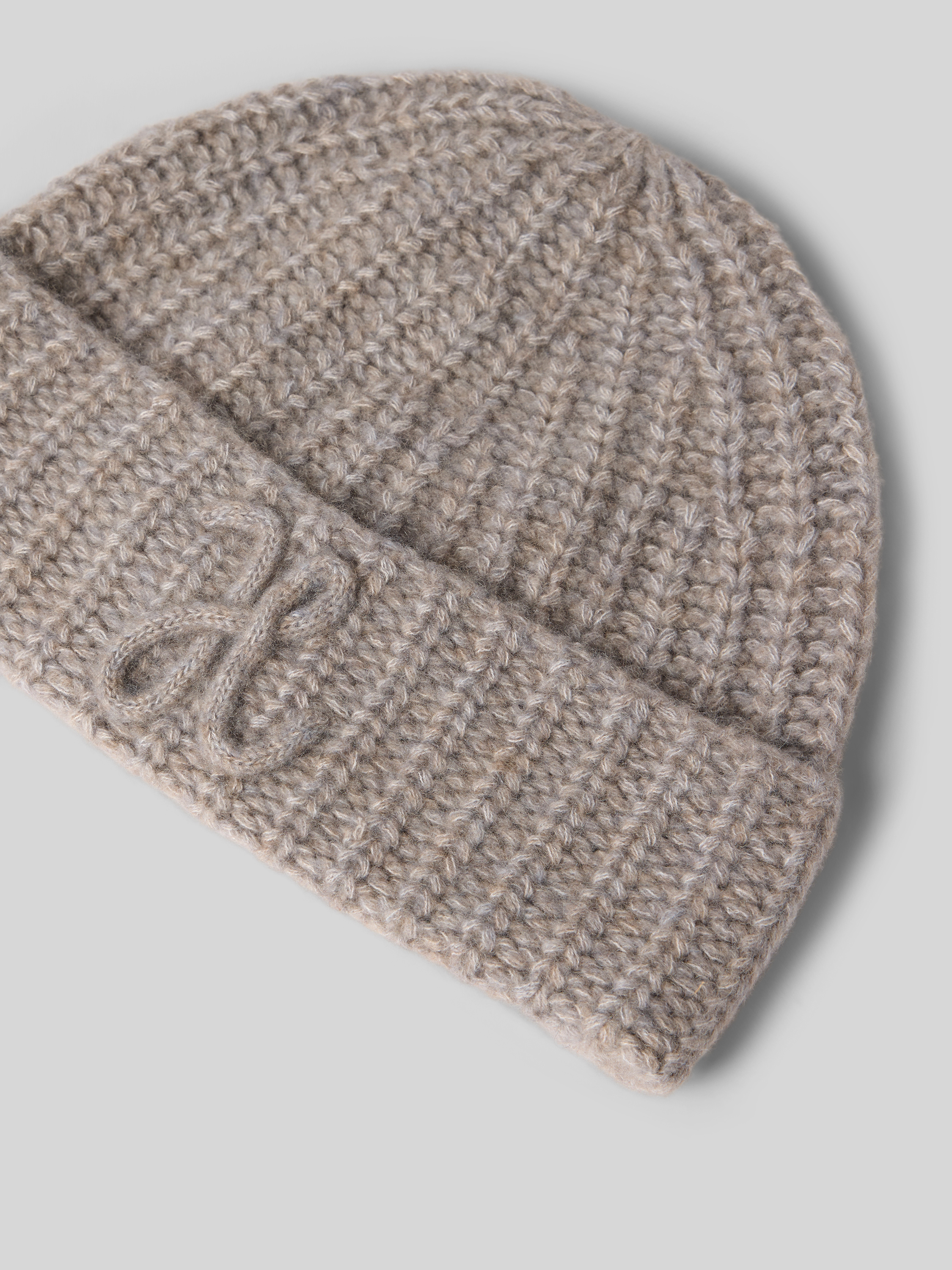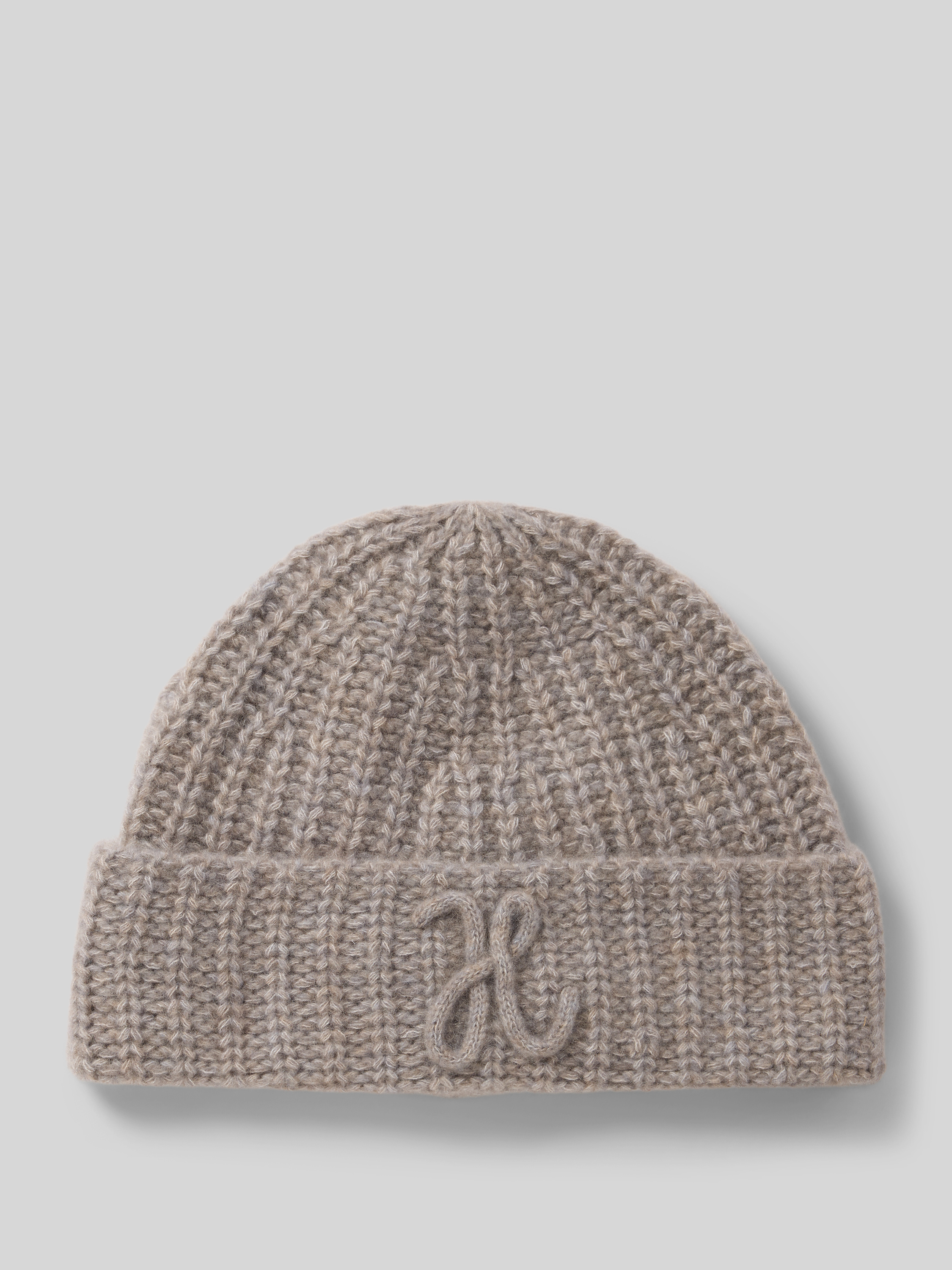 Gebreide muts van kasjmier met logodetail in lichtgrijs