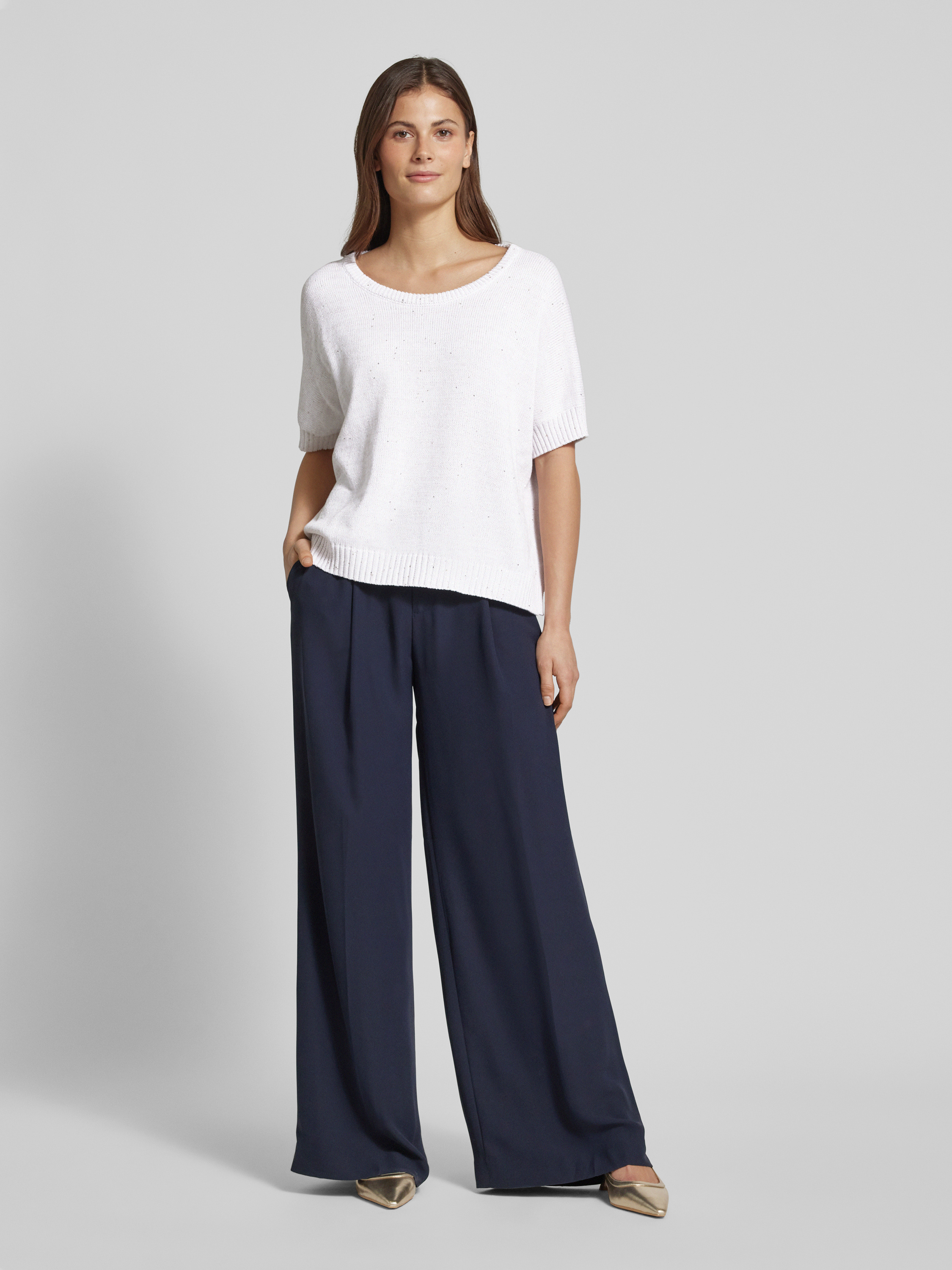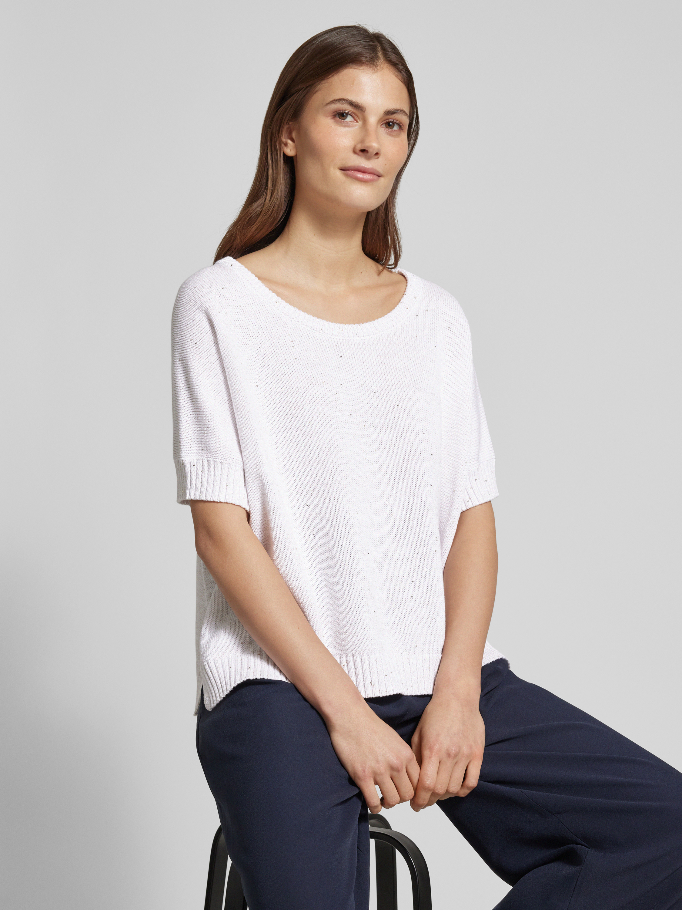 HemisphereGebreide pullover met ribboorden in offwhite