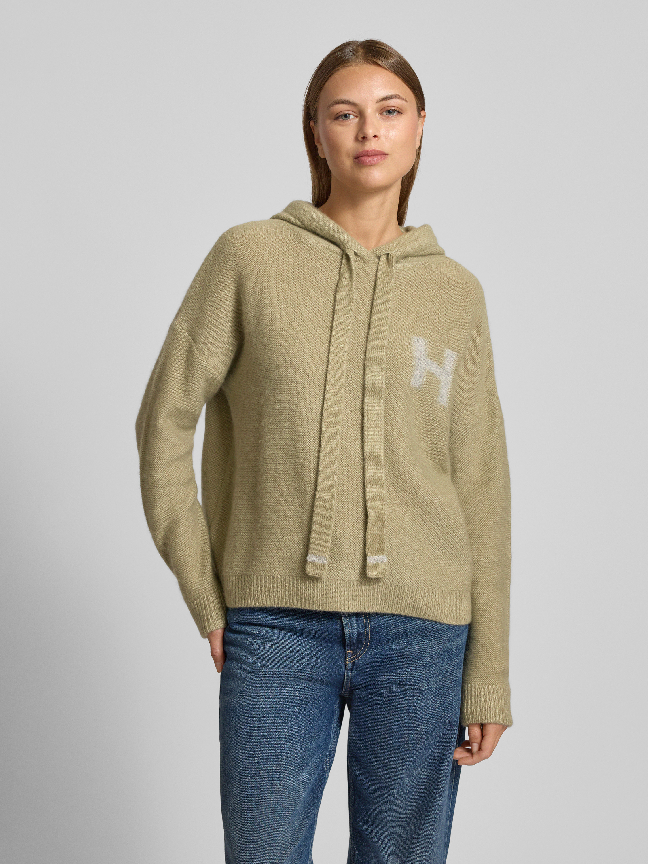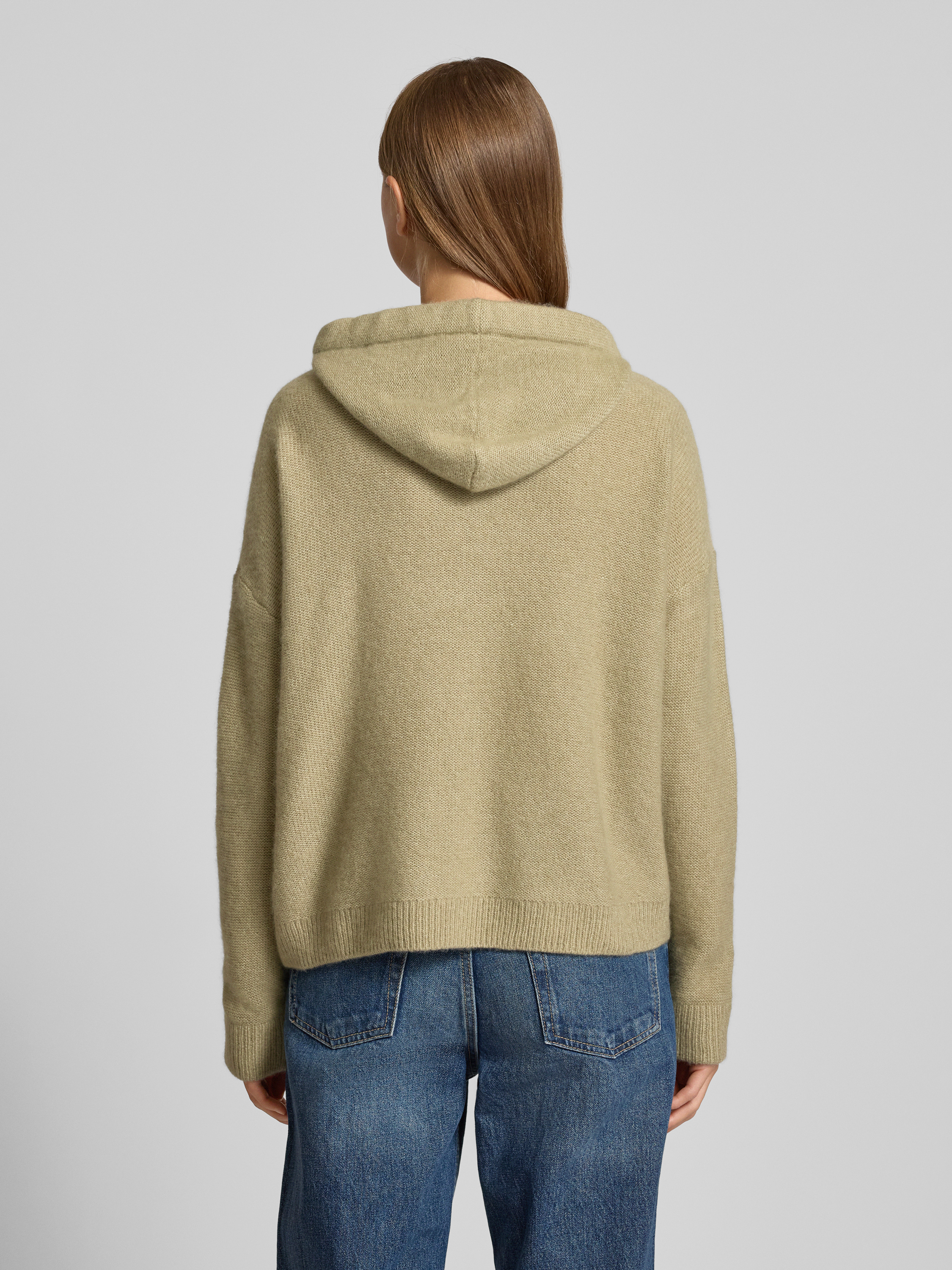 Gebreide pullover van kasjmiermix met capuchon in rietgroen