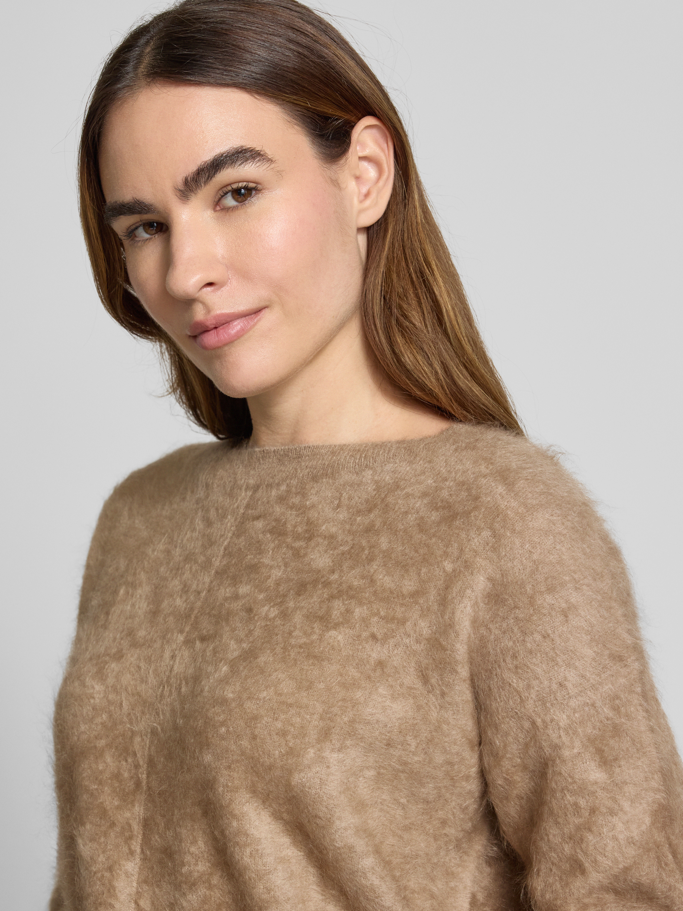 Regular fit pullover van puur kasjmier in gebreide look in beige