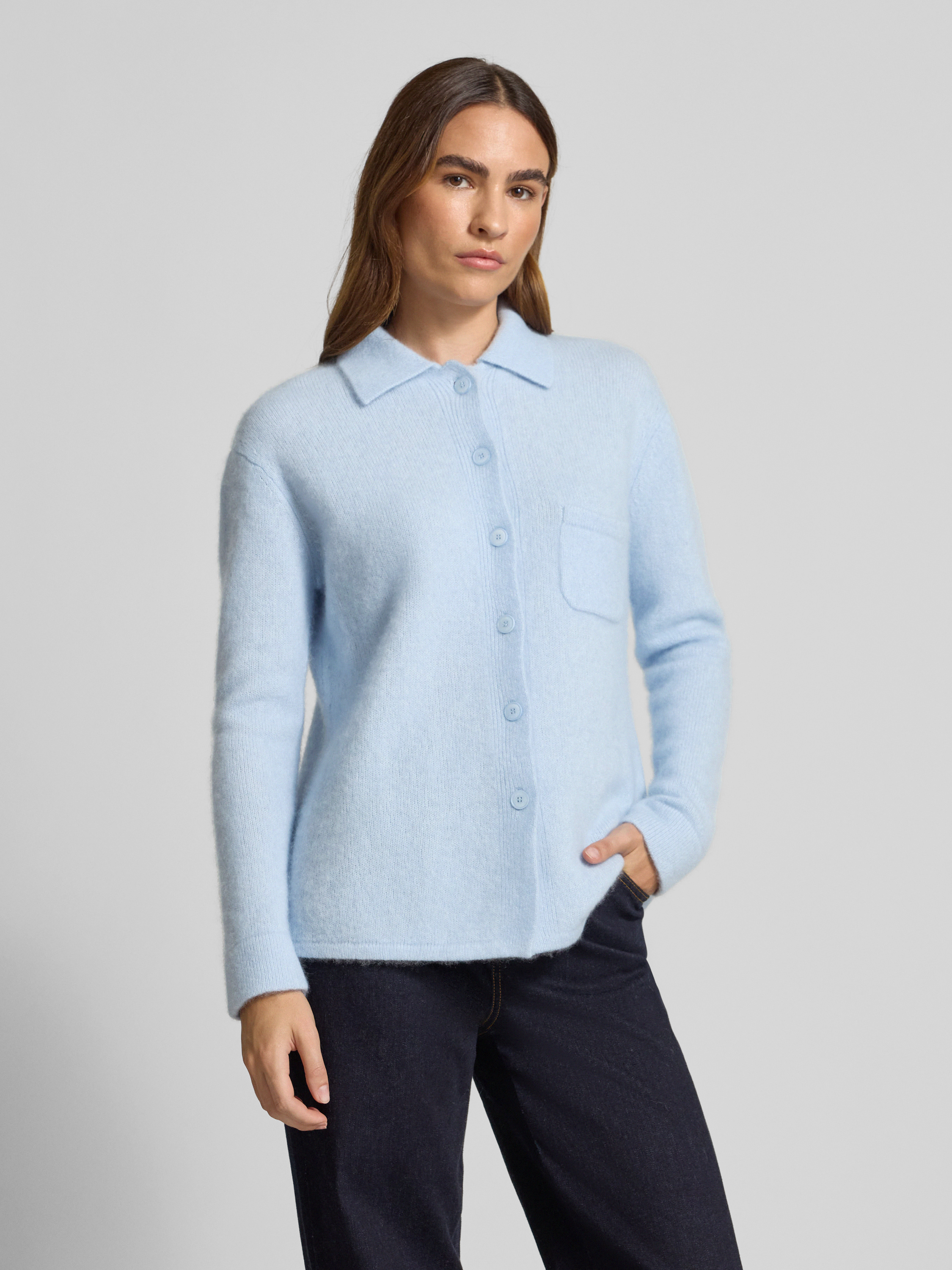 HerzensangelegenheitGebreid jack van een mix van kasjmier en katoen in lichtblauw