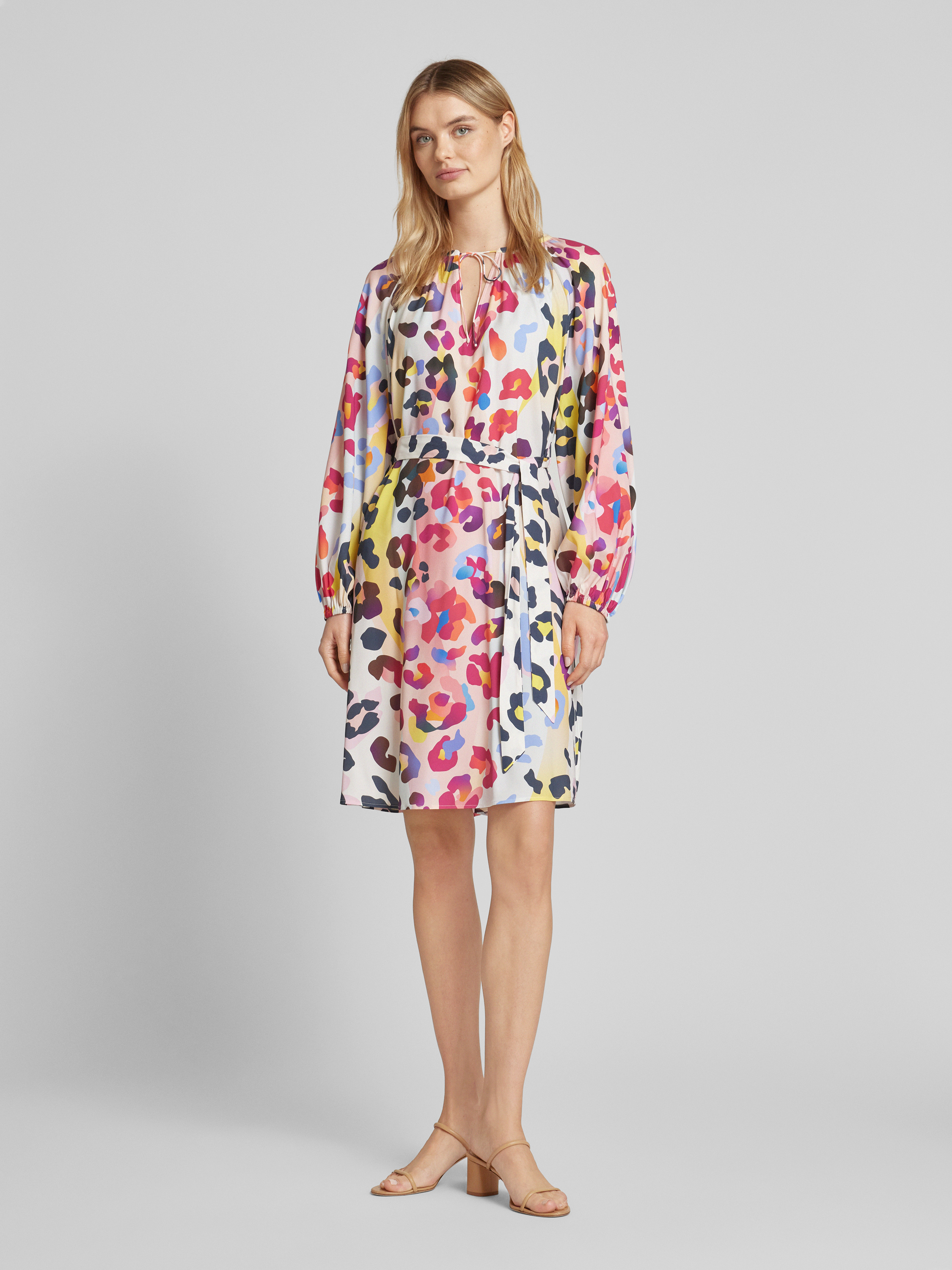 HerzensangelegenheitKnielange zijden jurk met druppelvormige hals in fuchsia