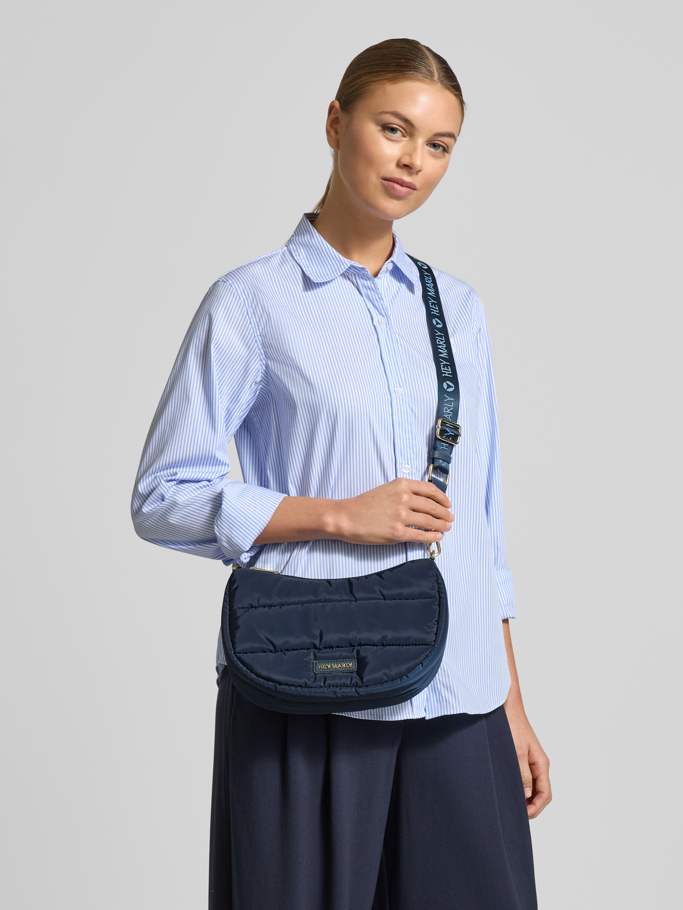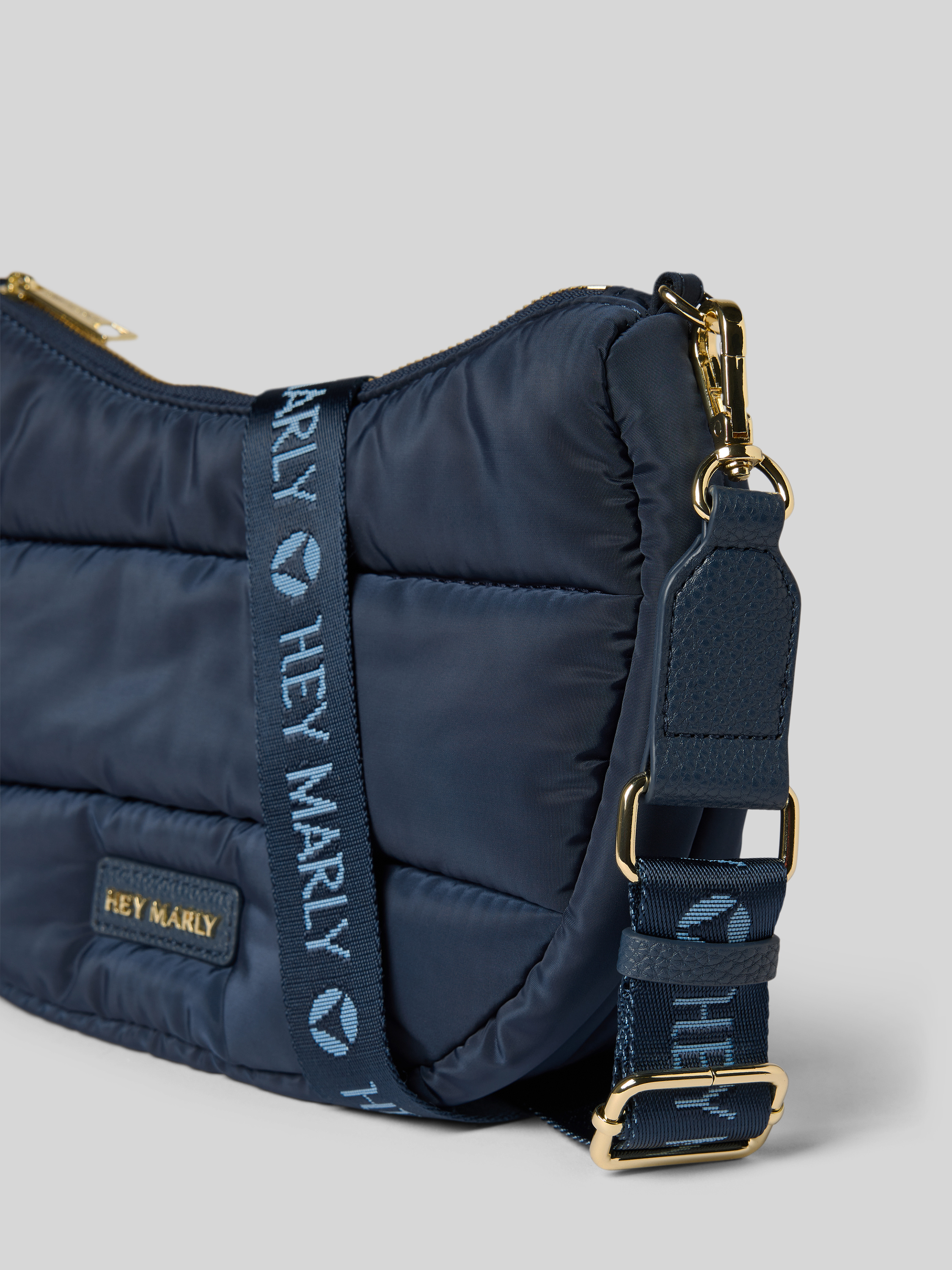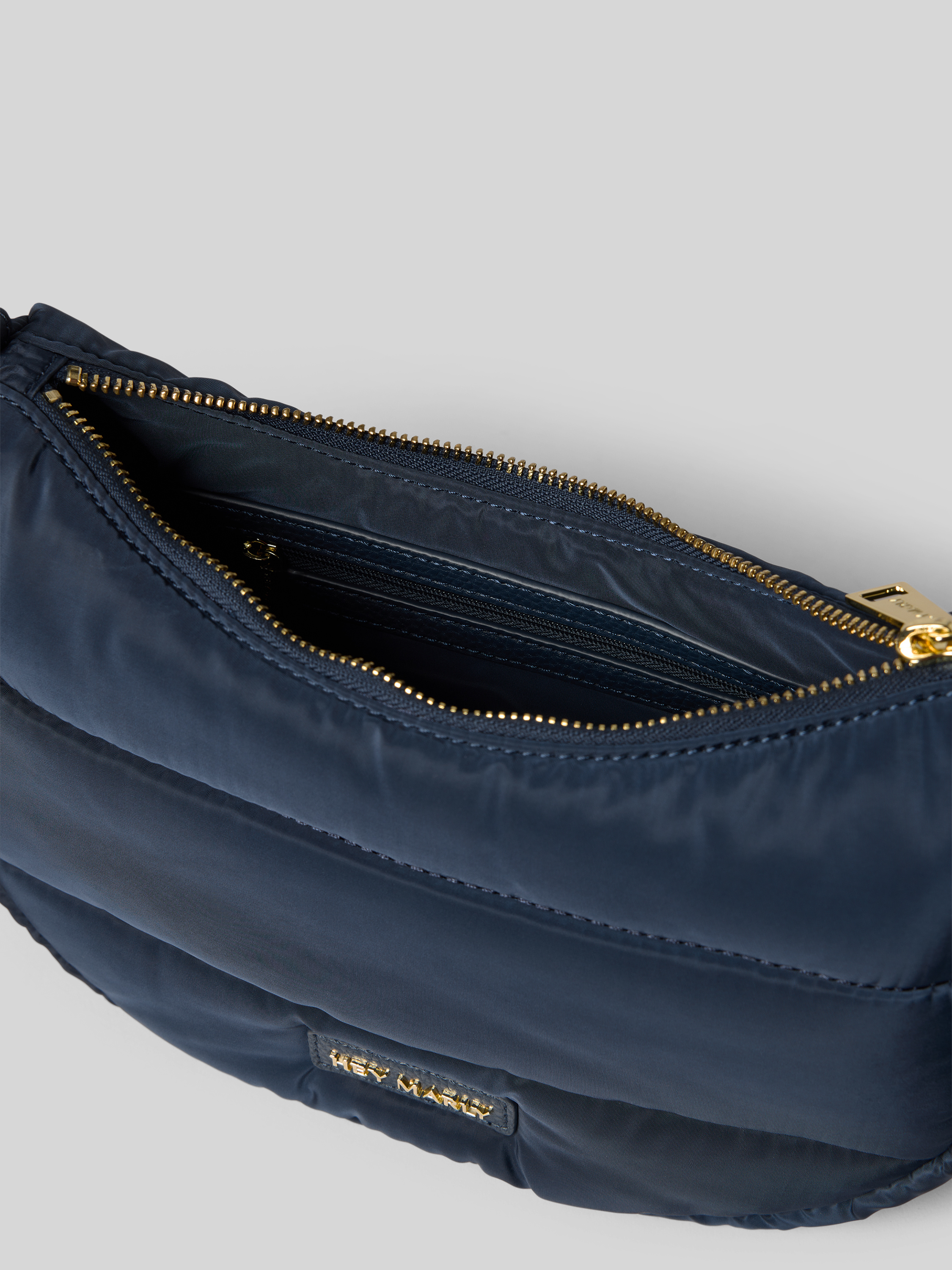 Handtas met doorgestikte naden en labeldetail in donkerblauw