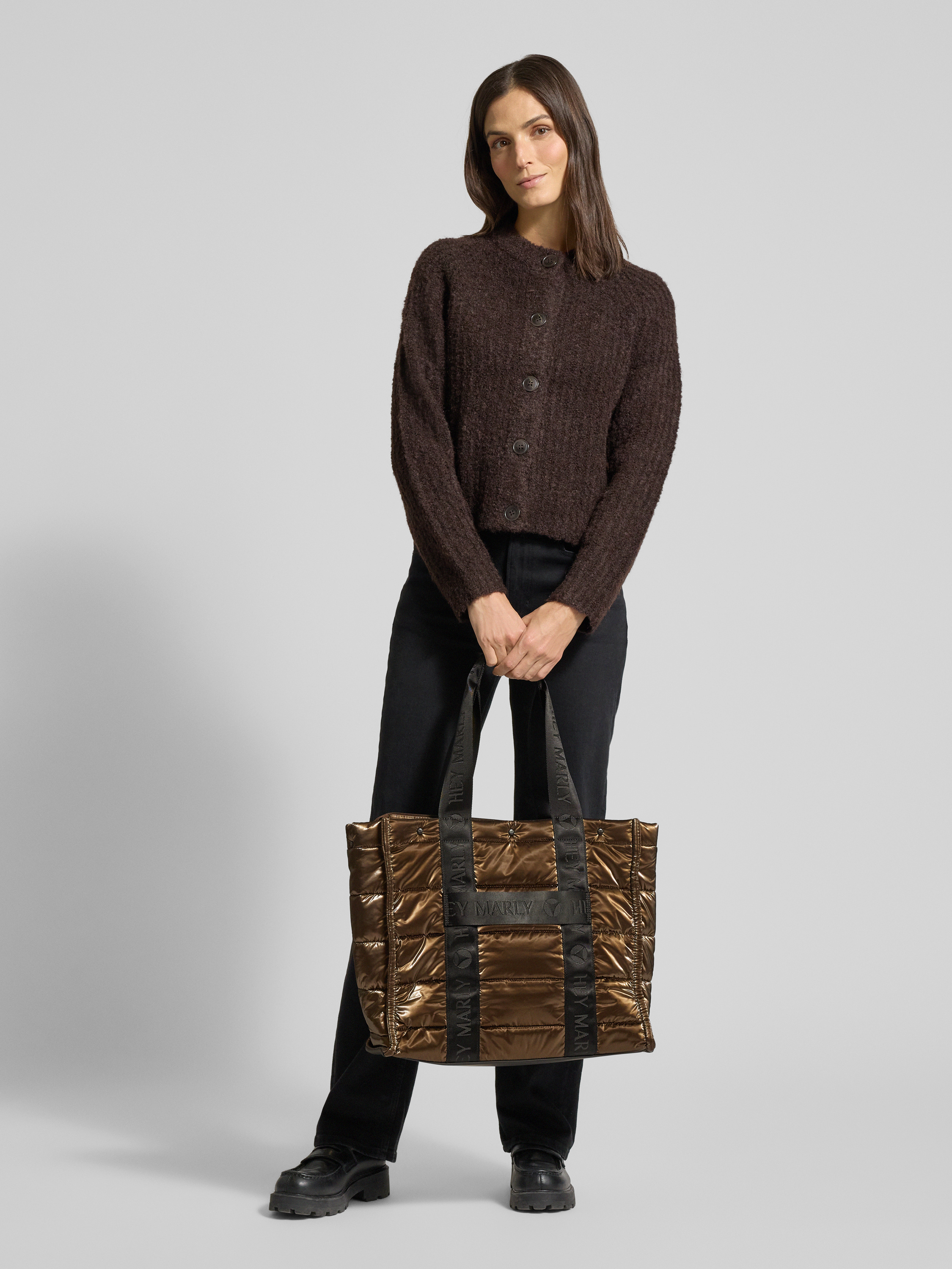 Shopper met doorgestikte naden, model 'Best Buddy' in donkerbruin