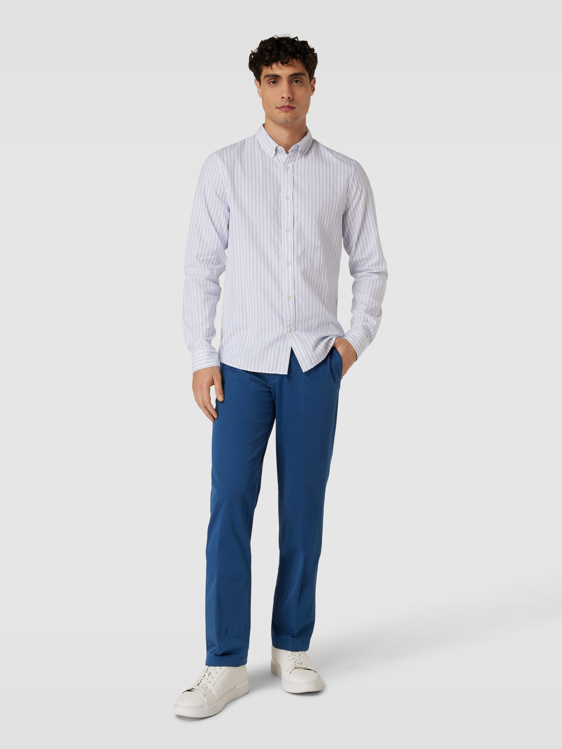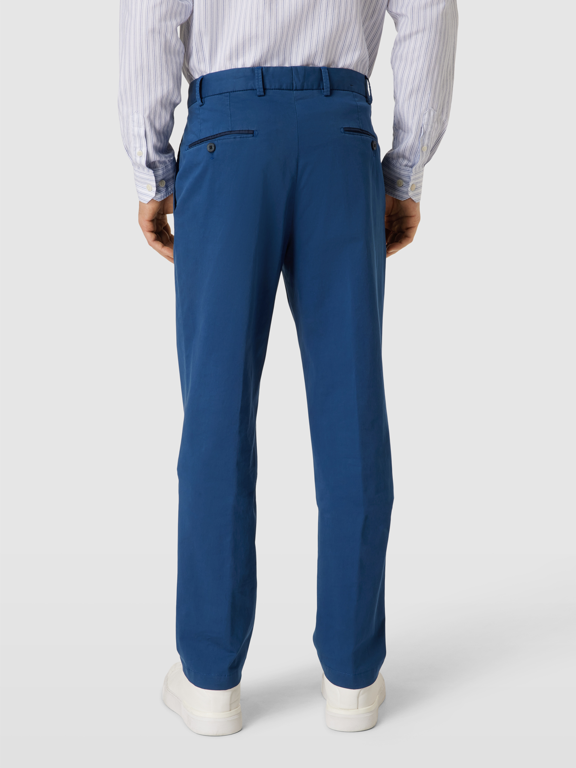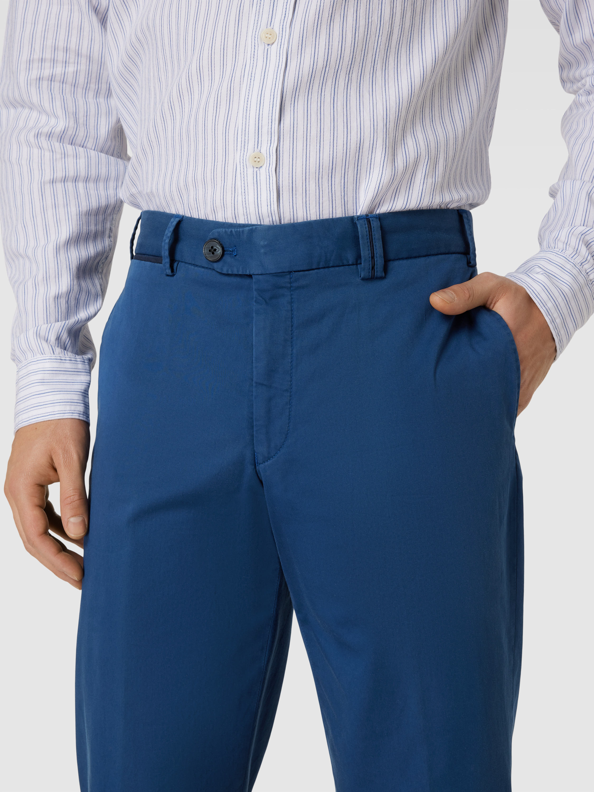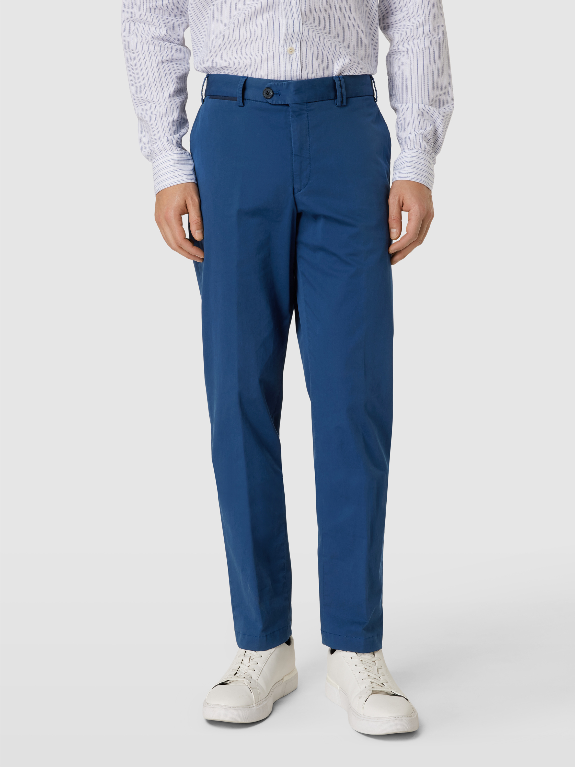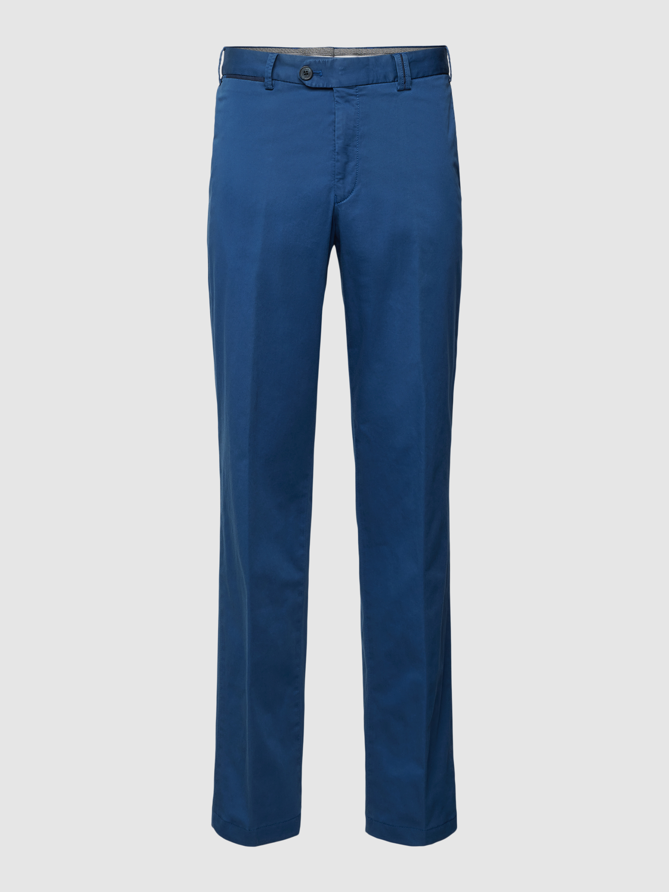 Slim fit broek met persplooien, model 'PEAKER' in blauw