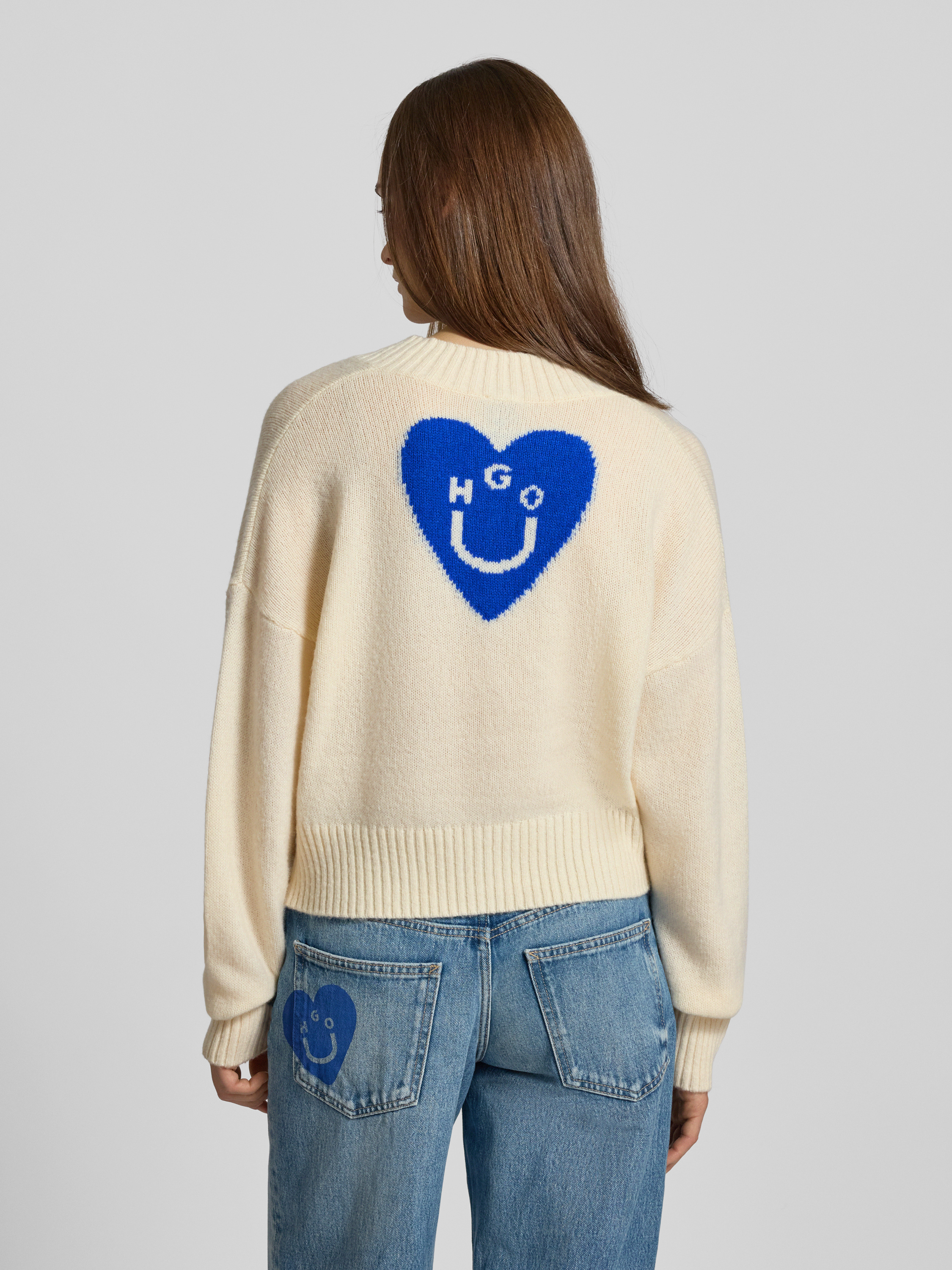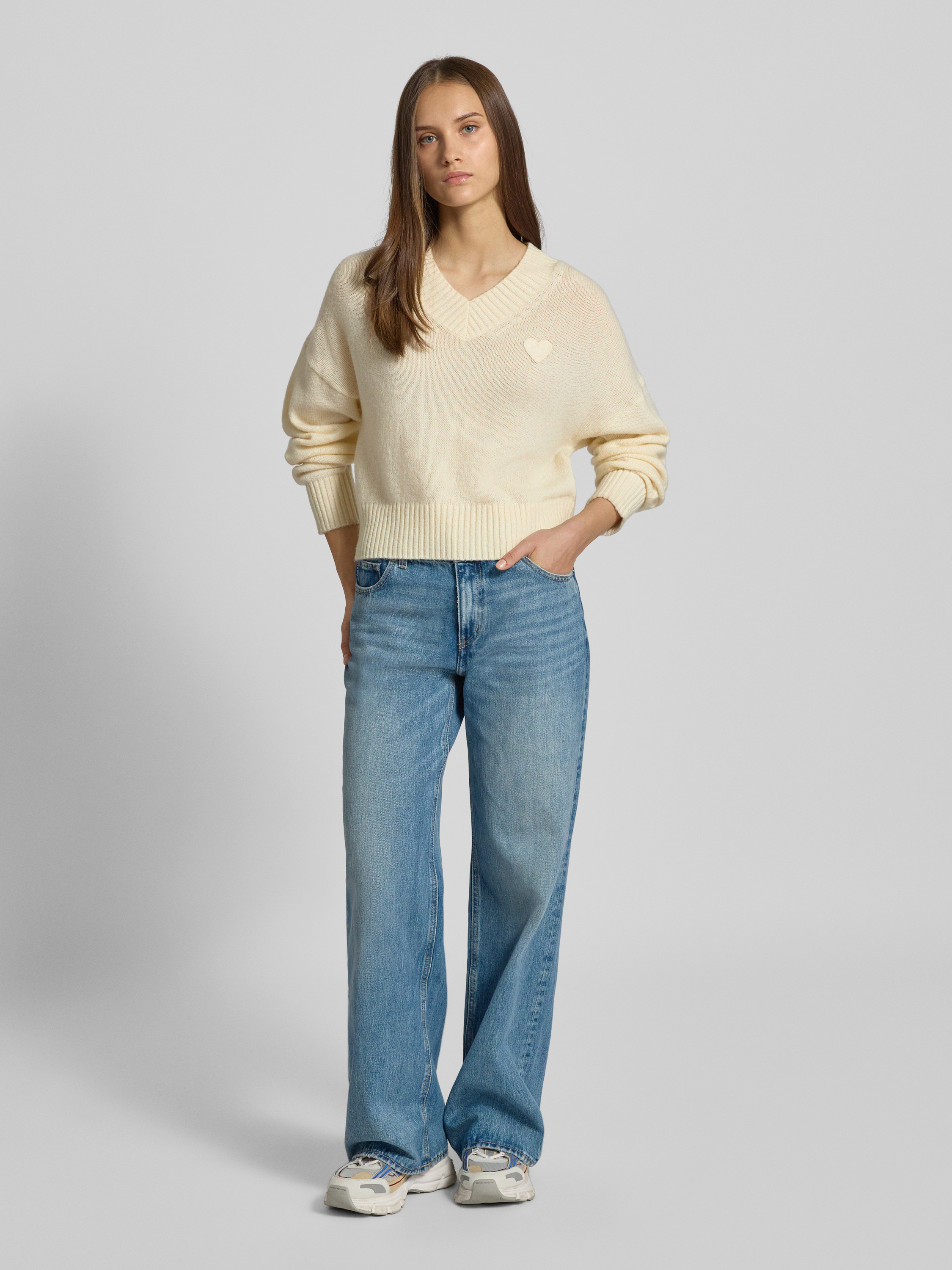 Korte gebreide pullover van scheerwolmix, model 'SCUTIE_B' in ecru