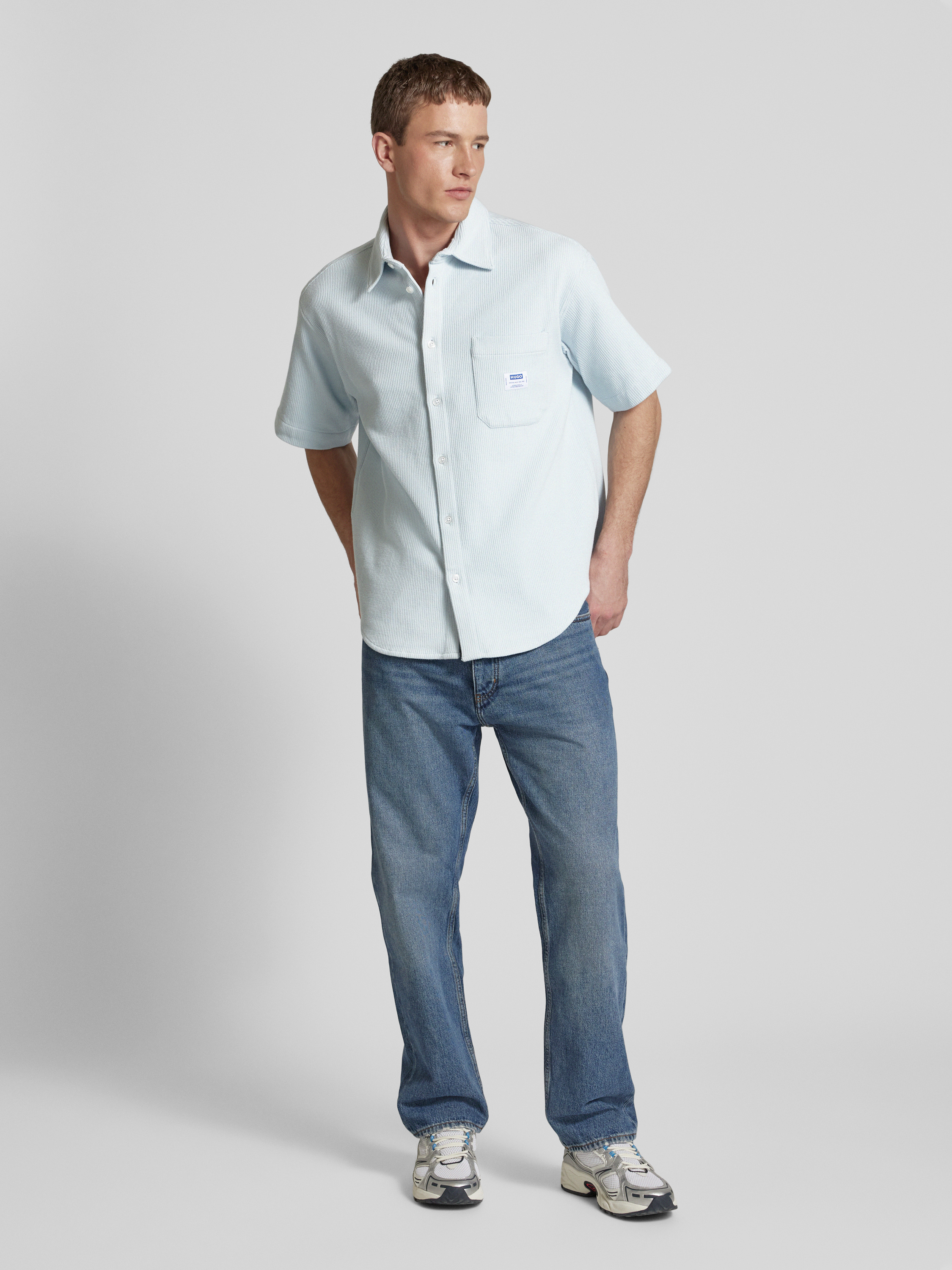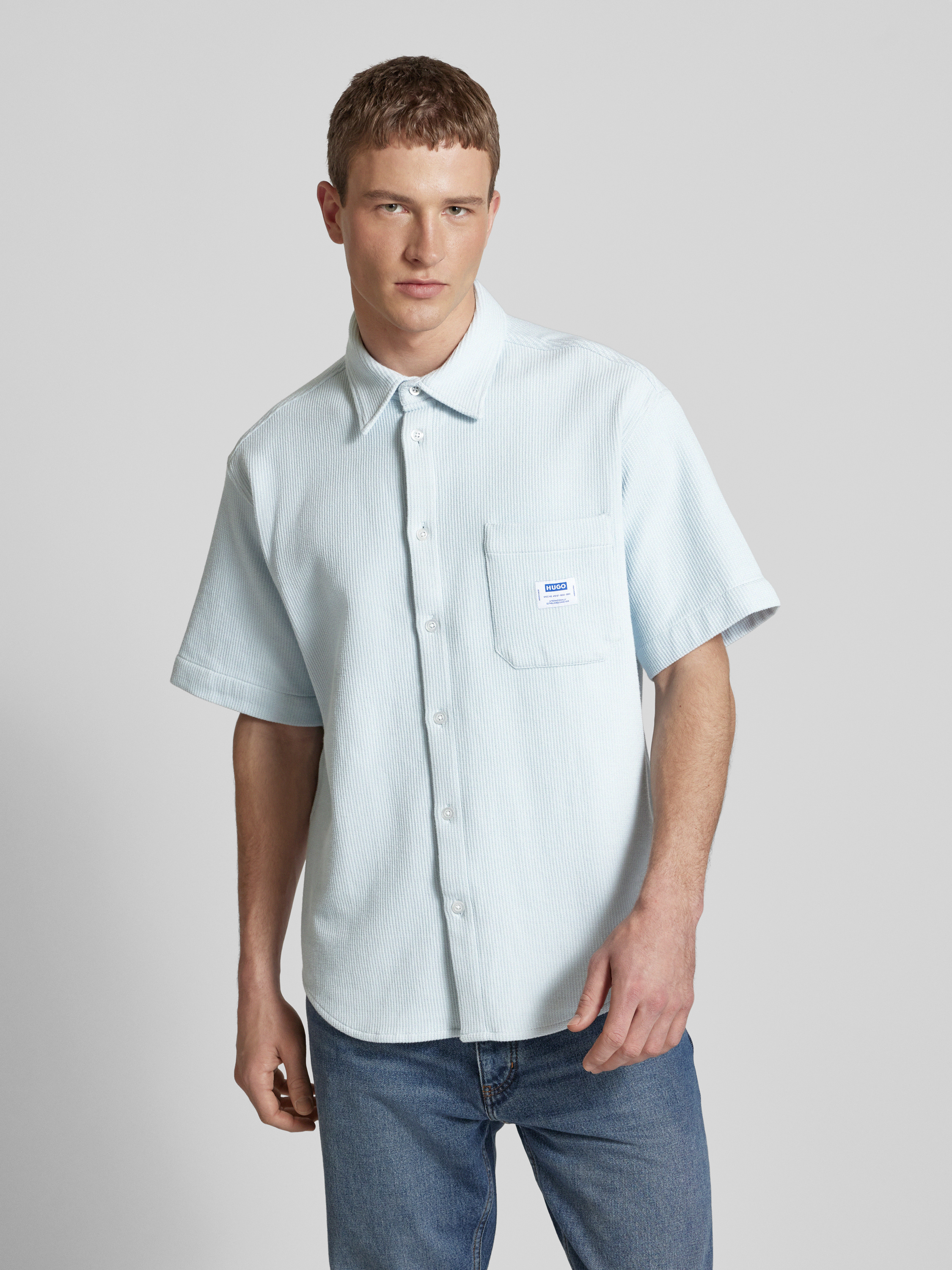 Regular fit vrijetijdsoverhemd met borstzak, model 'Ebronn' in lichtblauw