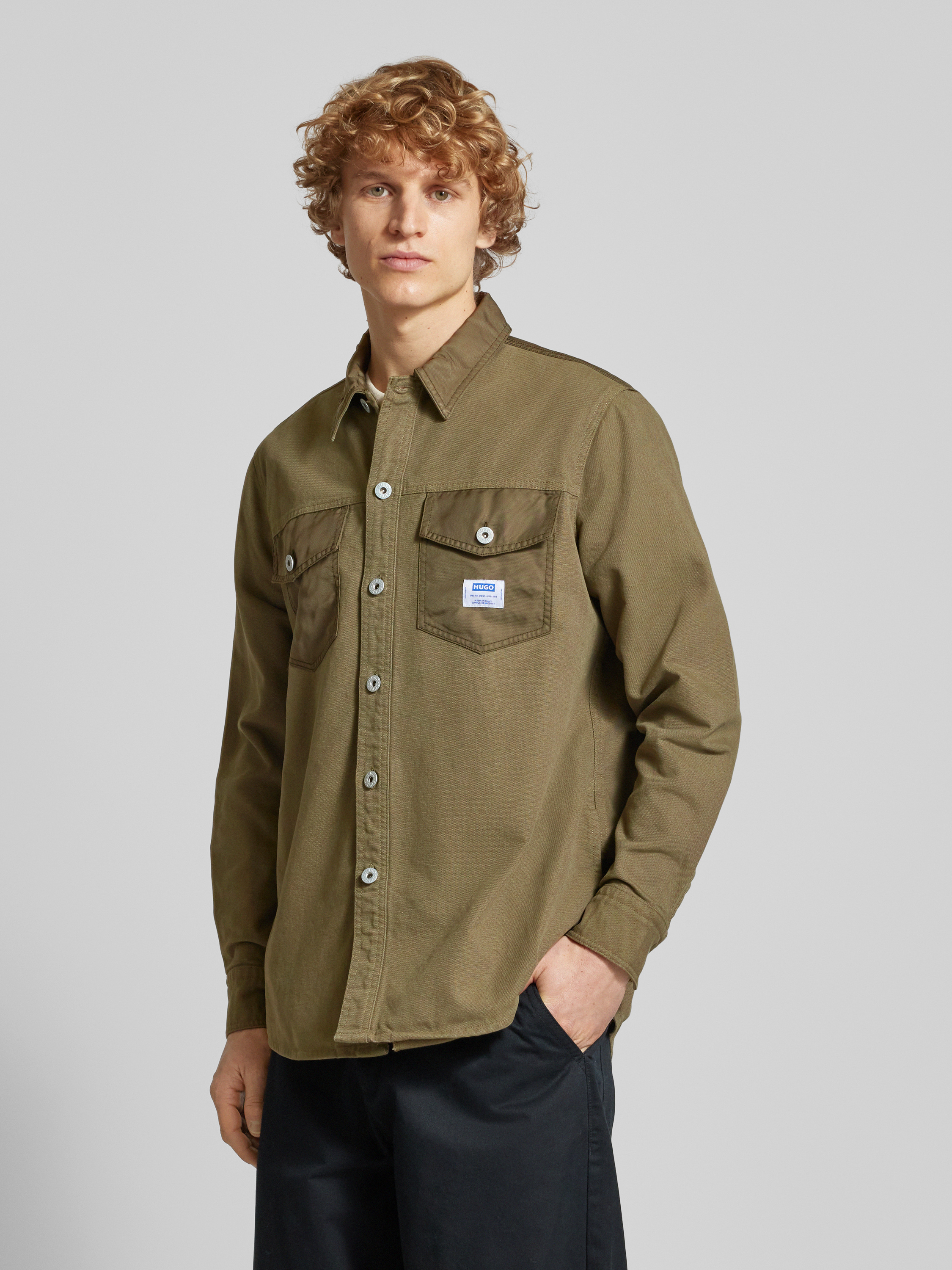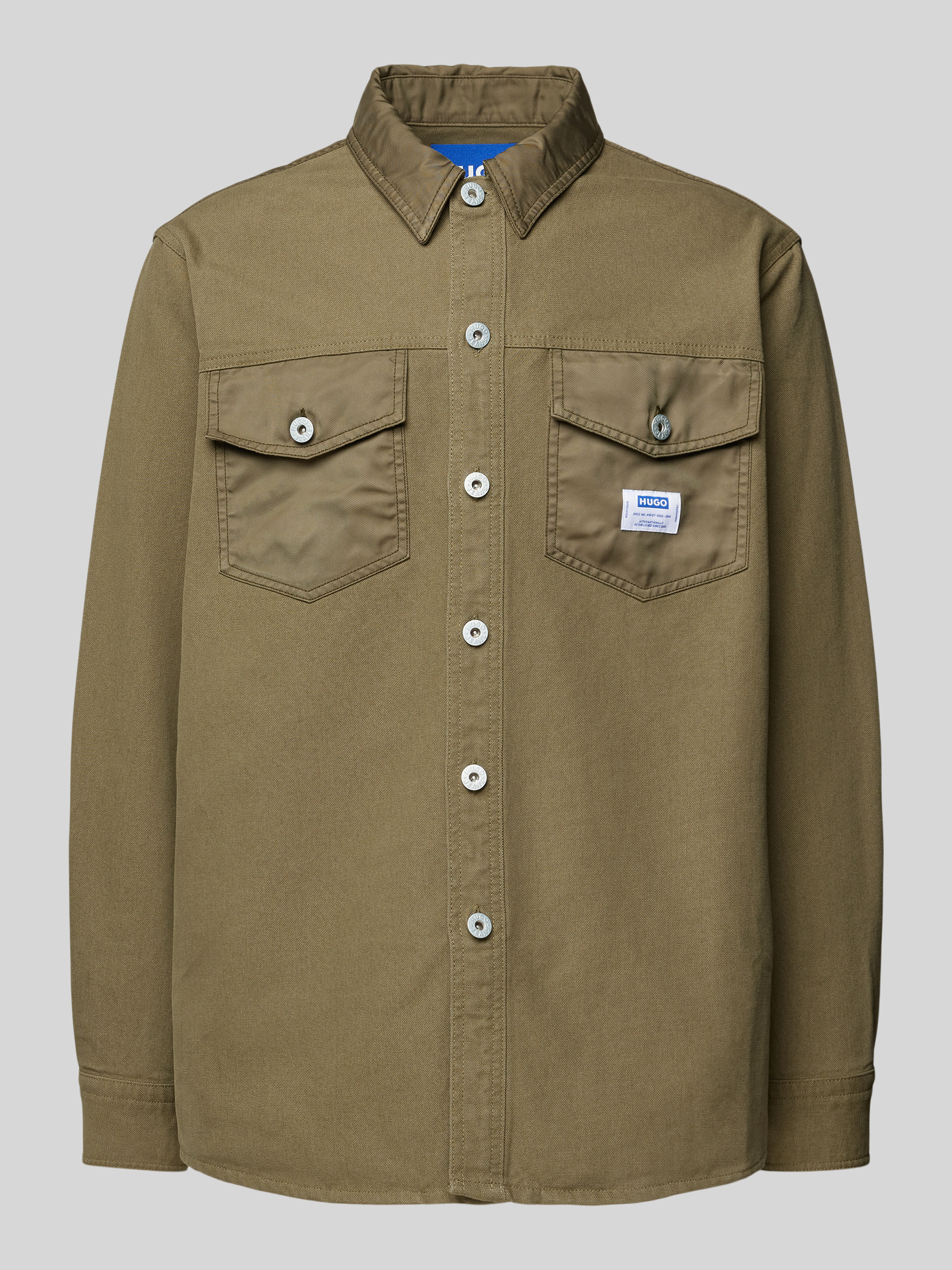 Regular fit vrijetijdsoverhemd met paspelzakken op de borst, model 'Ebrido' in olijfgroen