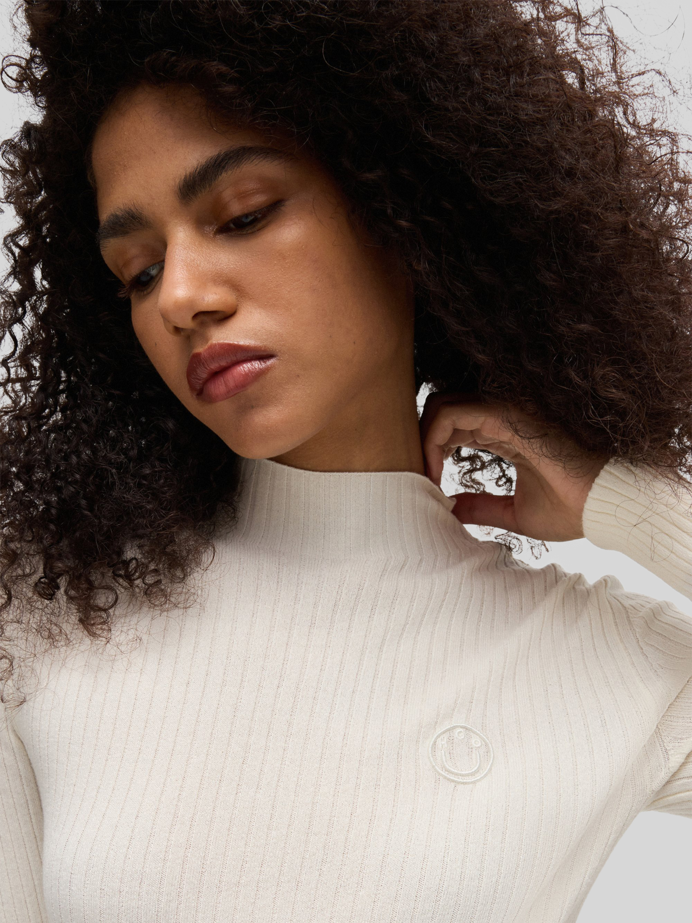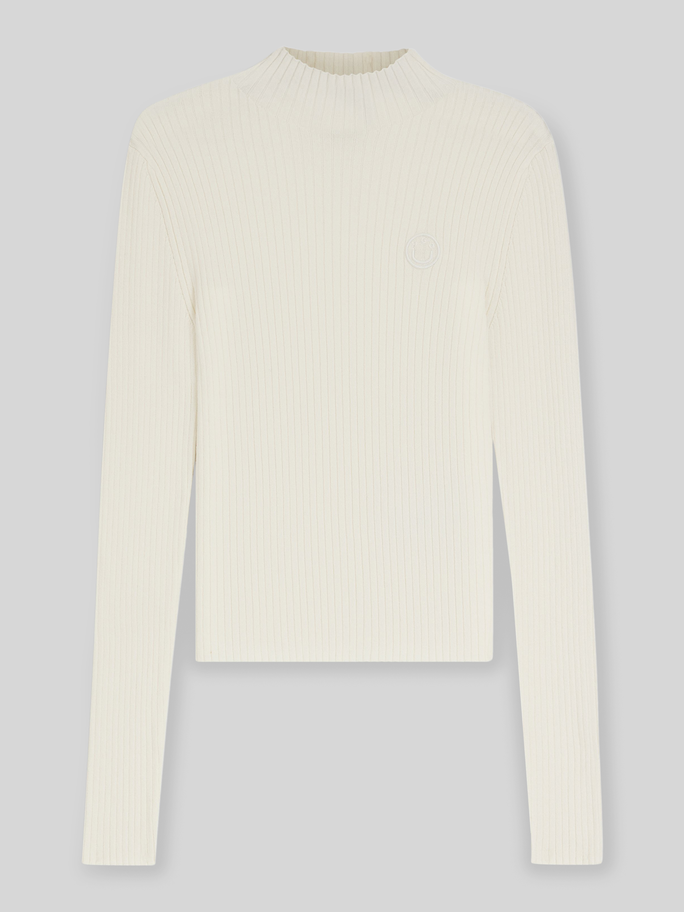 Slim fit gebreide pullover van geribde viscosemix, model 'SARMIE_B' in wit