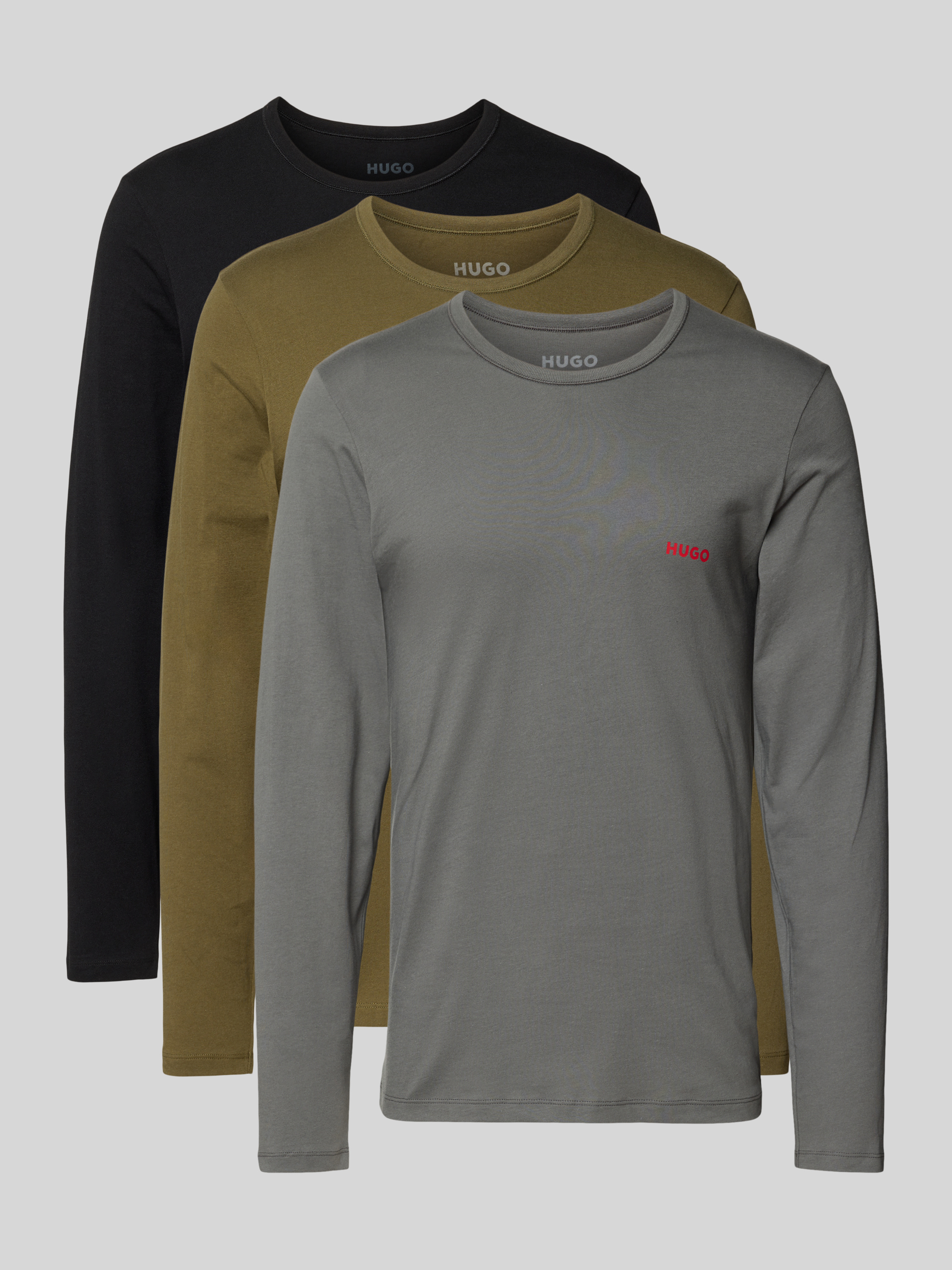 Regular fit shirt met lange mouwen van puur katoen in een set van 3 stuks in olijfgroen