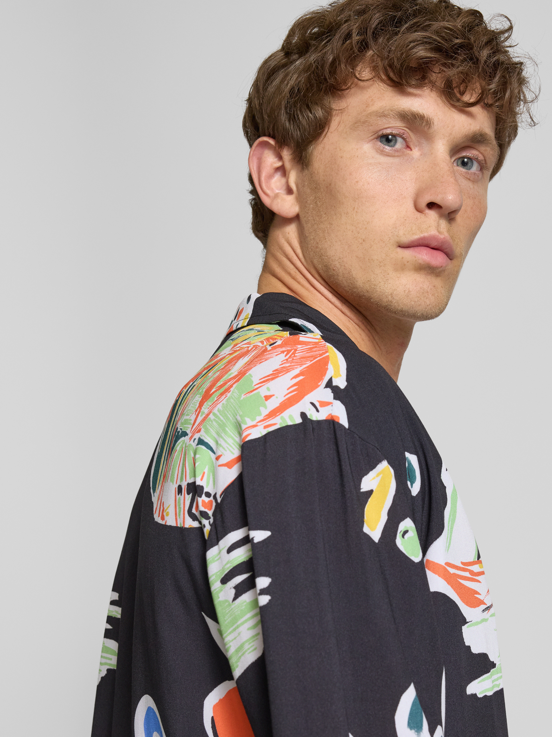 Relaxed fit vrijetijdsoverhemd met 1/2-mouwen in zwart