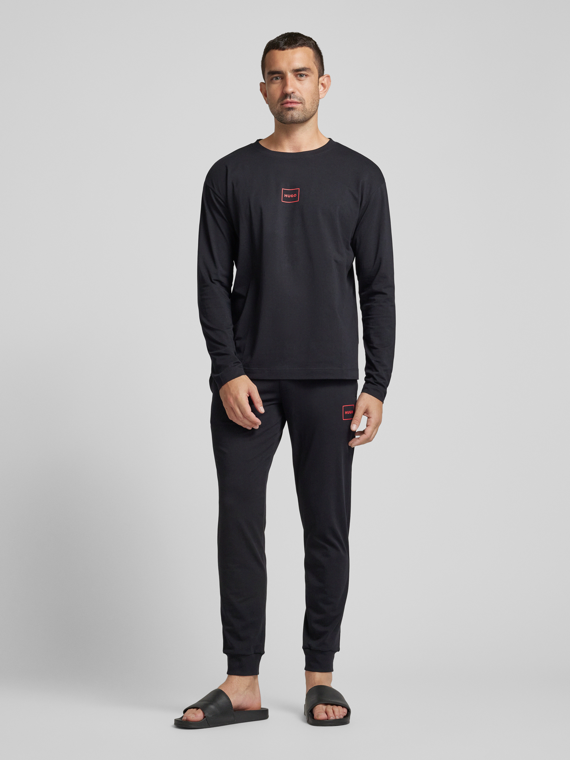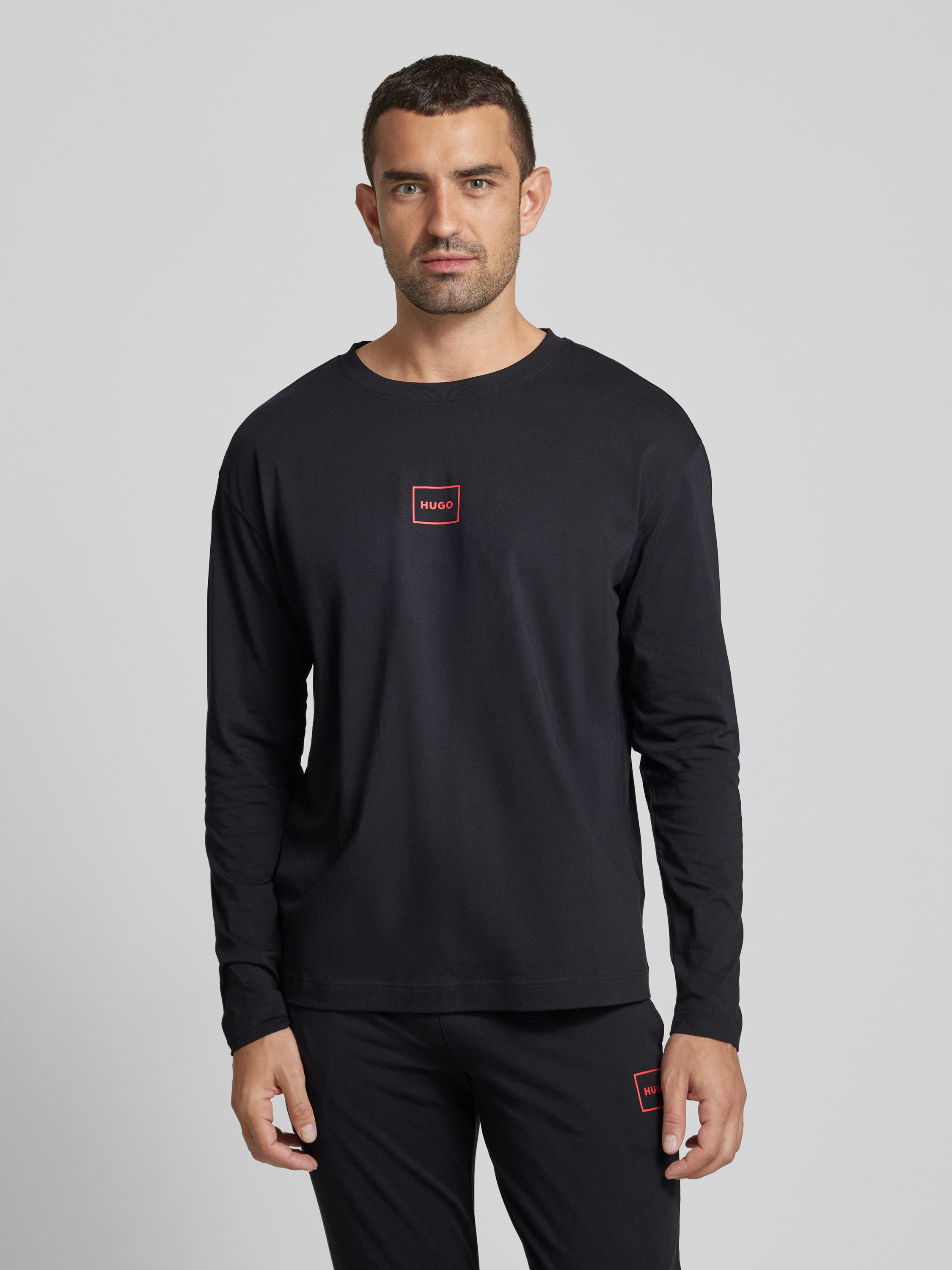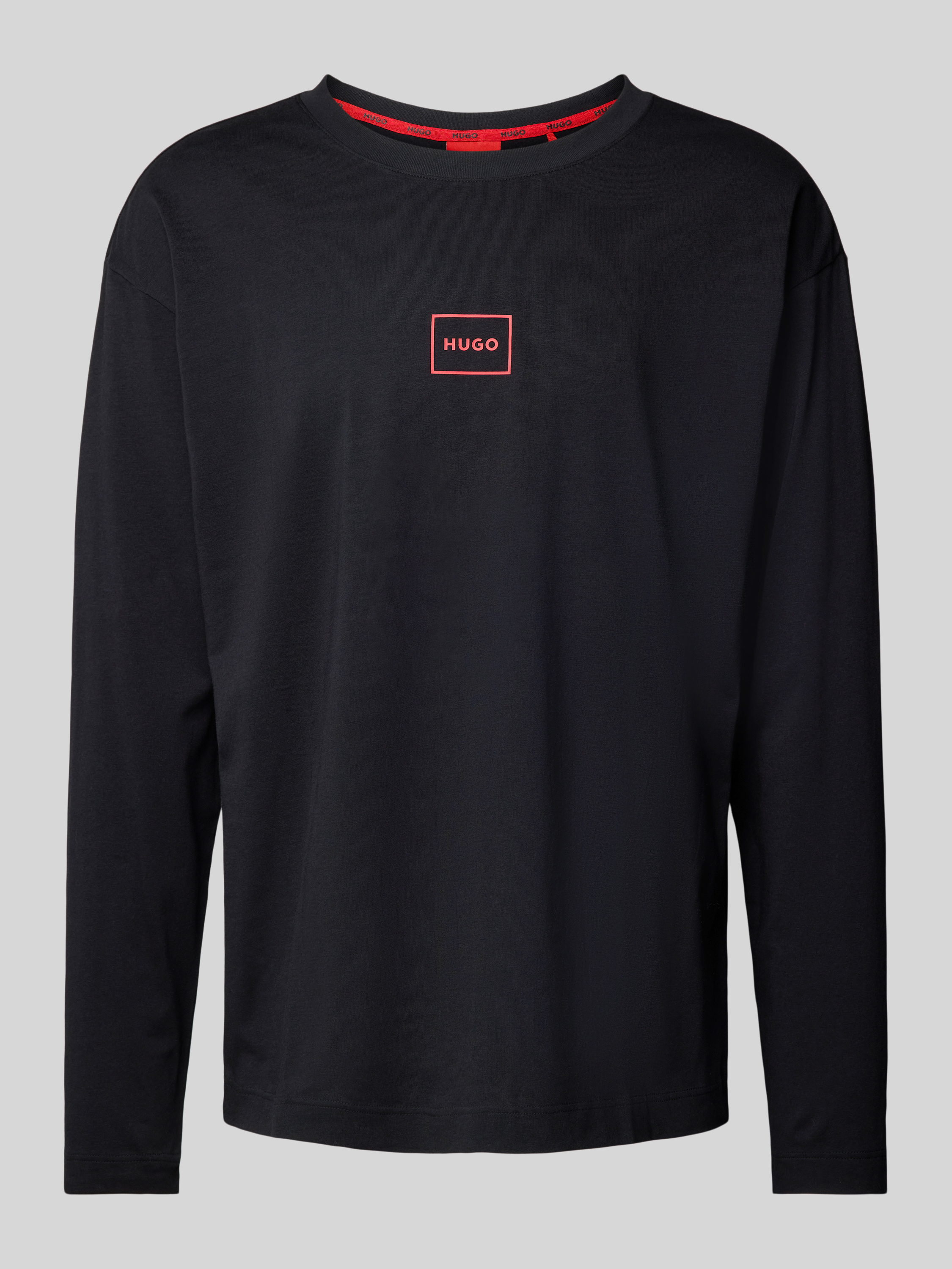 Shirt met lange mouwen en labelprint, model 'Laze' in zwart