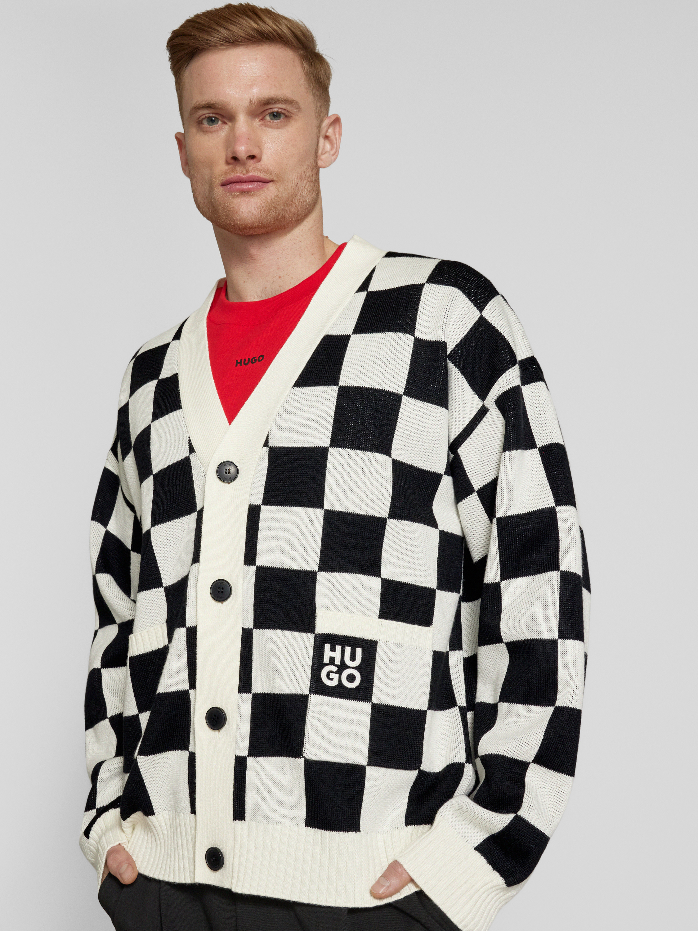 HUGOGebreid jack met labelstitching, model 'Skeeches' in kit