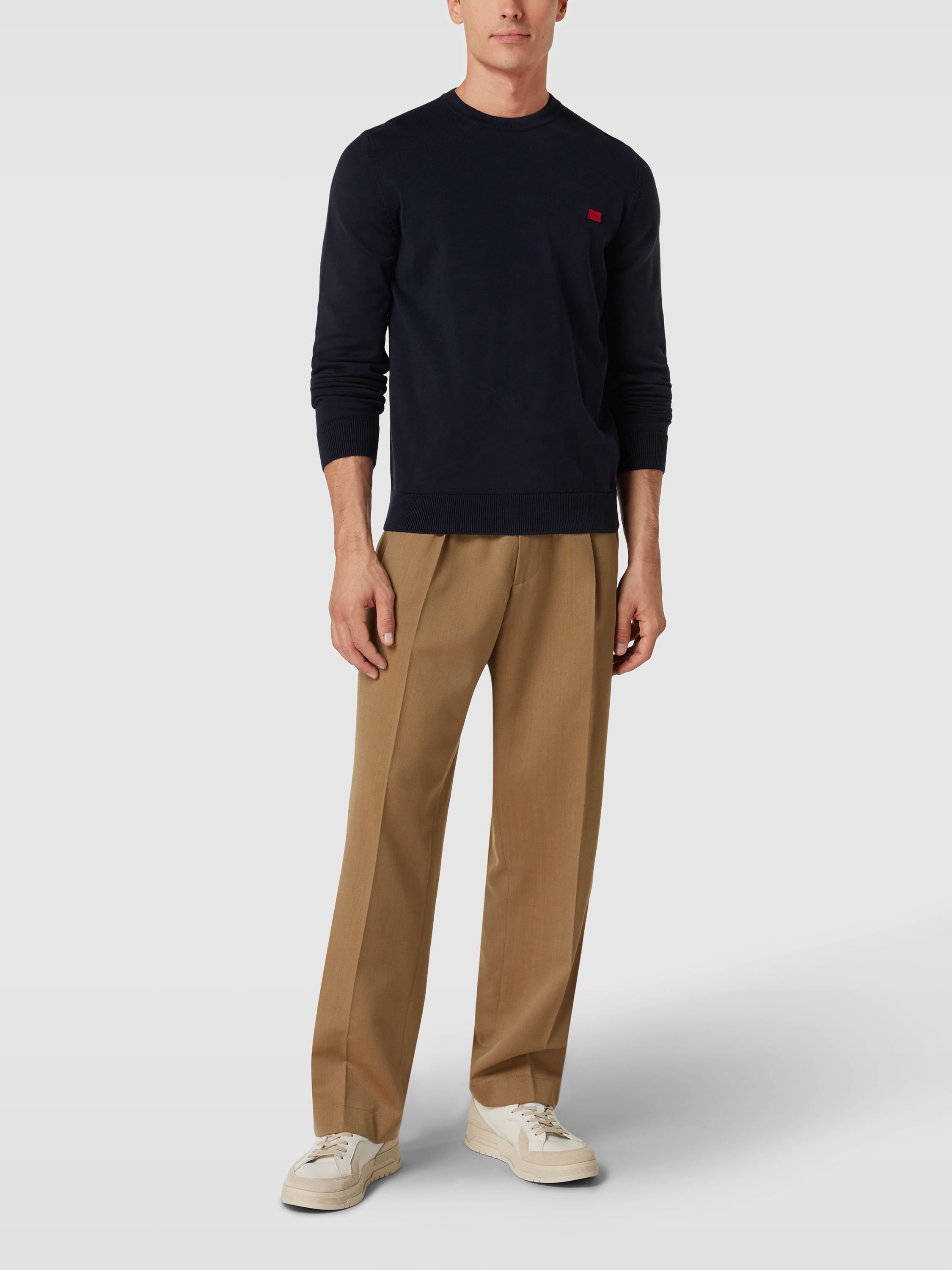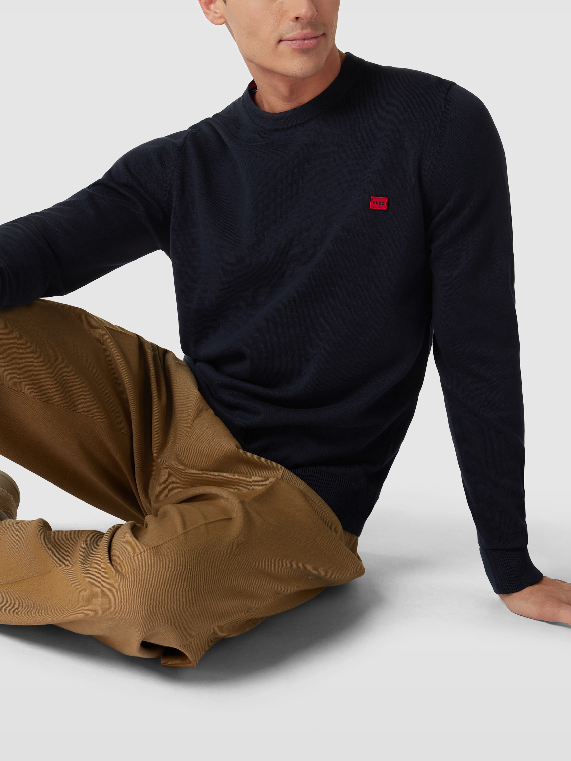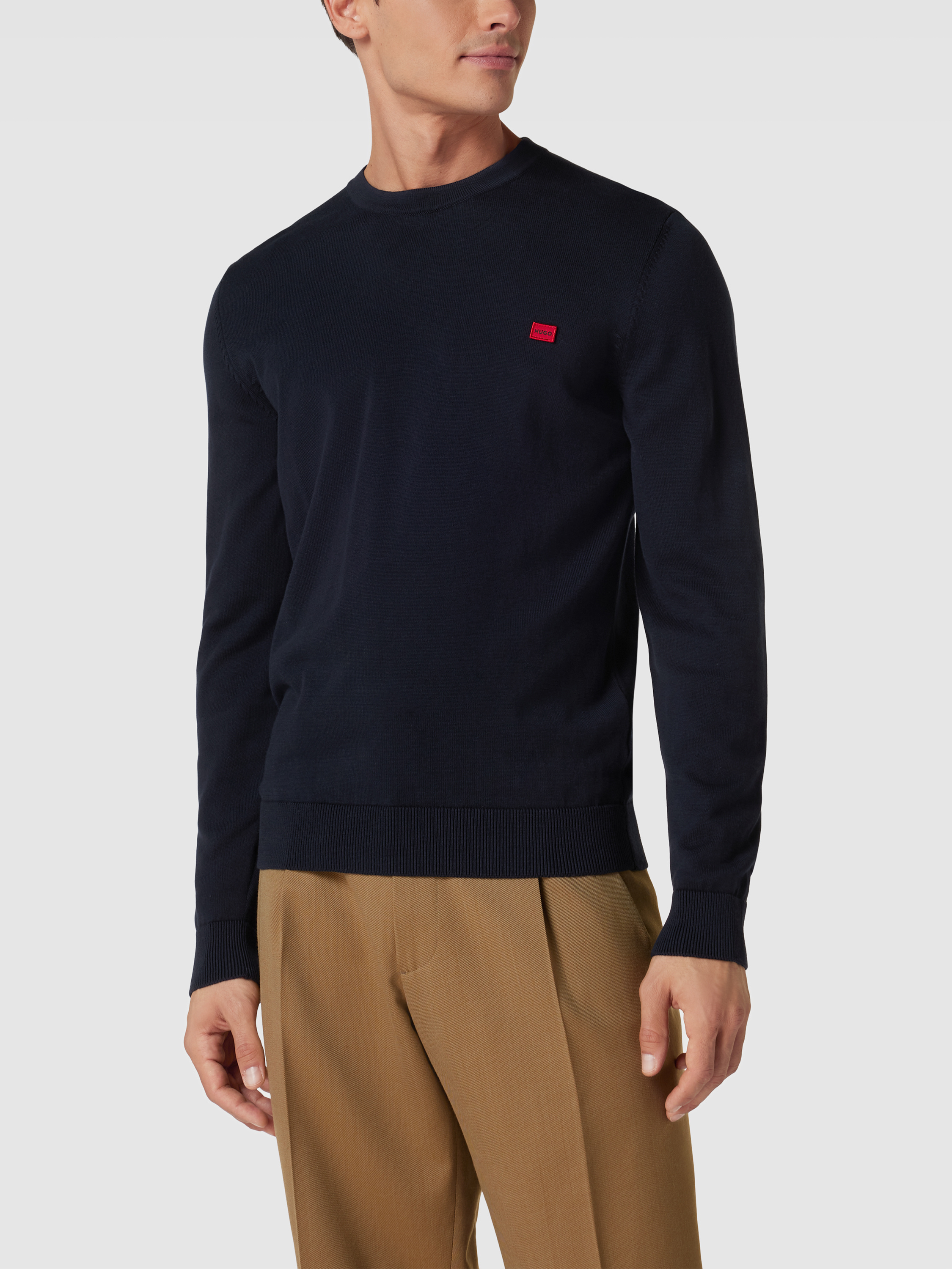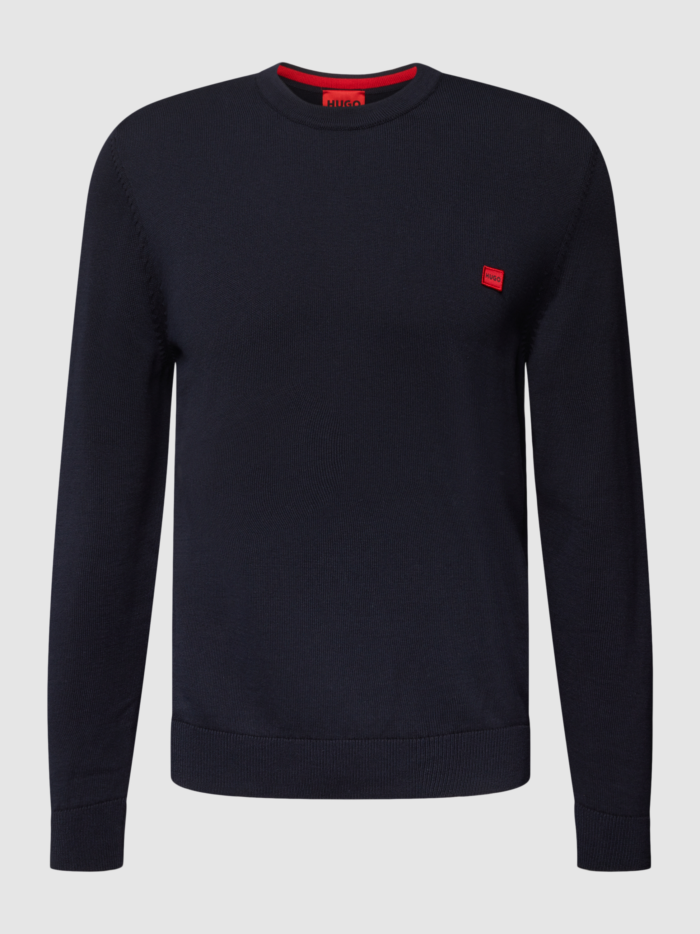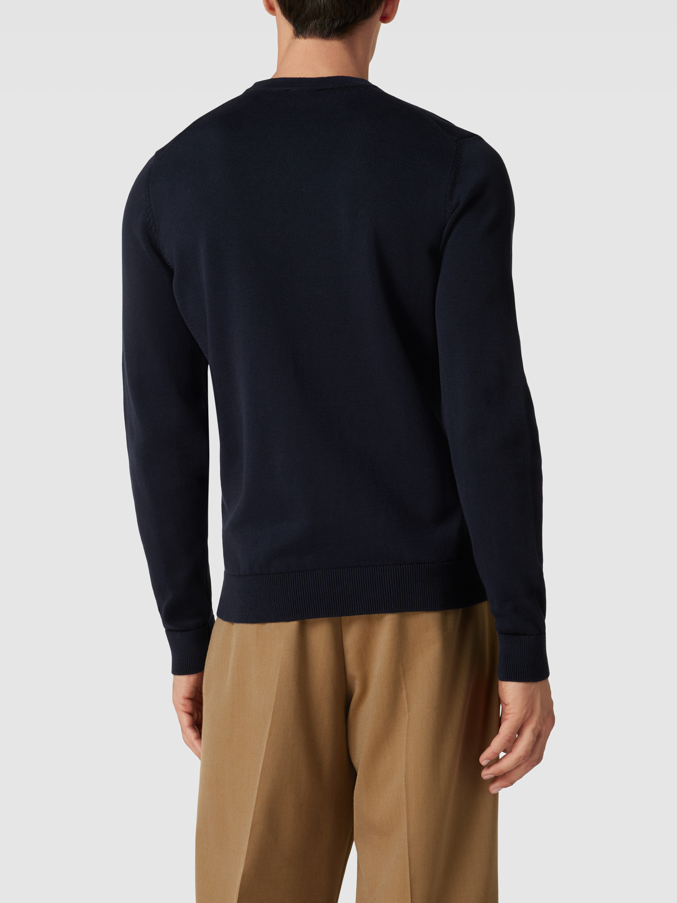 Gebreide pullover met labelstitching, model 'Cassius' in marineblauw