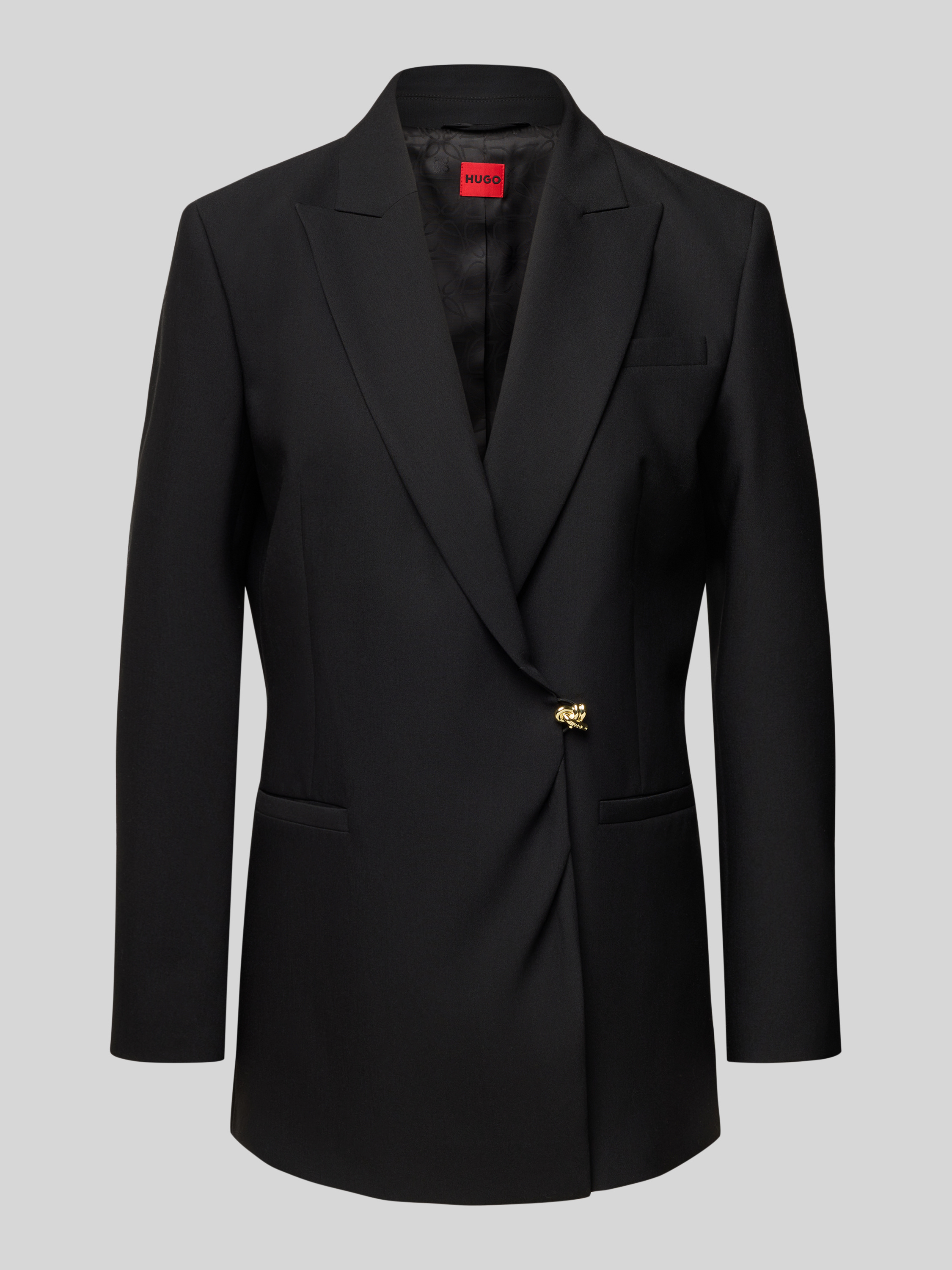 HUGOGetailleerde lange blazer met wikkellook, model 'AMEANE' in zwart