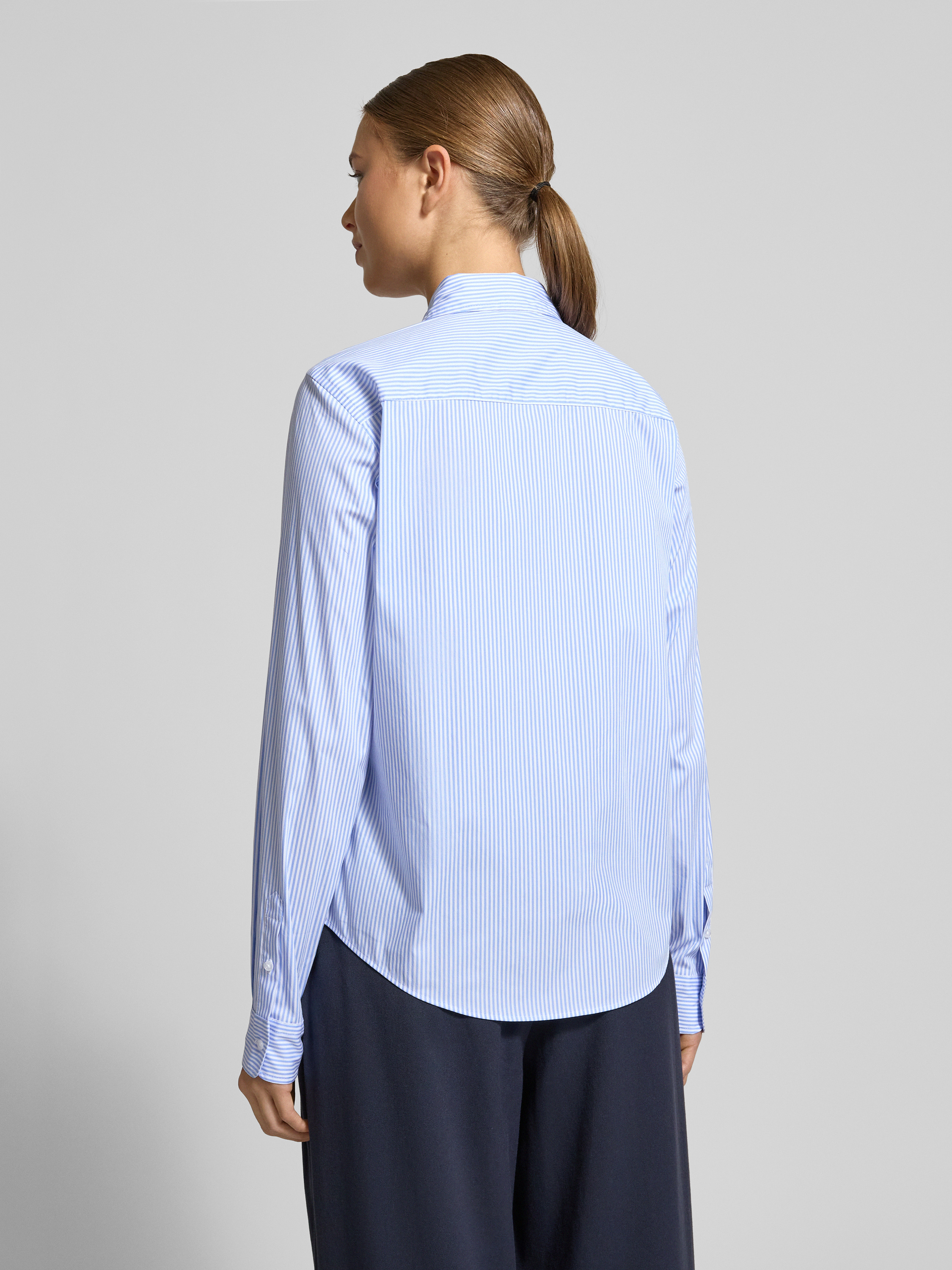 Getailleerde overhemdblouse van katoenmix, model 'THE ESSENTIAL SHIRT' in lichtblauw