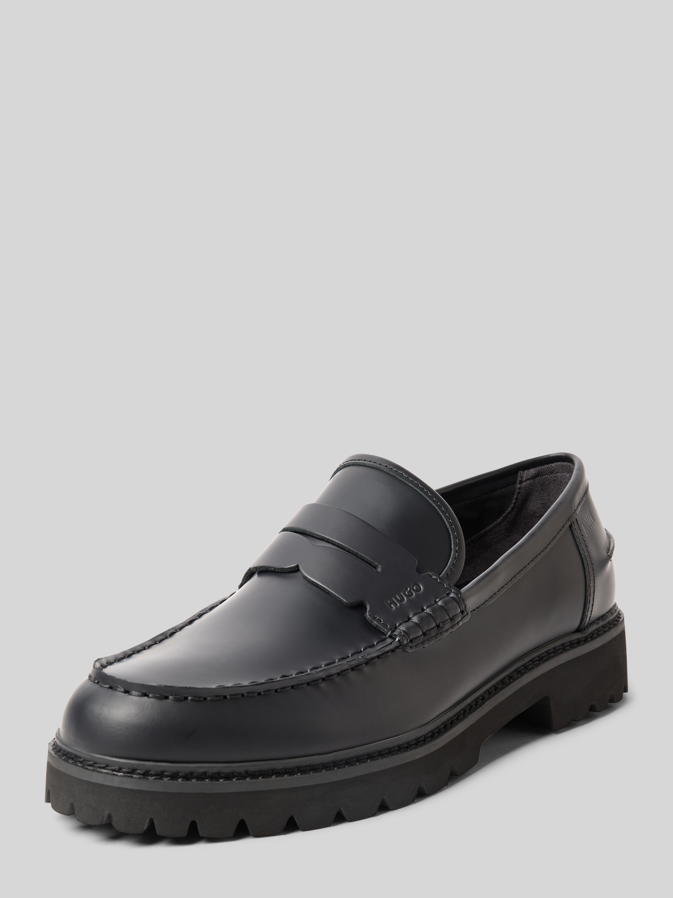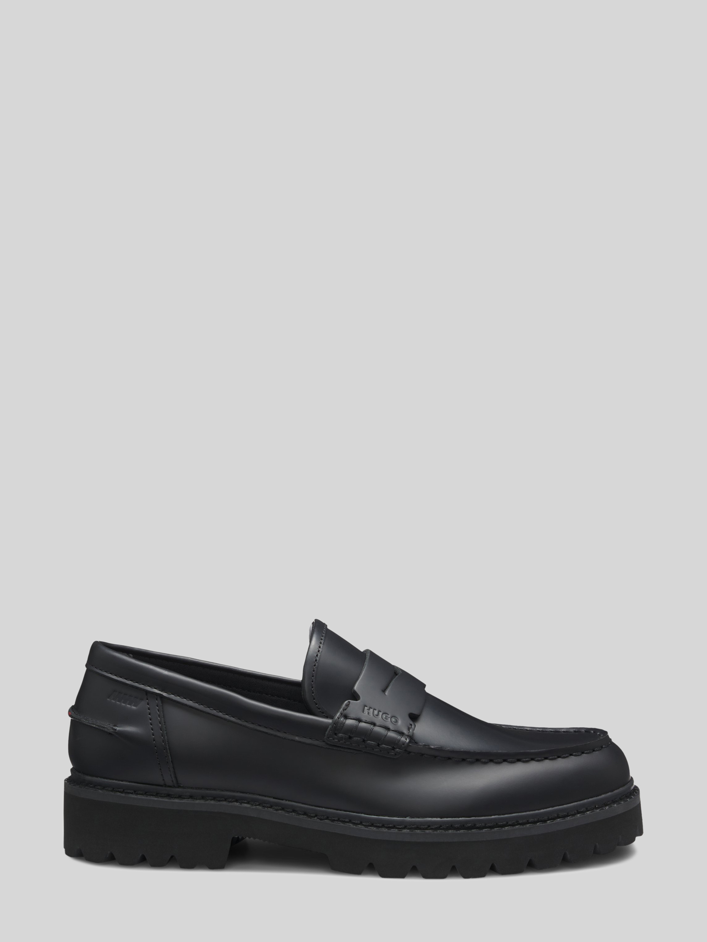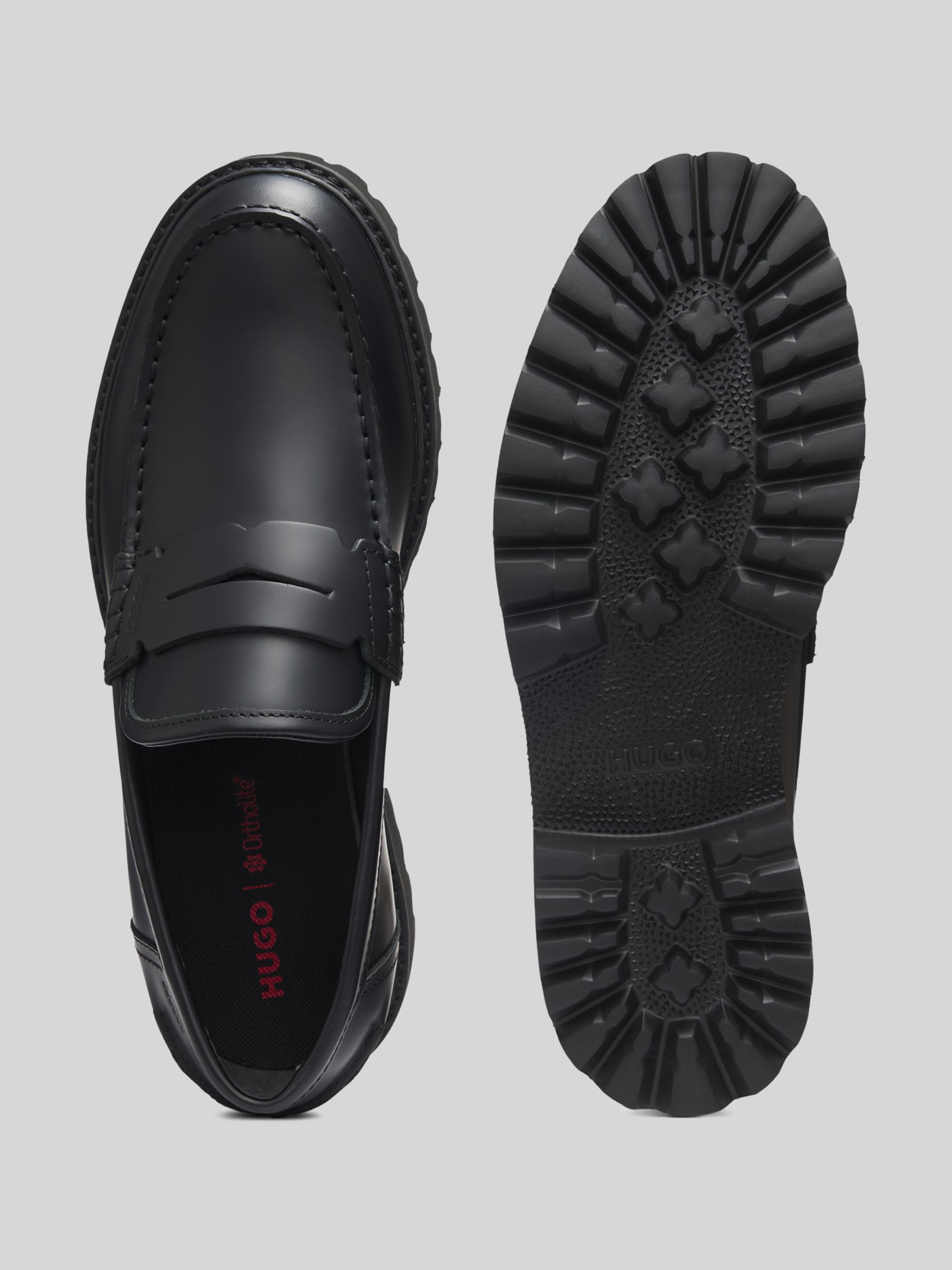 Instappers van echt runderleer, model 'DRAVEN'' in zwart