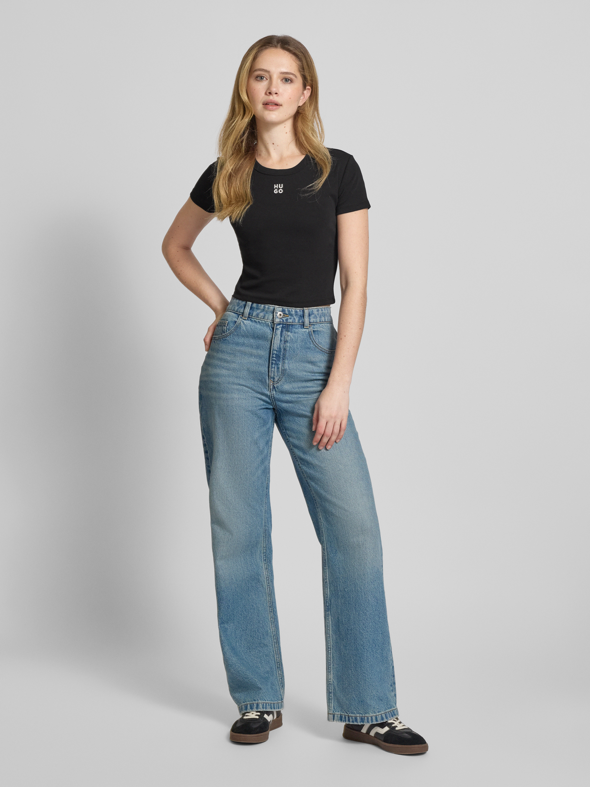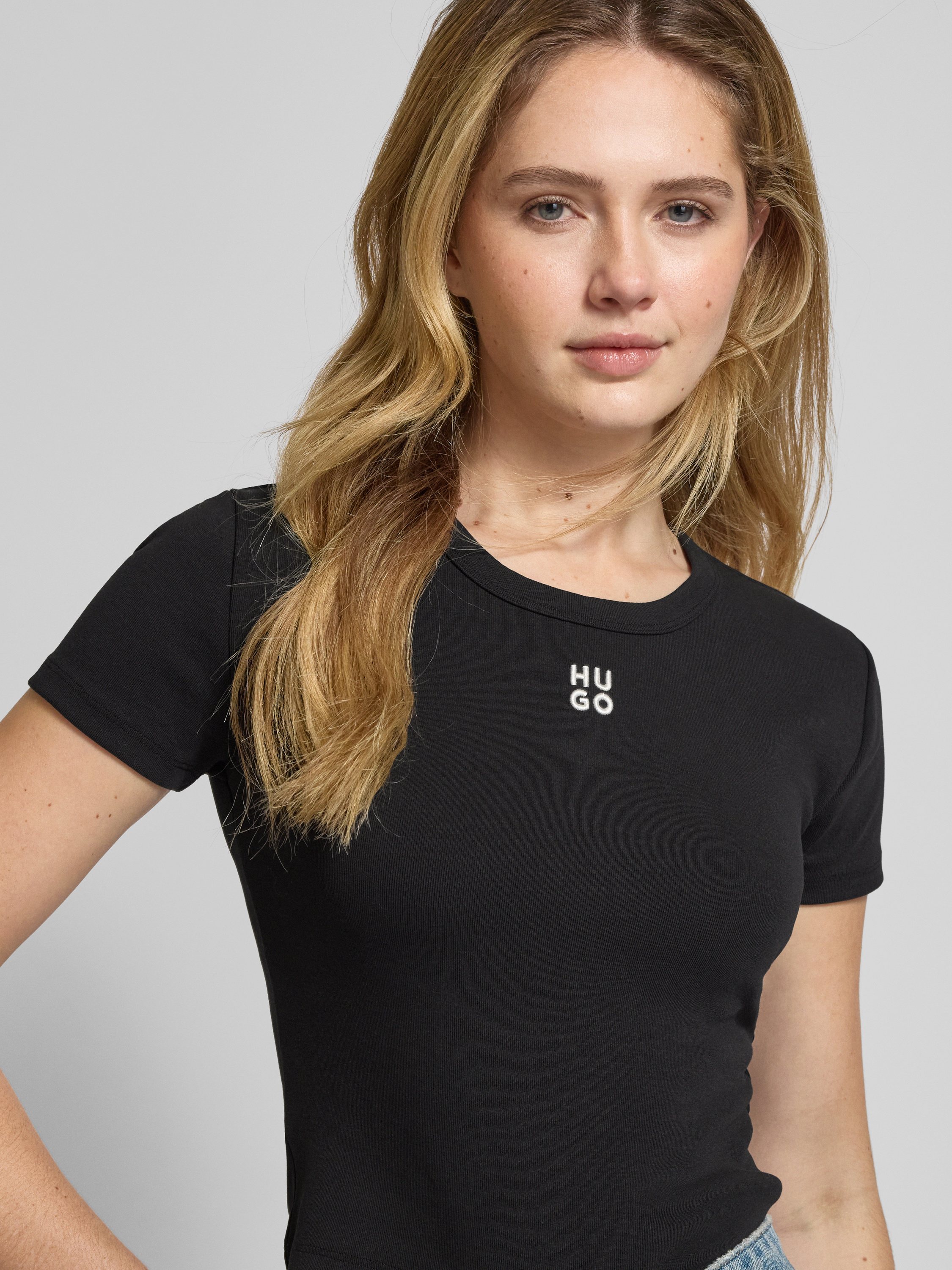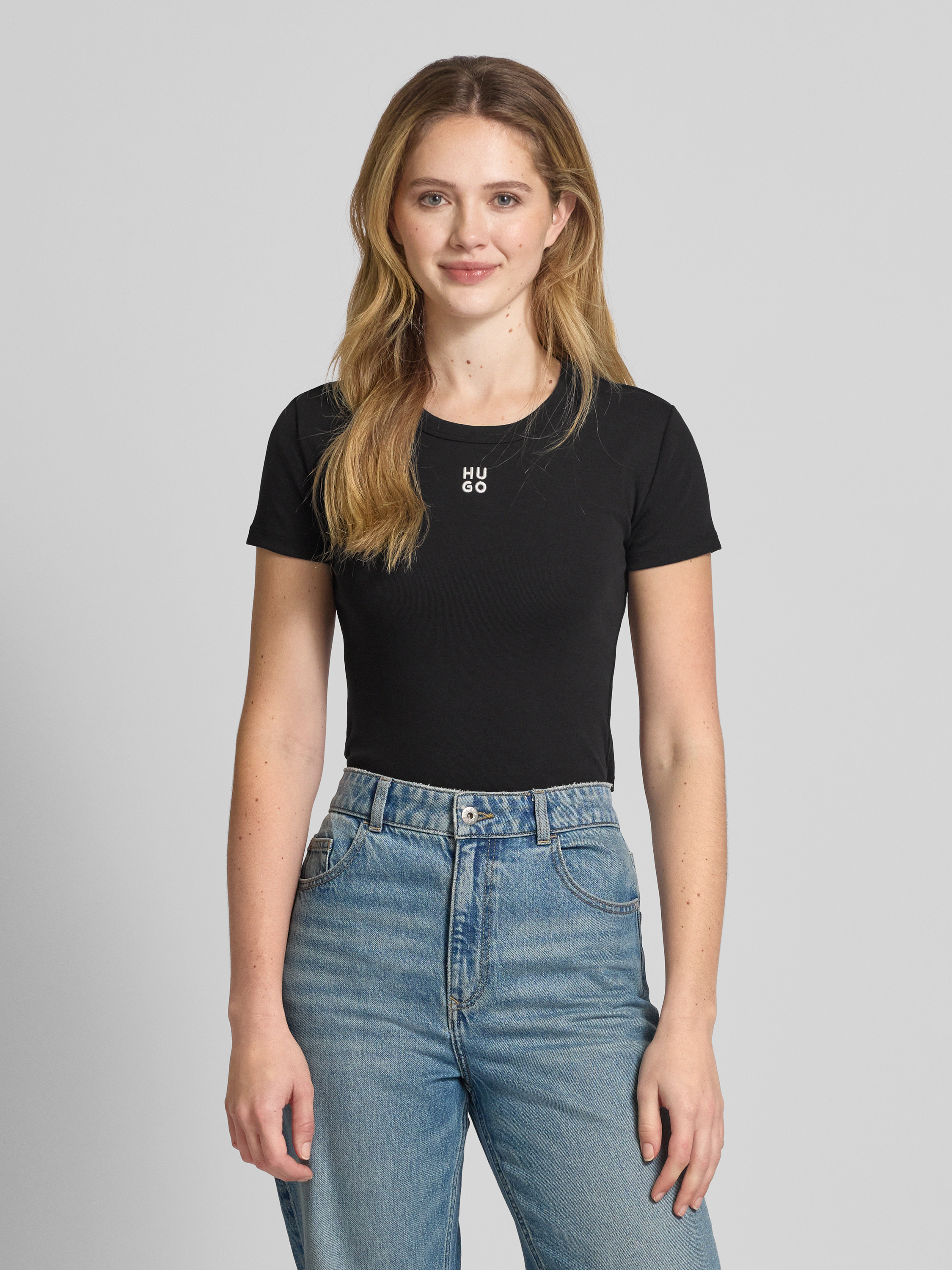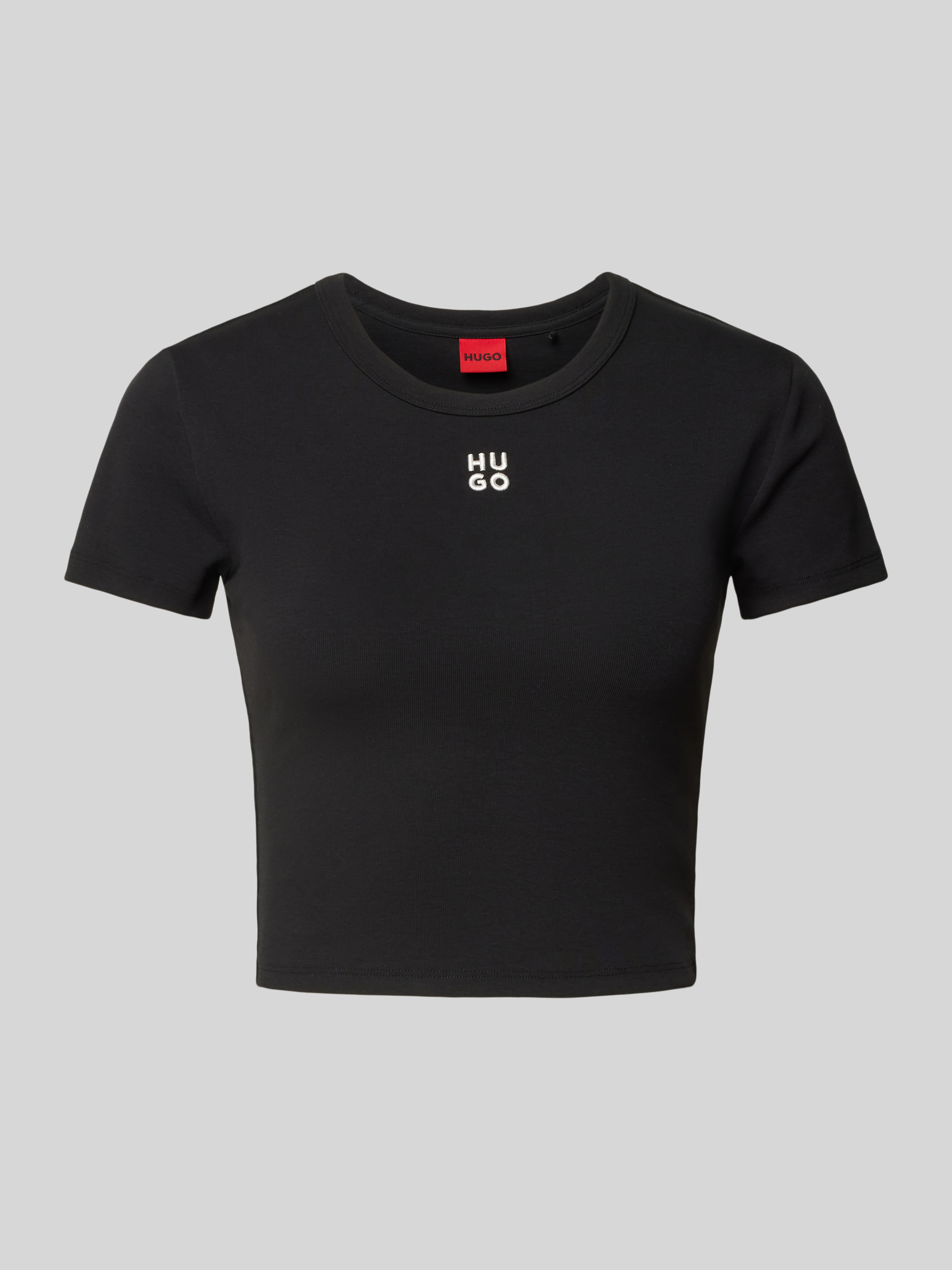HUGOKort T-shirt met labelstitching, model 'Delanor' in zwart