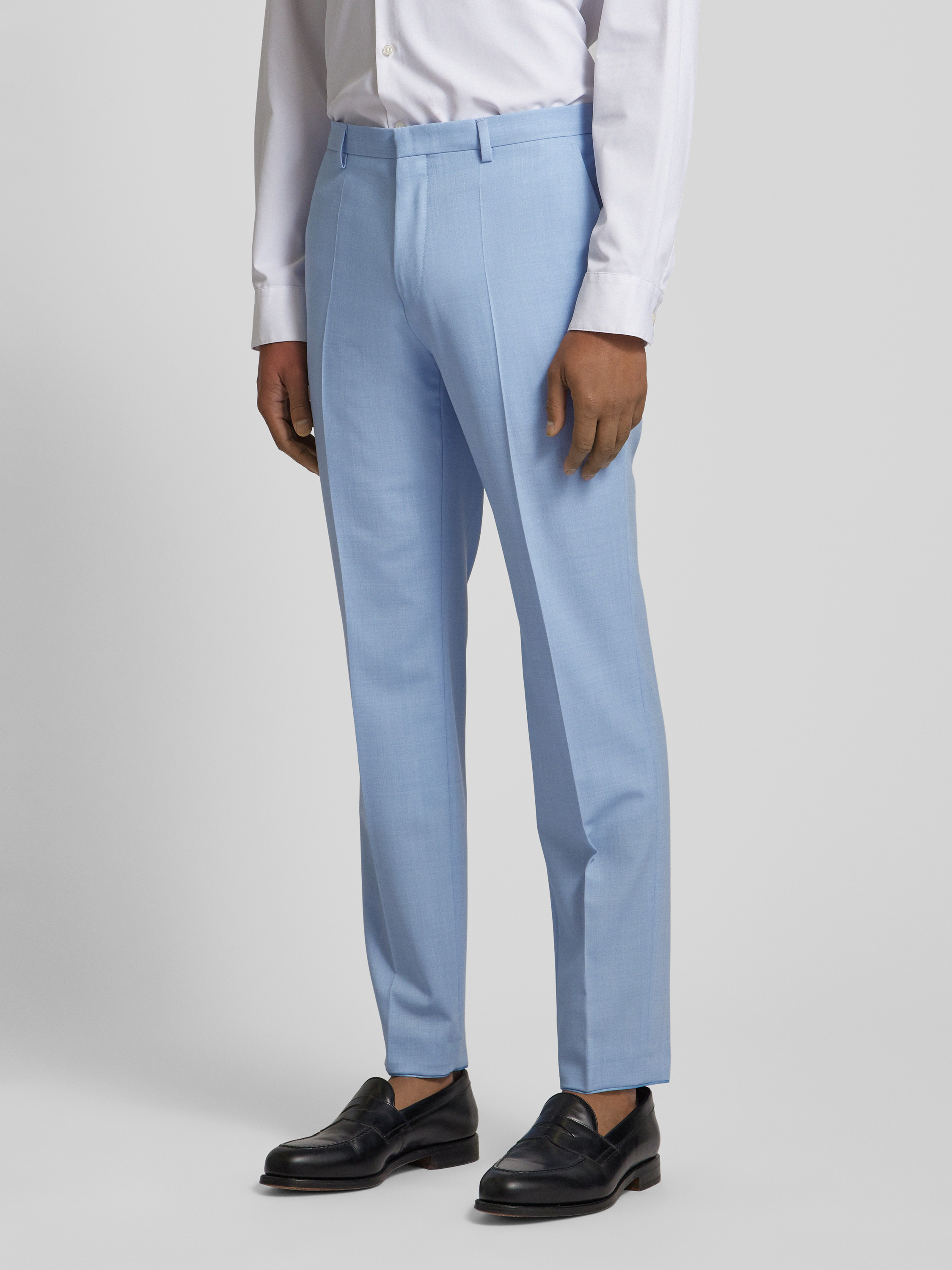 HUGORegular fit bandplooibroek met achterzakken, model 'Hesten' in lichtblauw