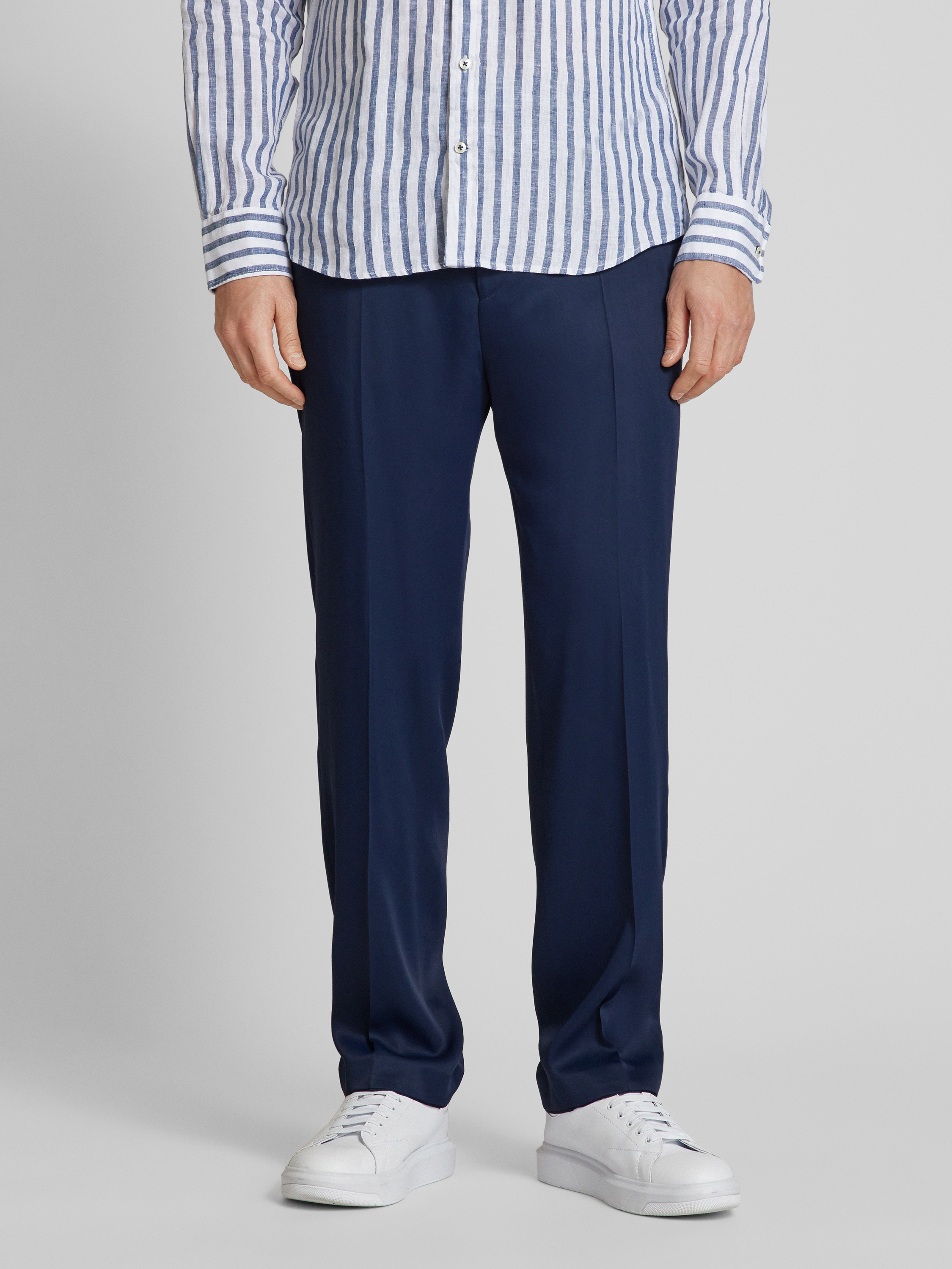 Regular fit bandplooibroek met viscose, model 'Teagen' in donkerblauw