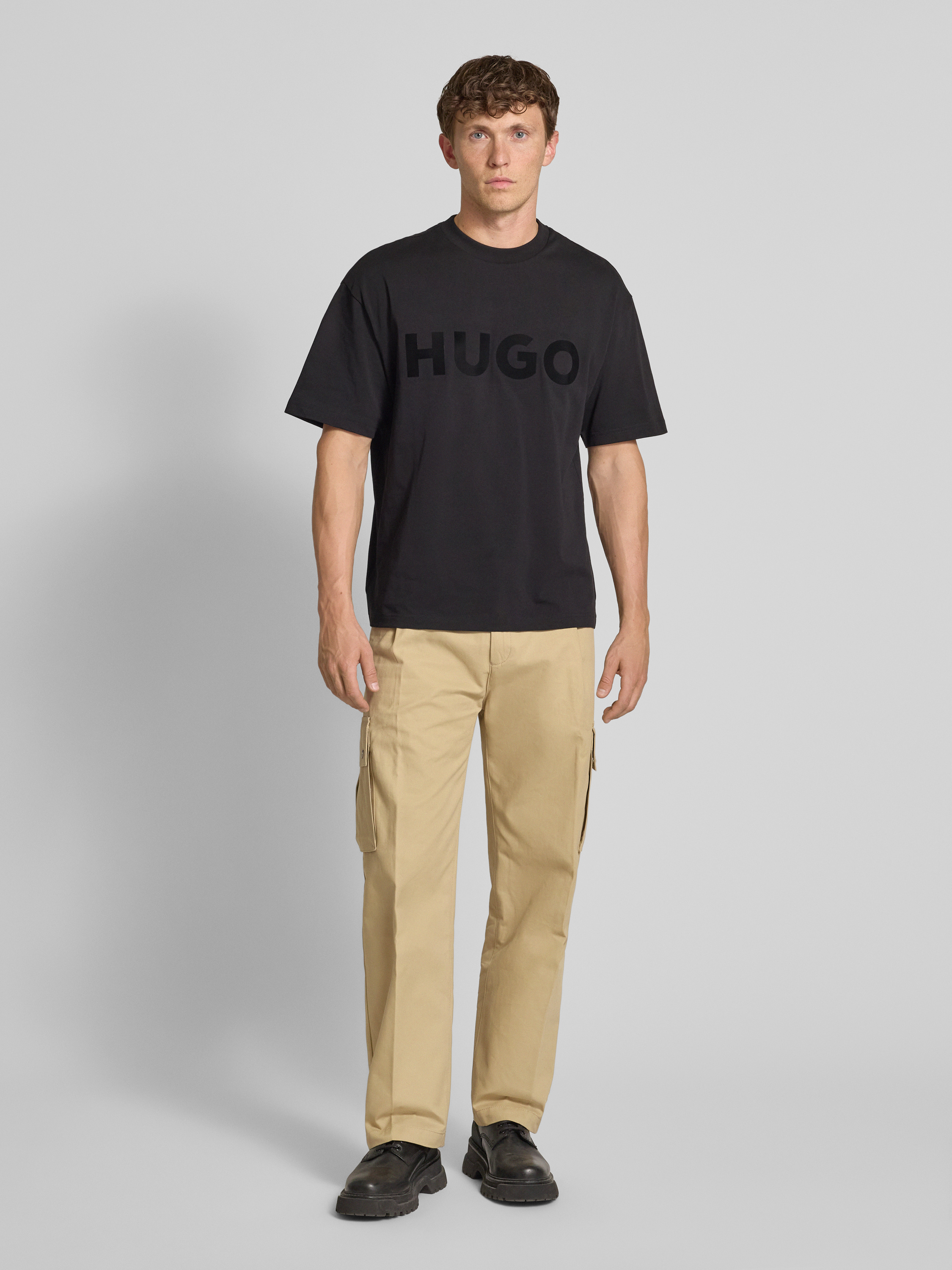 HUGORegular fit cargobroek met steekzakken, model 'Graysen' in beige