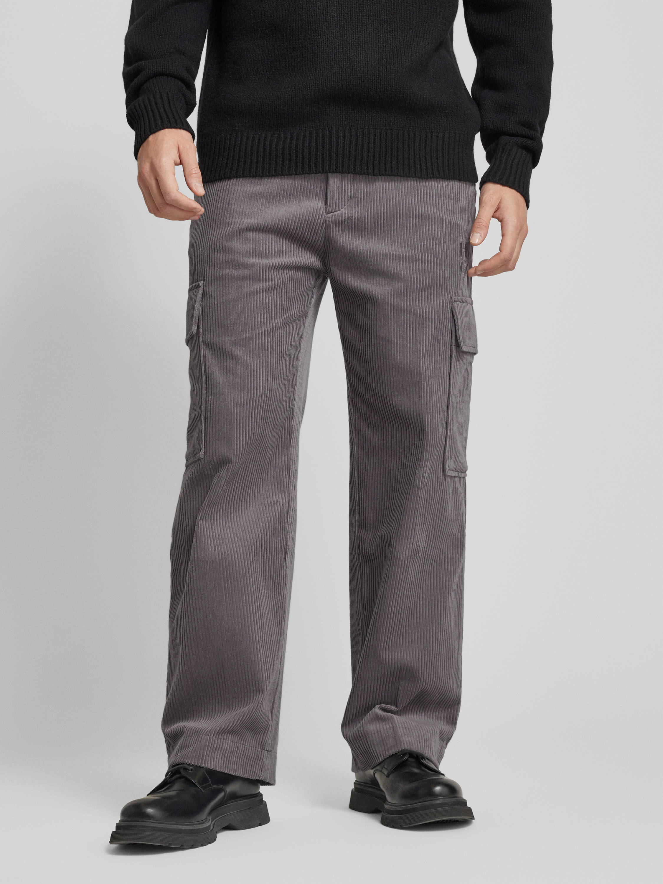 Regular fit corduroy broek met cargozakken, model 'Grady244' in middengrijs