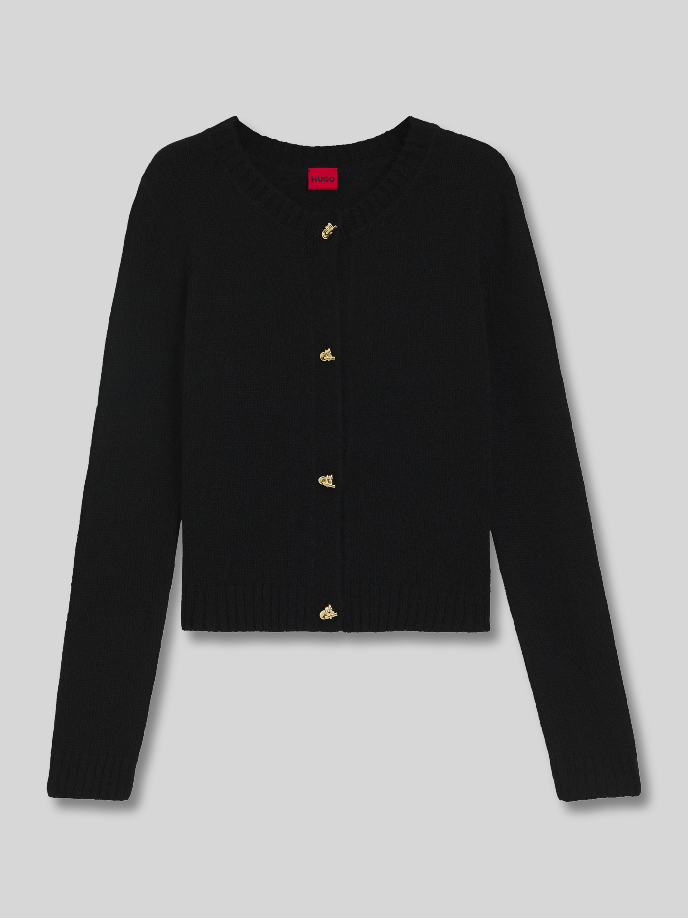 HUGORegular fit gebreid jack met alpacamix, model 'SIRA' in zwart