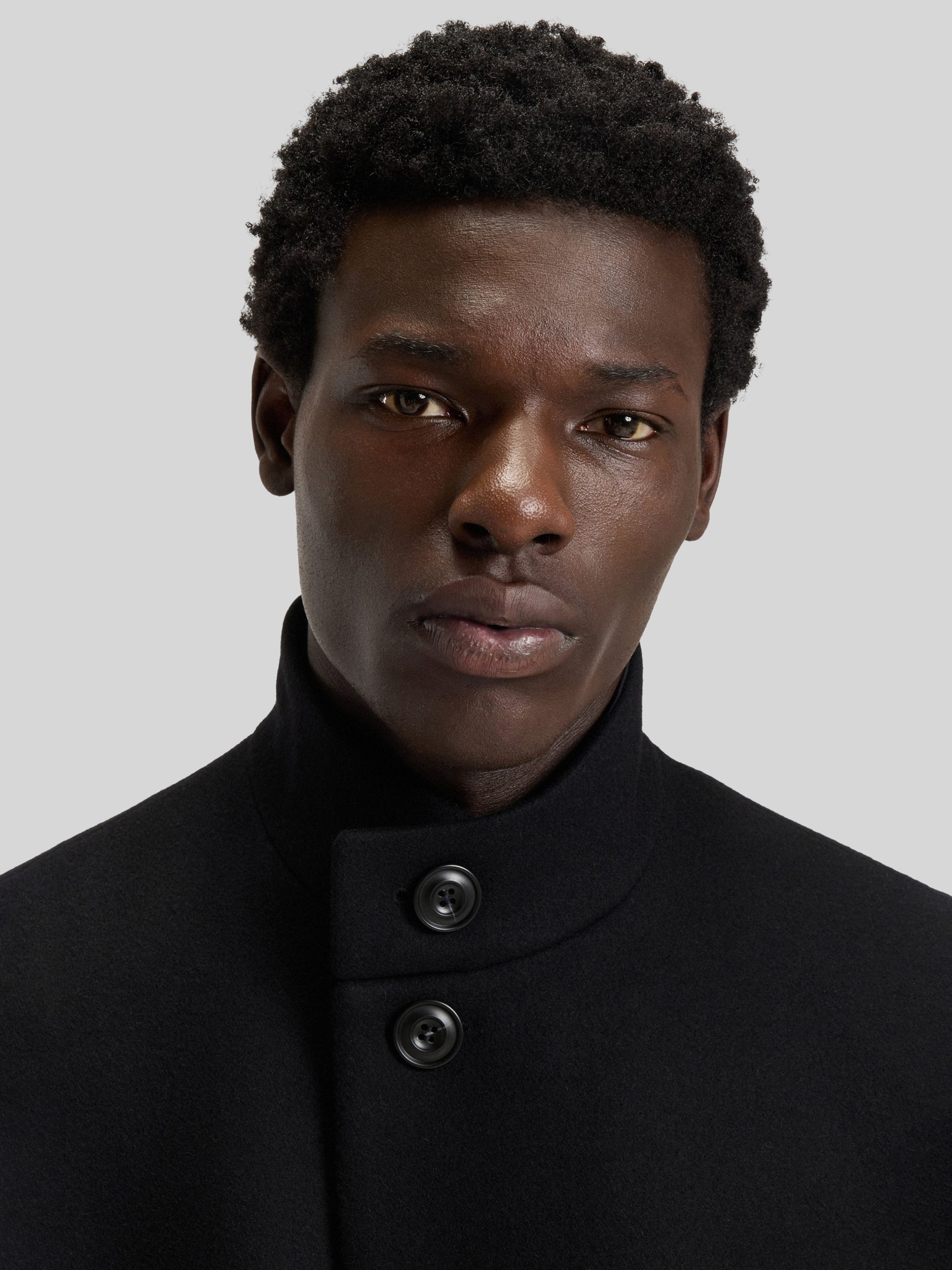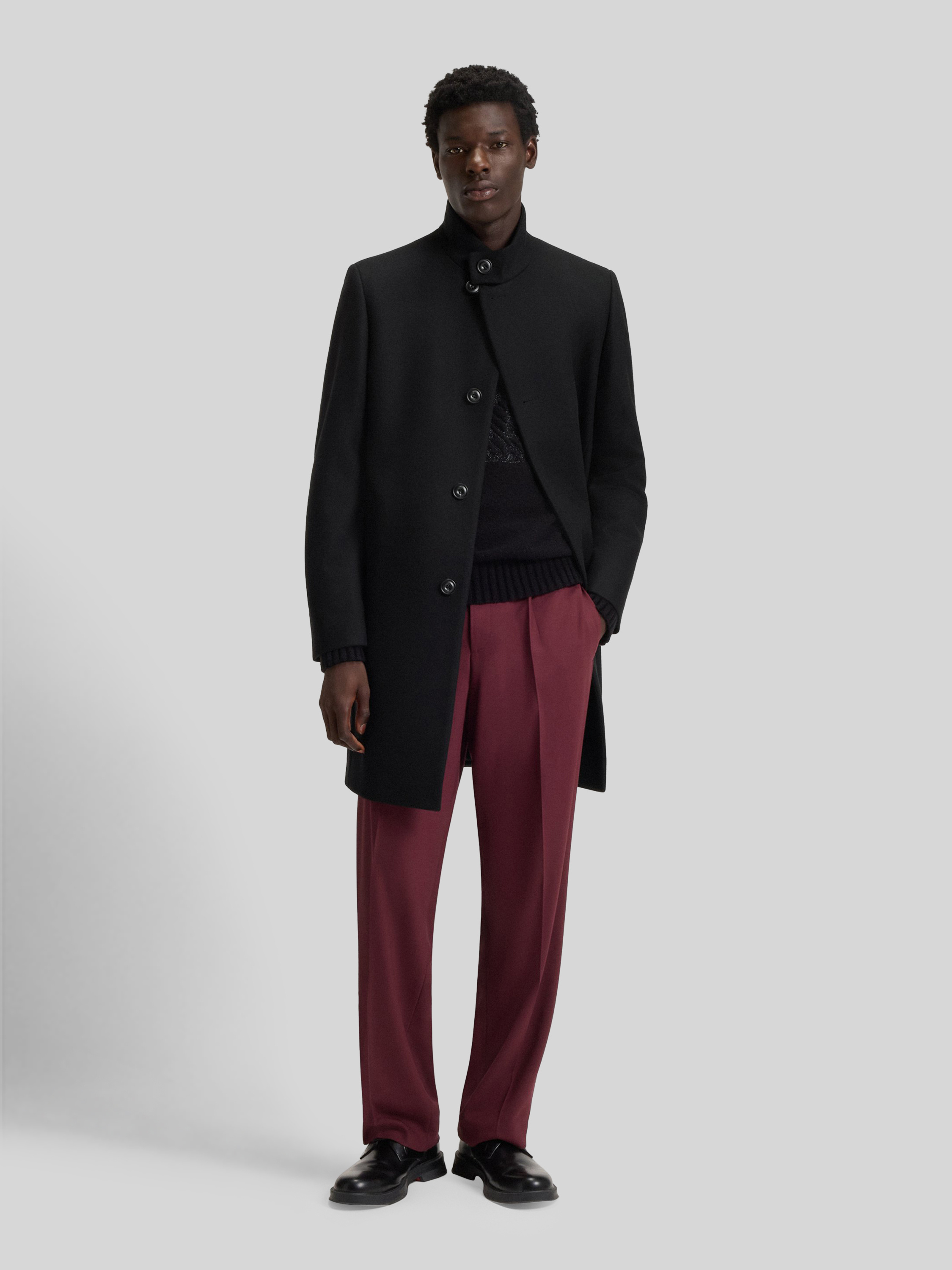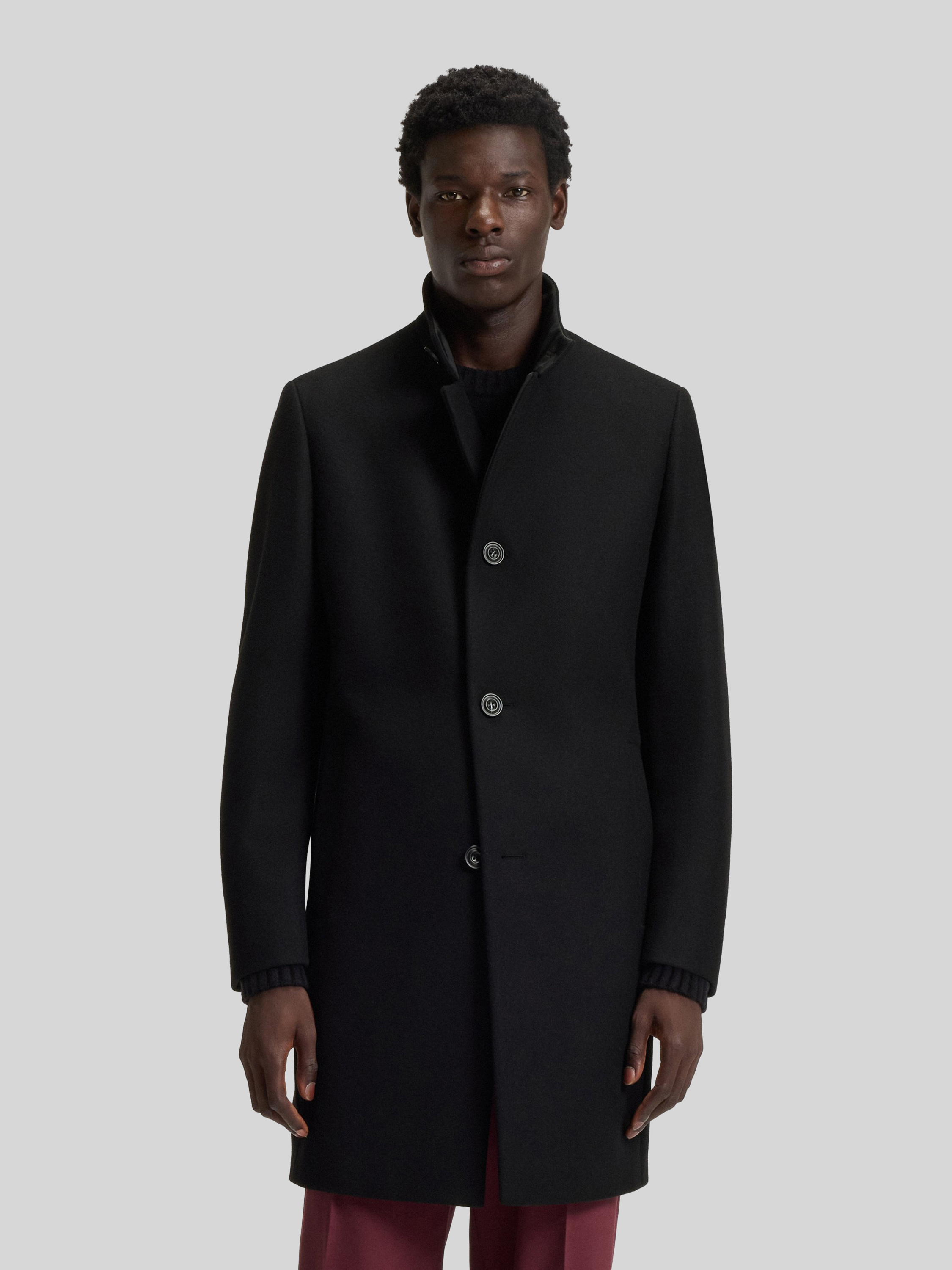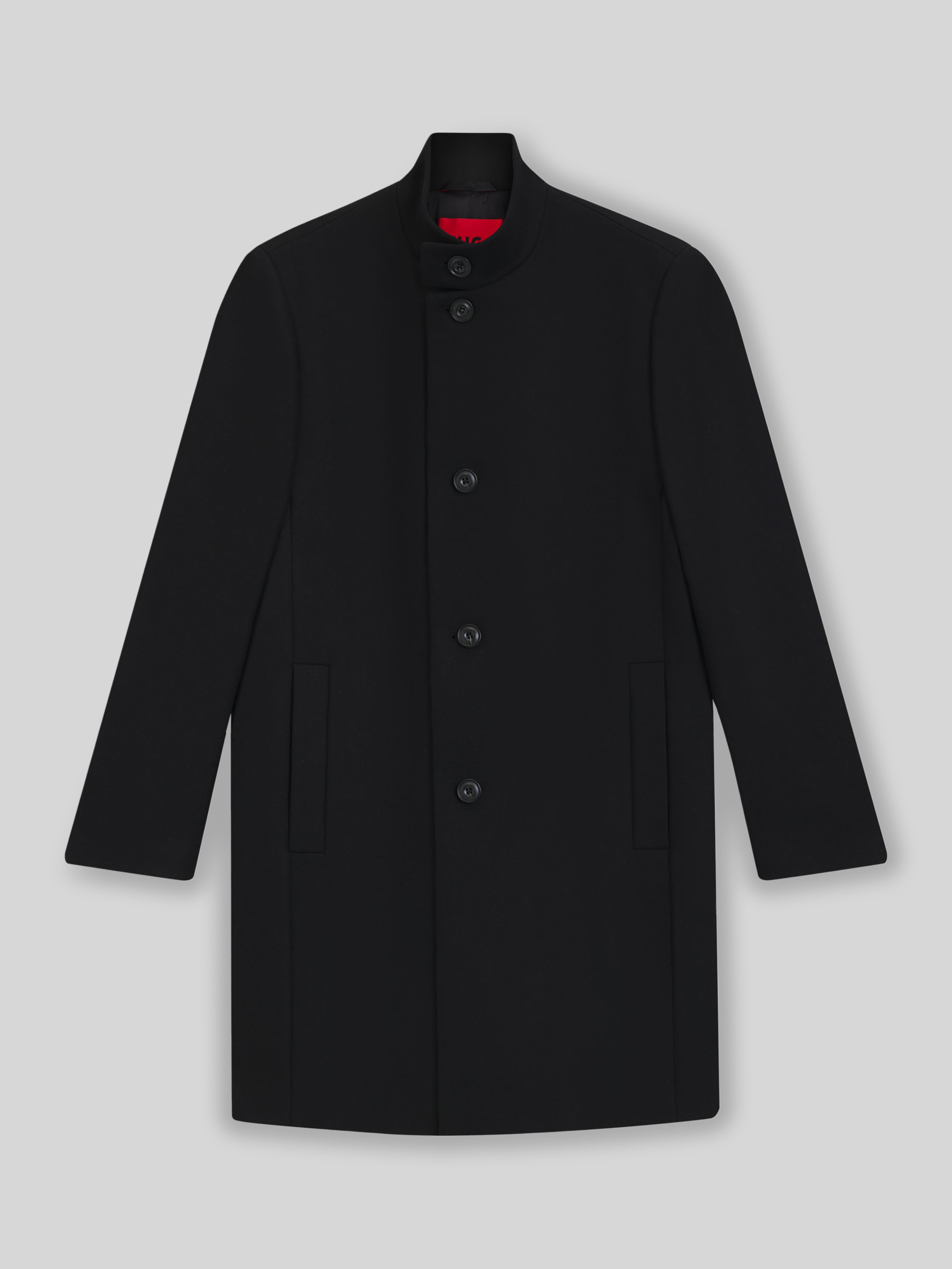 HUGORegular fit lange wollen jas met opstaande kraag, model 'MINTRAX2541' in zwart