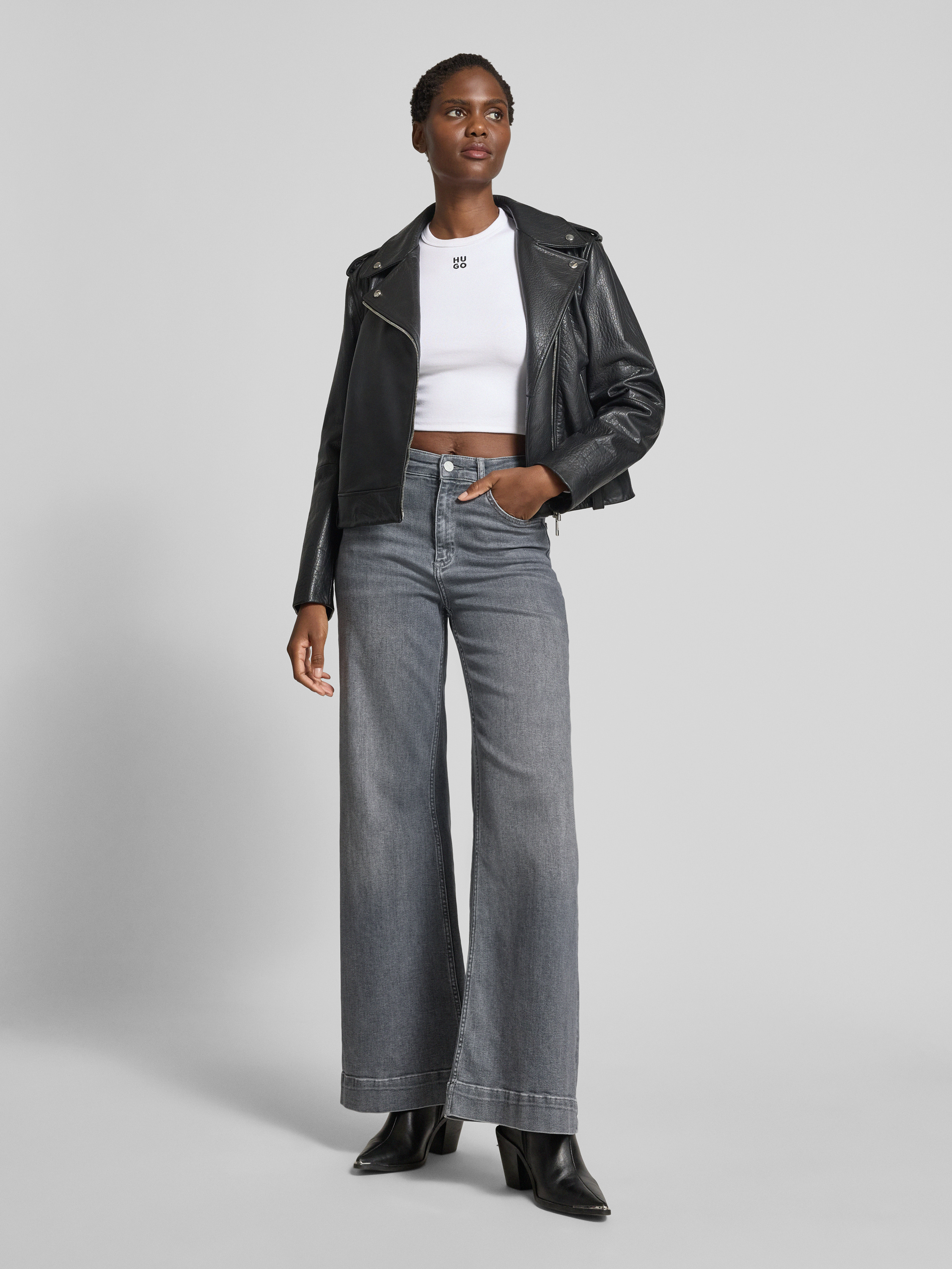 BOSS OrangeRegular fit leren jack van generfd runderleer