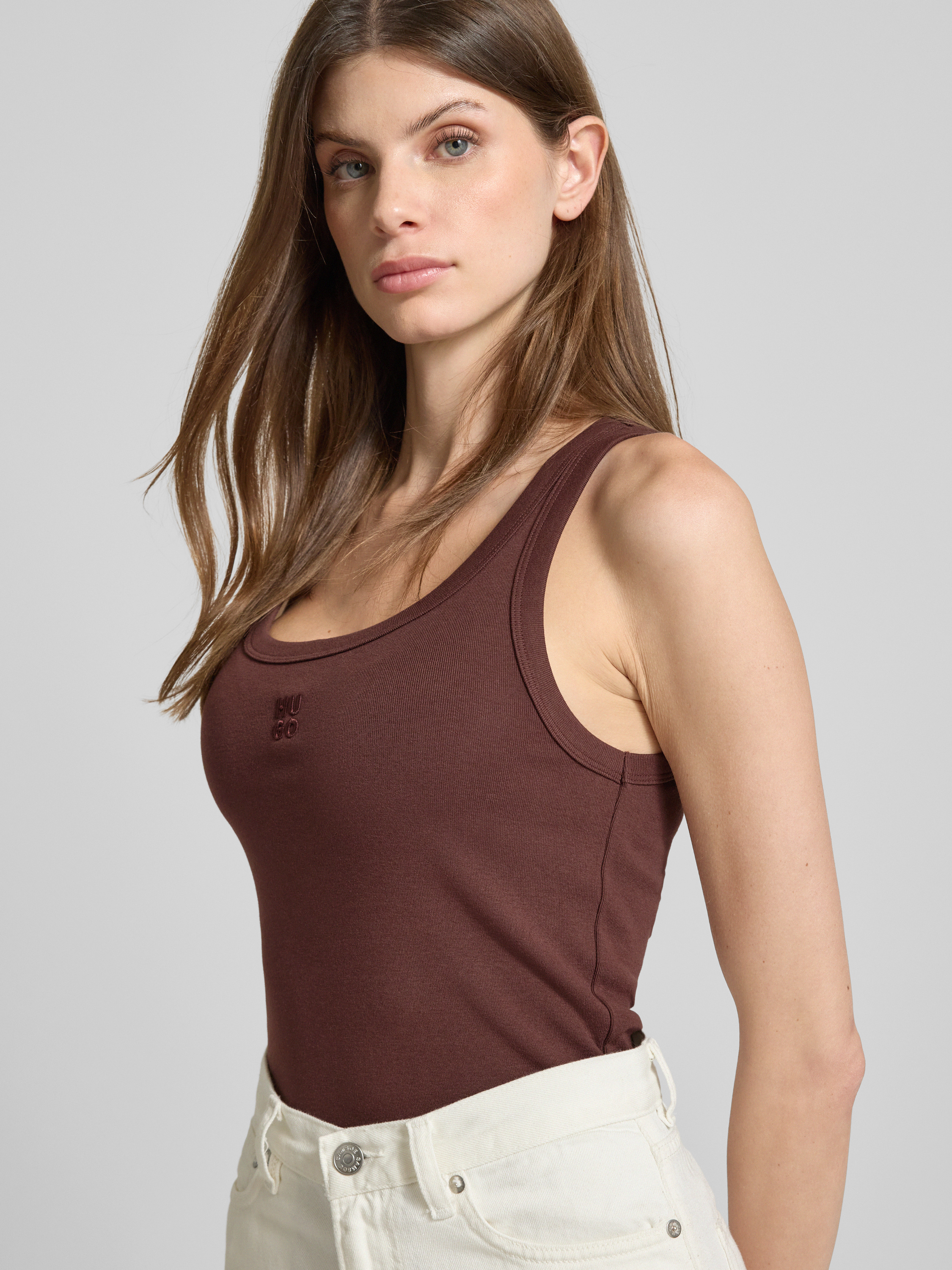 HUGORegular fit tanktop van katoenmix, model 'DATAMIA' in chocoladebruin