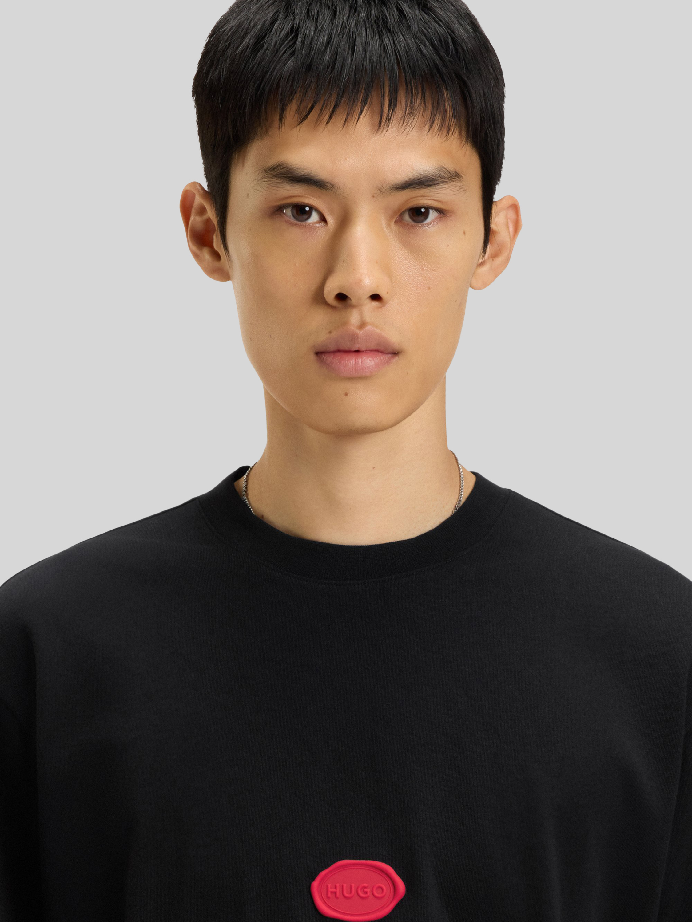 Relaxed fit T-shirt van katoenjersey, model 'DIVIS' in zwart