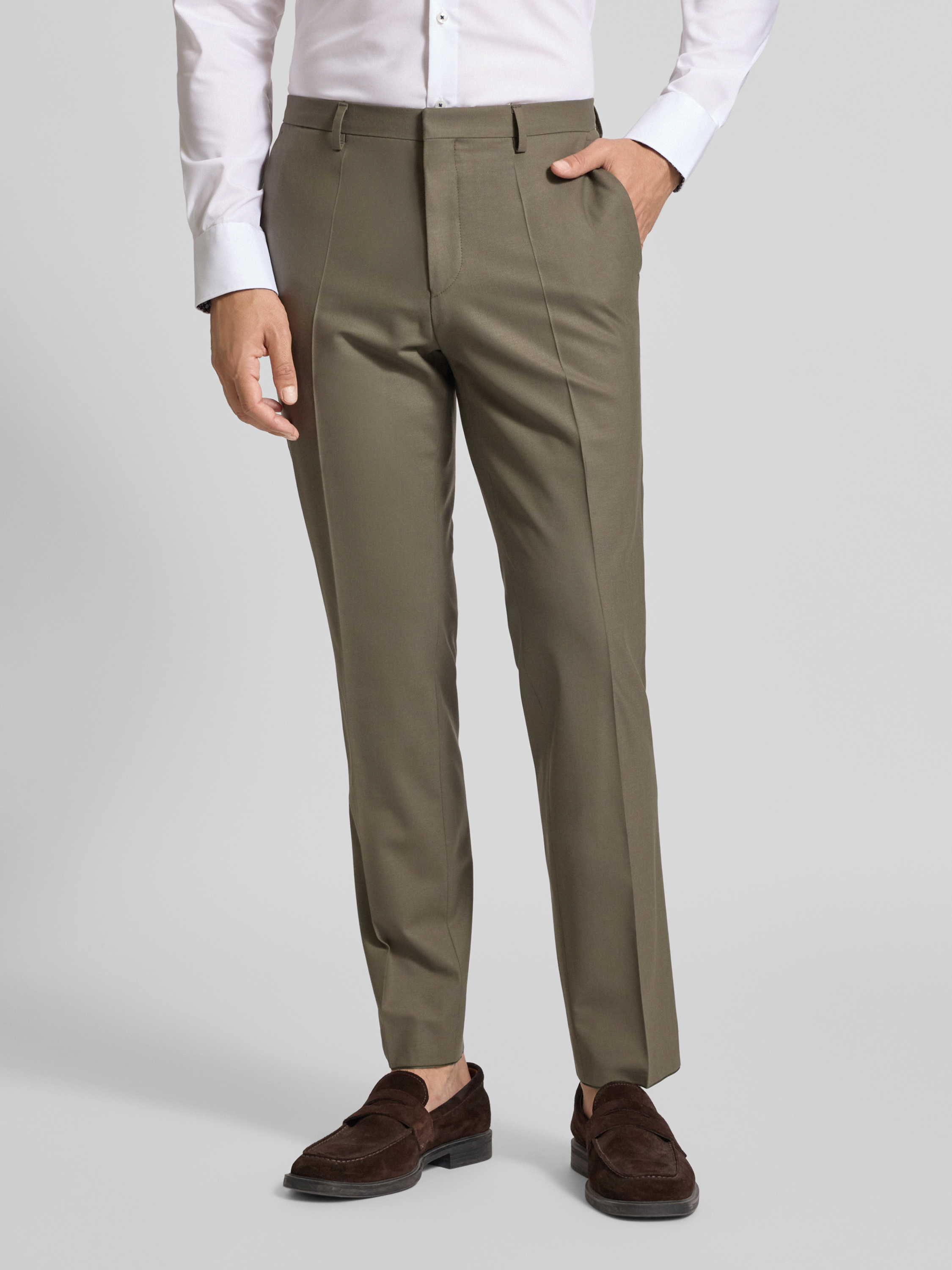 HUGOSkinny fit pantalon van wolmix, model 'HESTEN253X' in groen